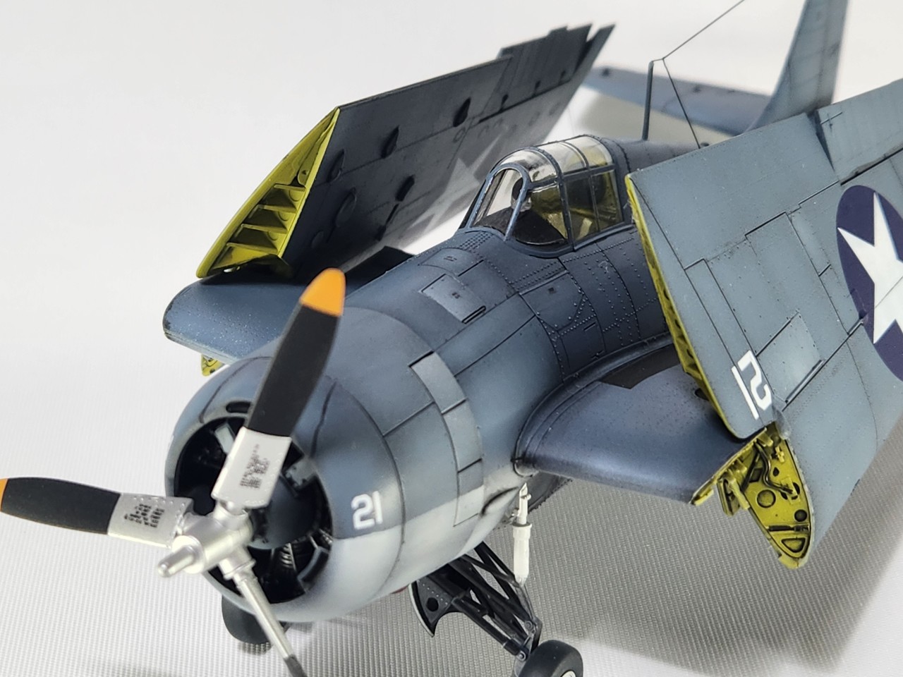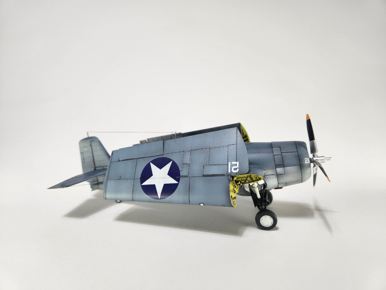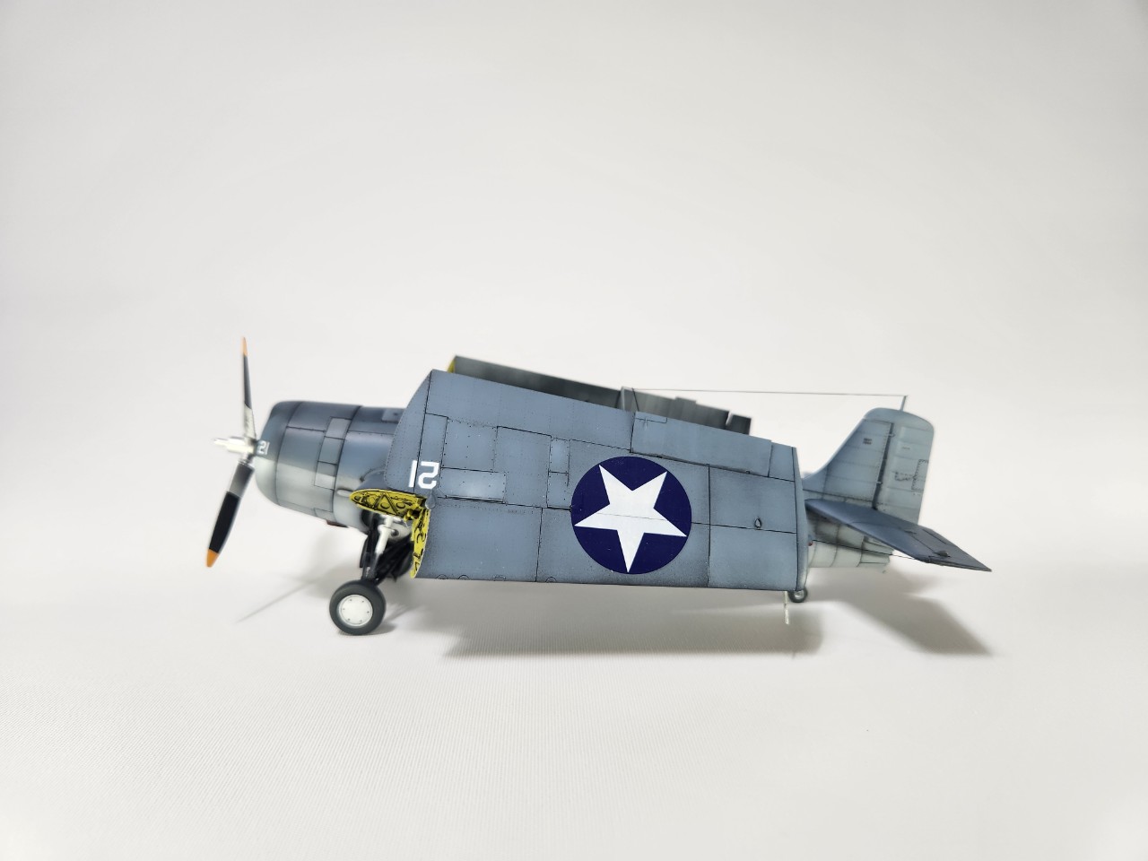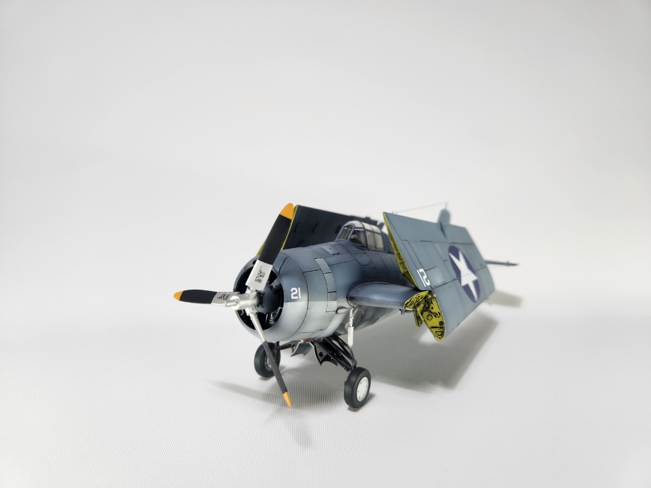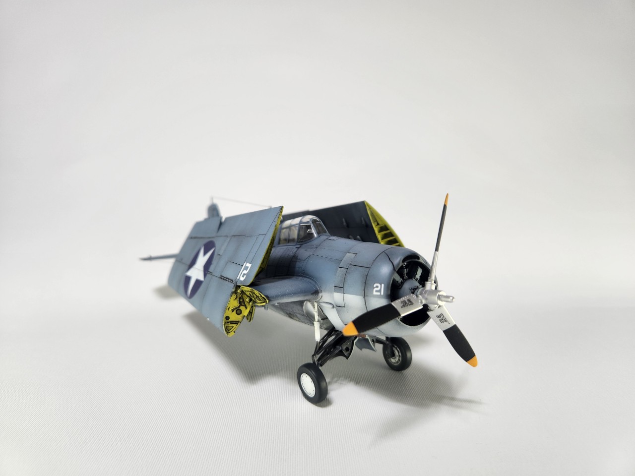 동체 만들고 날개를 별도로 만든 다음에 도색 완료 후 갖다 끼기만 해도 자세 바로 나옵니다.