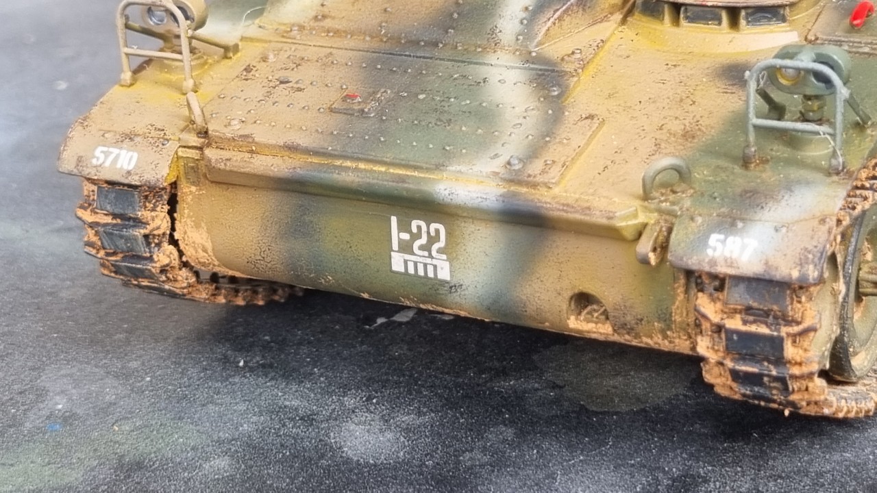 1-22 마킹은 실차에 있는 마킹은 아니고, 동사의 72스케일 T-34/85의 데칼입니다. 실 차량 중에서도 저 위치에 비슷한 마킹(사실 내용은 완전 딴판입니다. ㅎㅎ)을 붙인 차량이 있어 적용해보았는데, 꽤나 어울립니다.