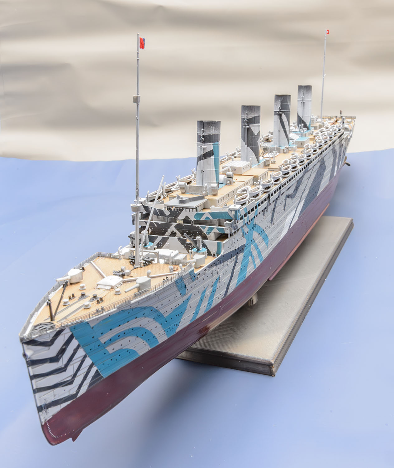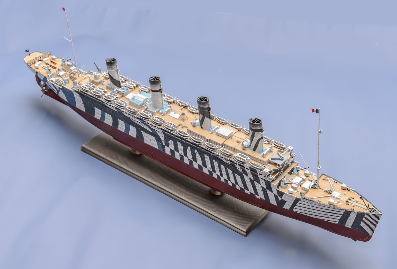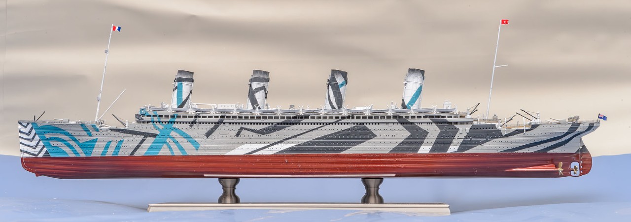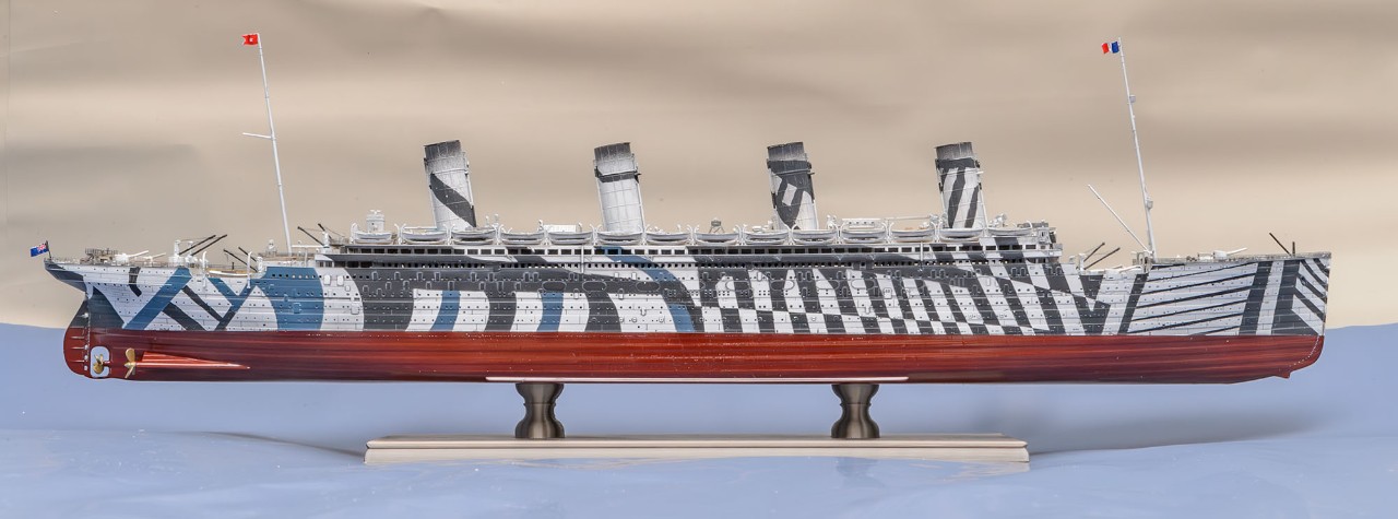 1차 세계대전이 격화되면서 RMS Olympic 도 영국 해군에 징발되어 무장수송함 HMT Olympic 으로서 병력 수송 임무를 맡았는데, 위장무늬인 다즐링 패턴은 두 종류가 있었습니다. 제가 만든 다즐링 패턴은 유보트에 충각 공격을 했던 시기의 모습입니다.