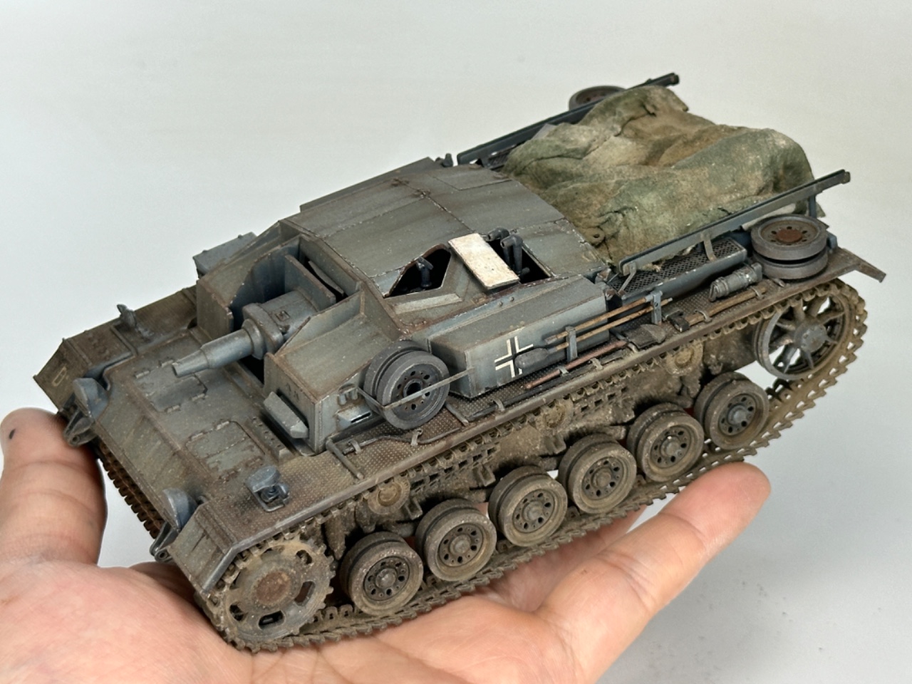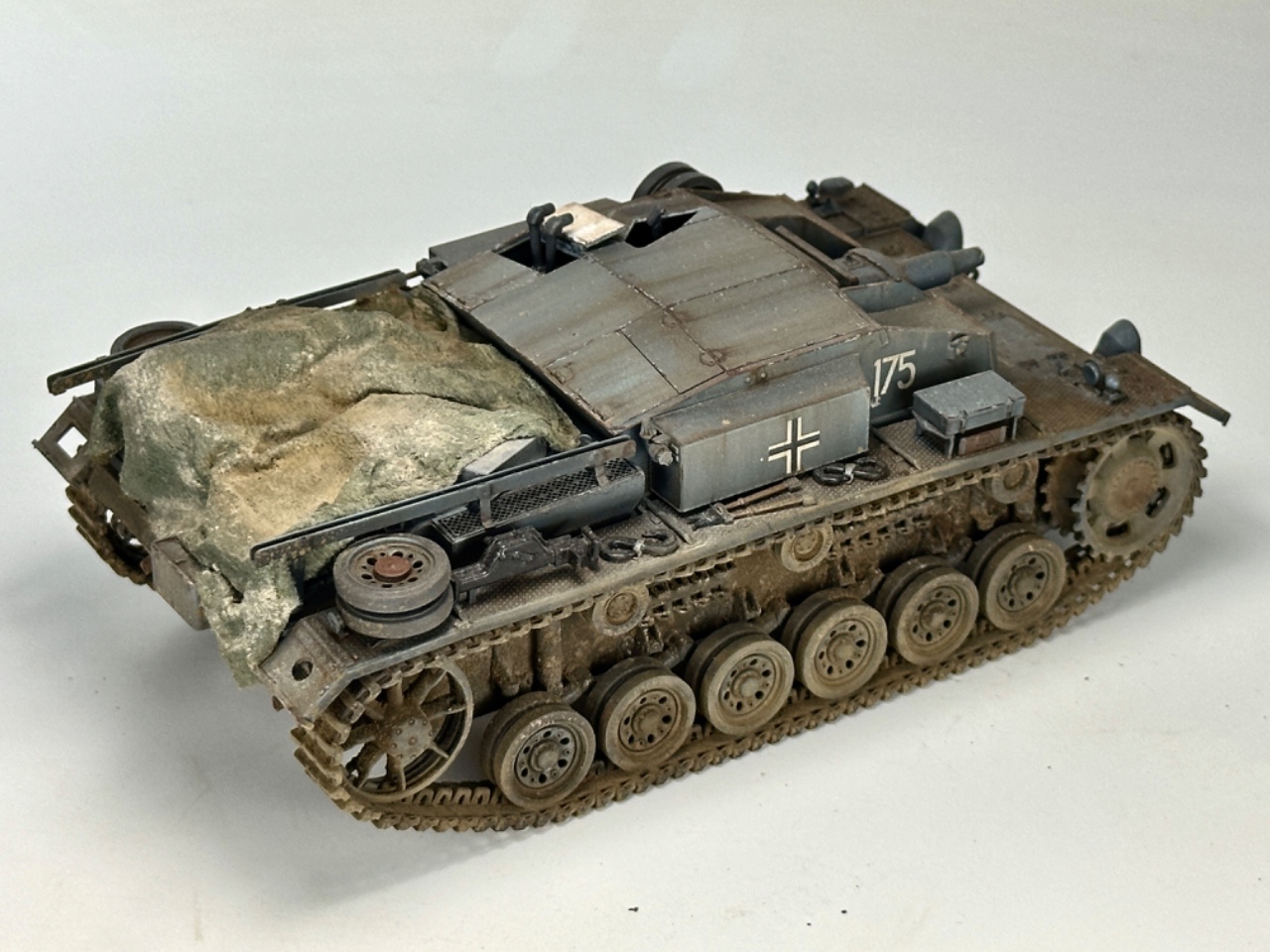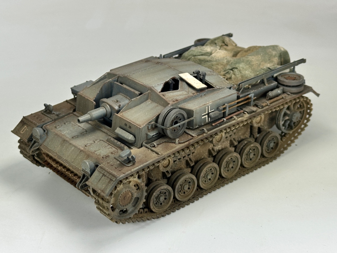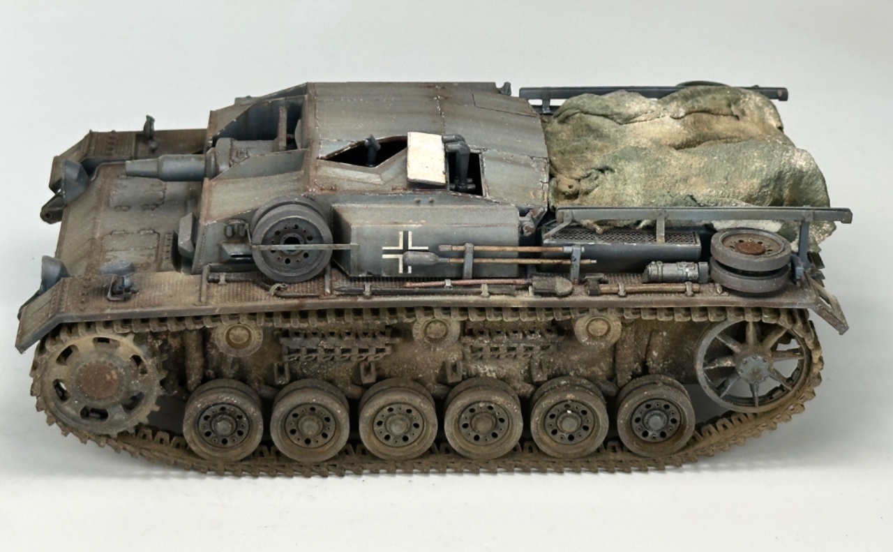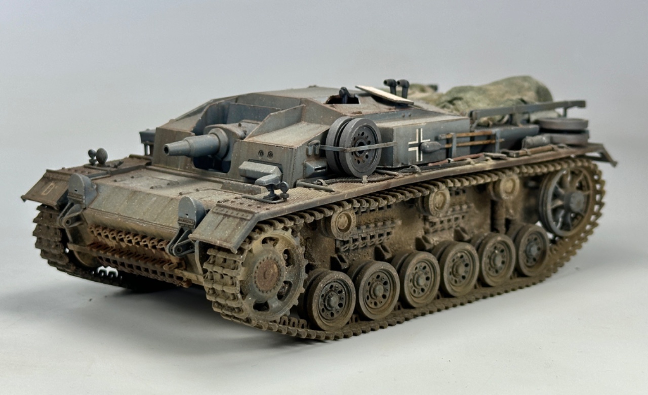 브롱코의 1/35 3돌격포 D입니다 일부 드래곤 파츠를 사용했고 후부 캔버스는 물티슈를 사용해 만들어주었습니다