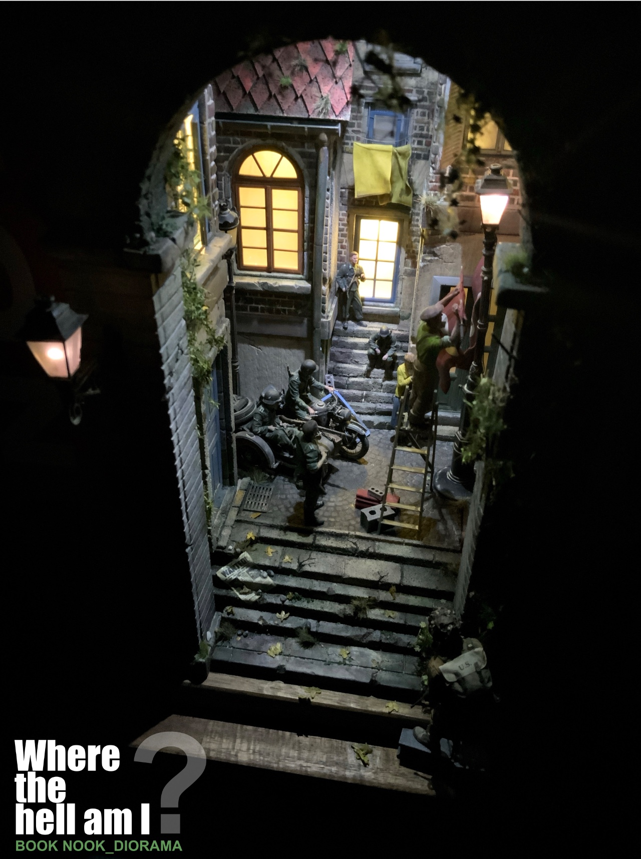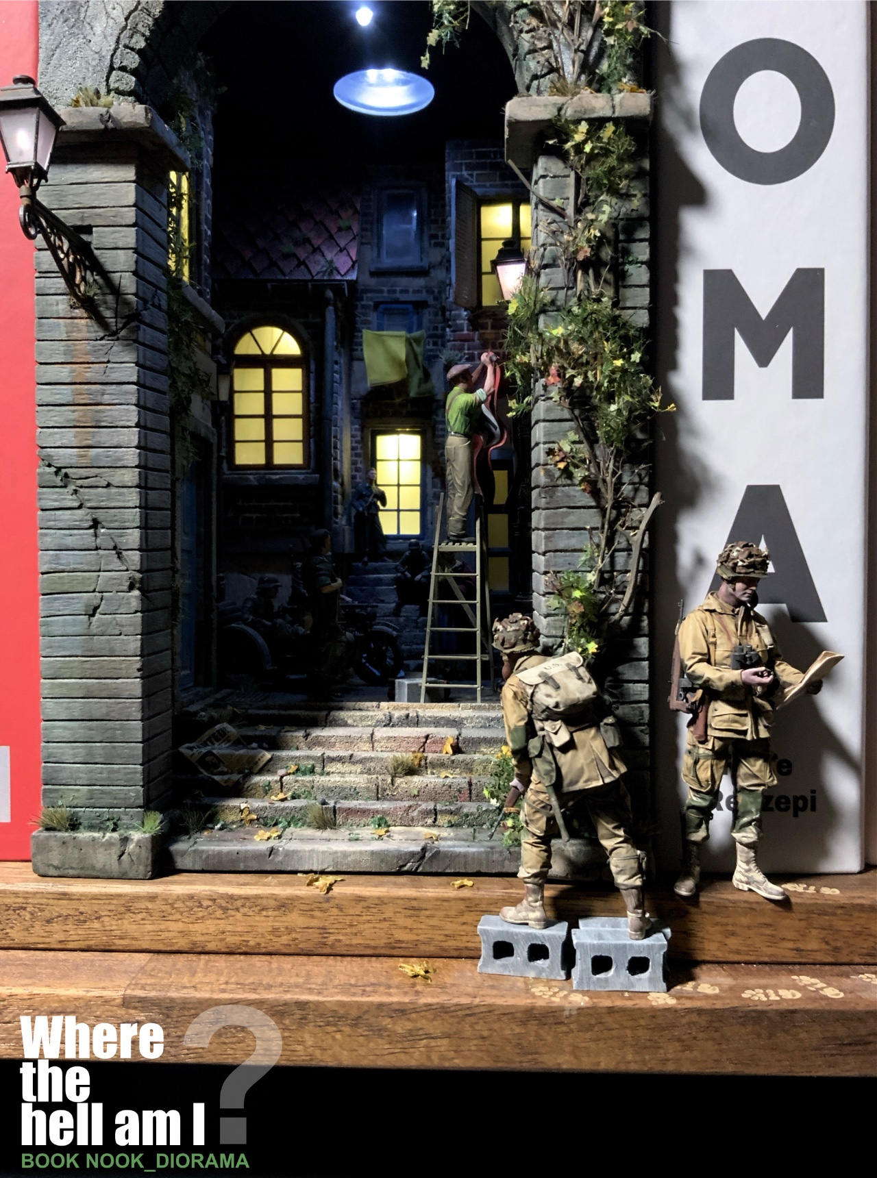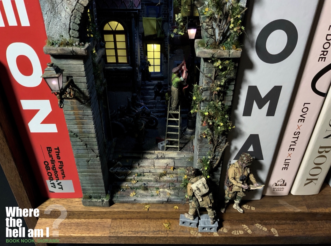1944년 6월6일 노르망디 어느 시골 마을 독일군 점령지역에 낙하한 101공수부대의 당황한 상황을 BOOK NOOK 형식의 디오라마로 제작하였습니다