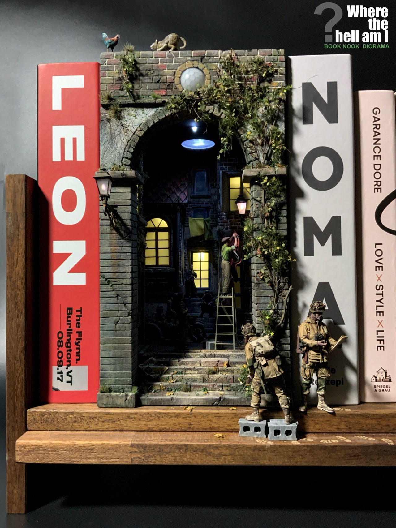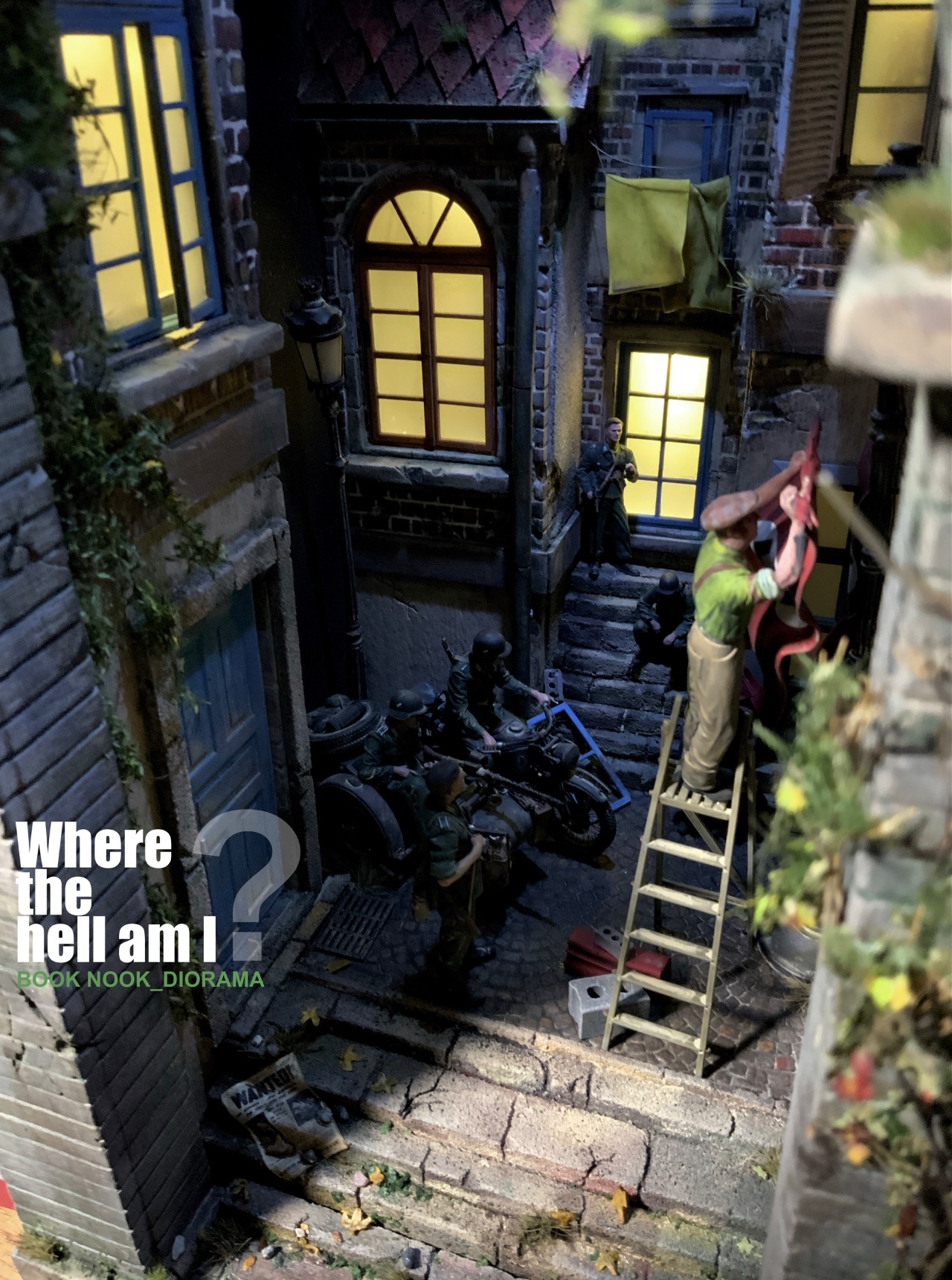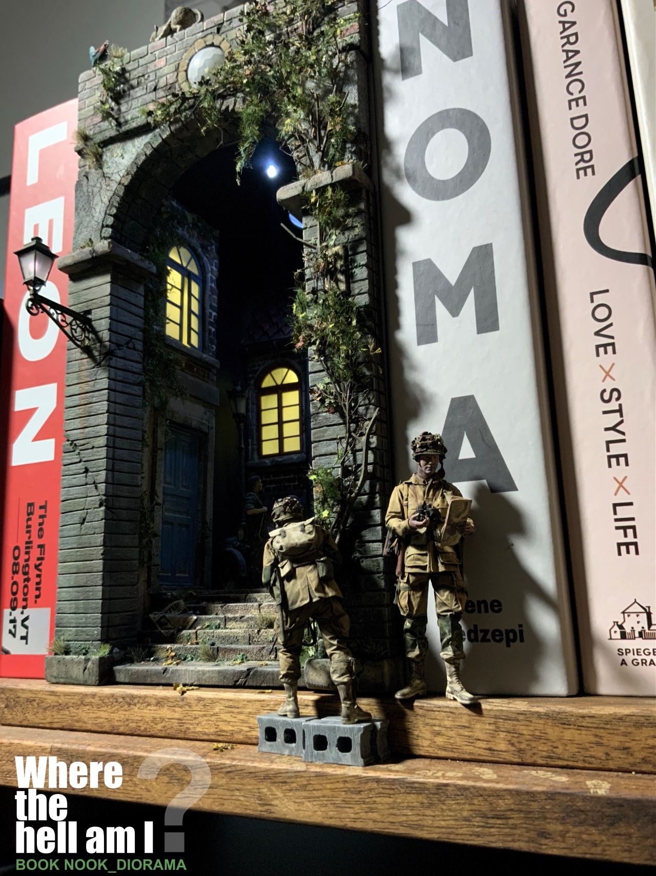 1944년 6월6일 노르망디 어느 시골 마을 독일군 점령지역에 낙하한 101공수부대의 당황한 상황을 BOOK NOOK 형식의 디오라마로 제작하였습니다