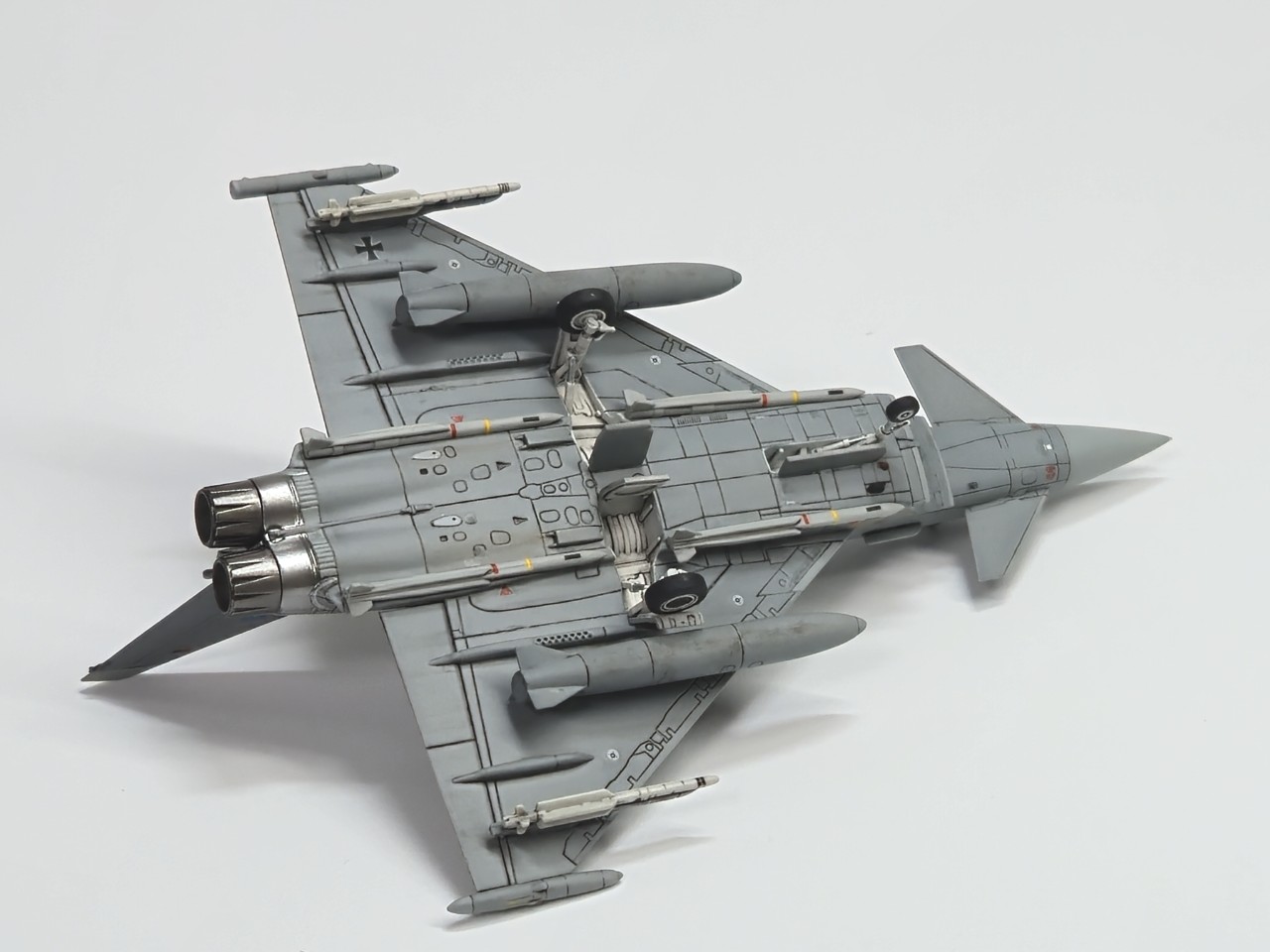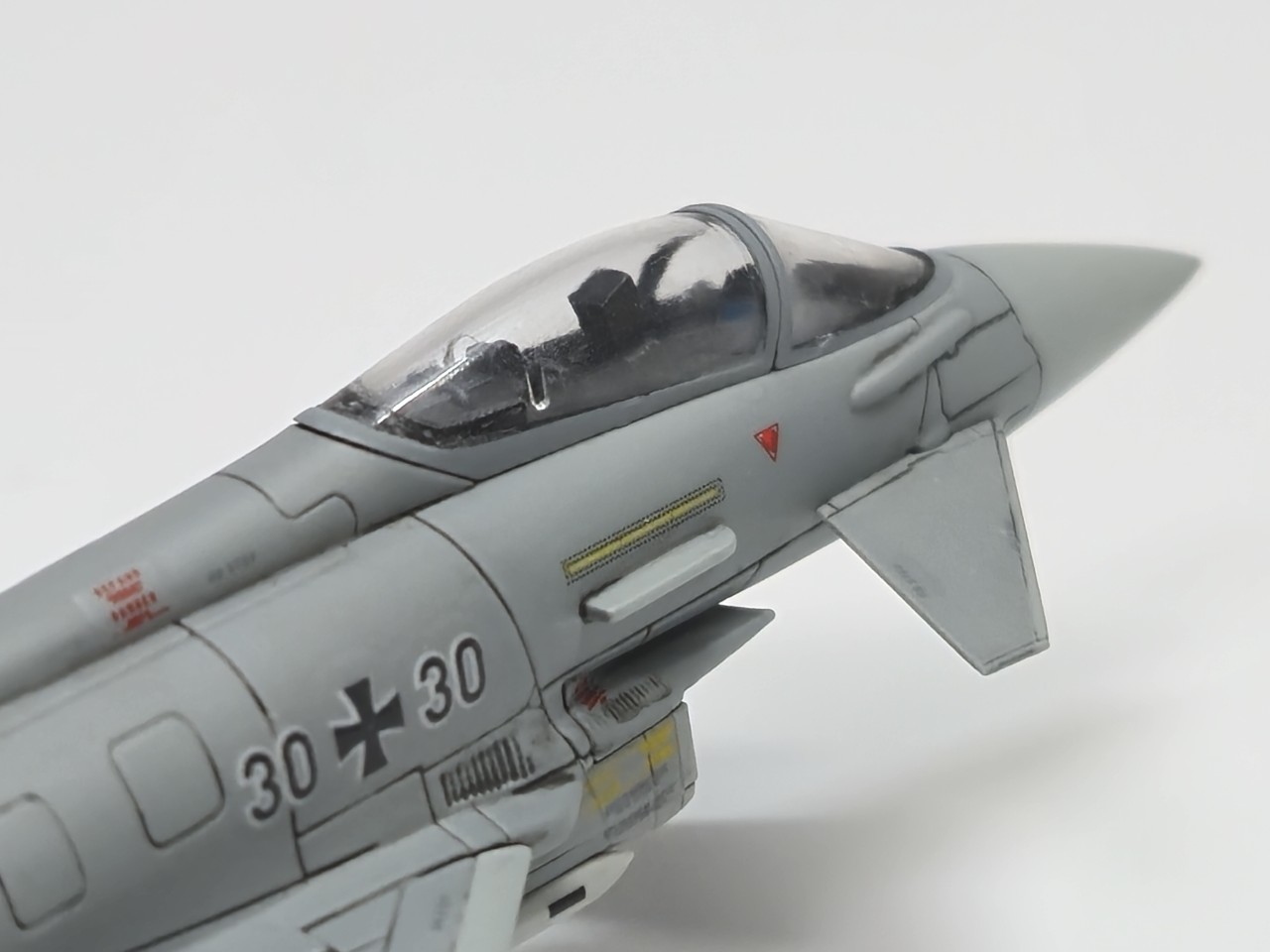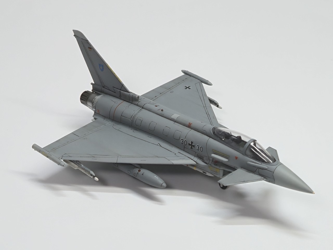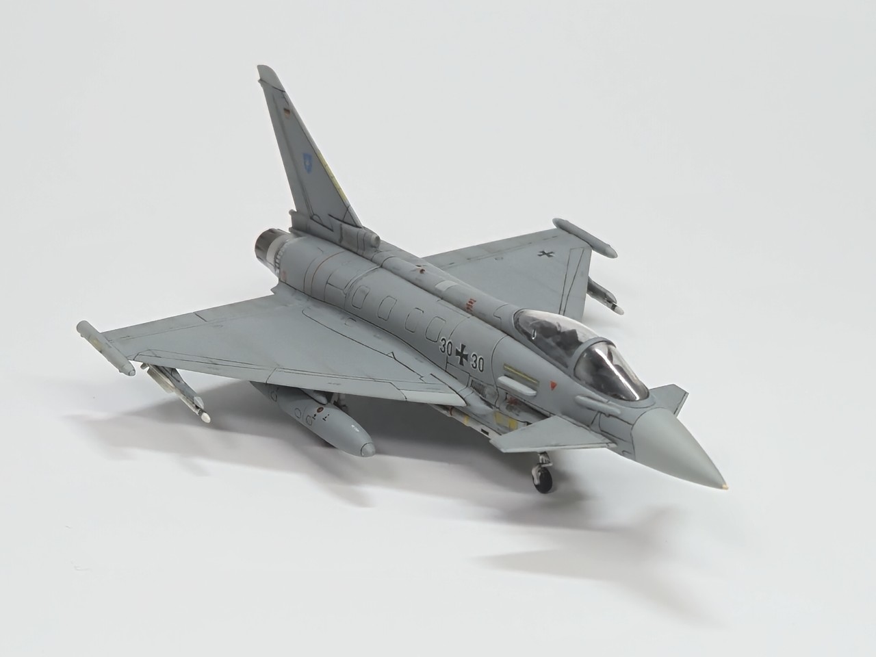 Revell의 1/144 스케일 Eurofighter 단좌형 입니다. 작업 시 파트들이 너무 작아 마스킹하고 데칼 붙이는데 꽤 애를 먹었네요. 그래도 작은스케일임에도 디테일한 데칼이 꽤 많고 사출 디테일도 좋아서 만족합니다. 감사합니다!