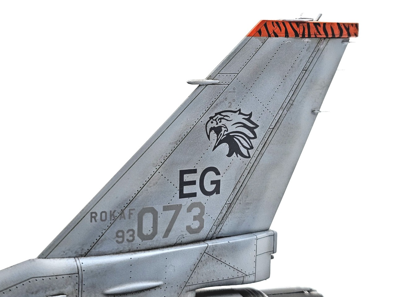 수직미익의 호랑이 무늬 데칼 바탕색이 노란색으로 나와있는데 사진과 비교해 보니 노란색보단 주황색에 가까워 도색으로 표현을 했습니다.