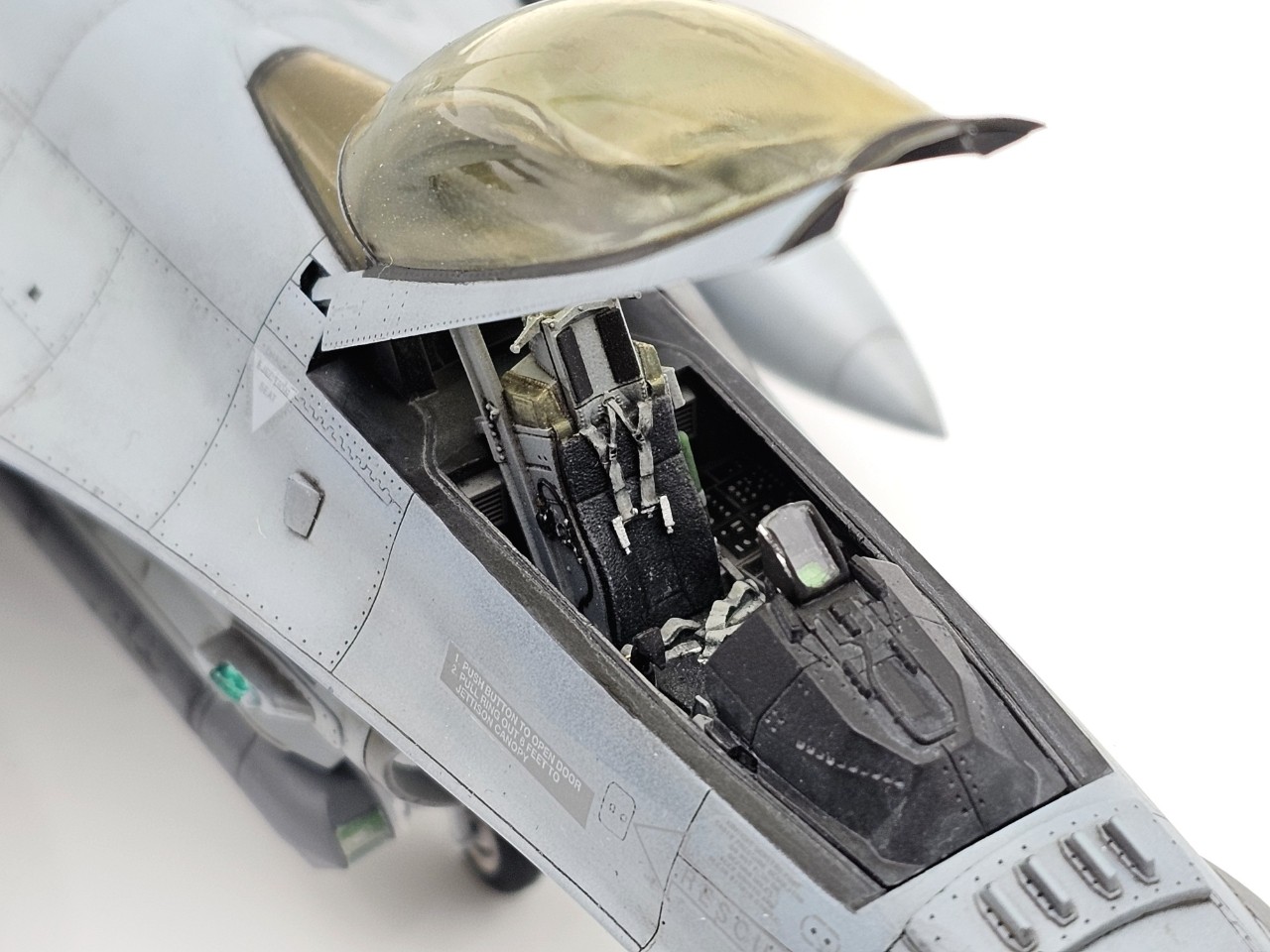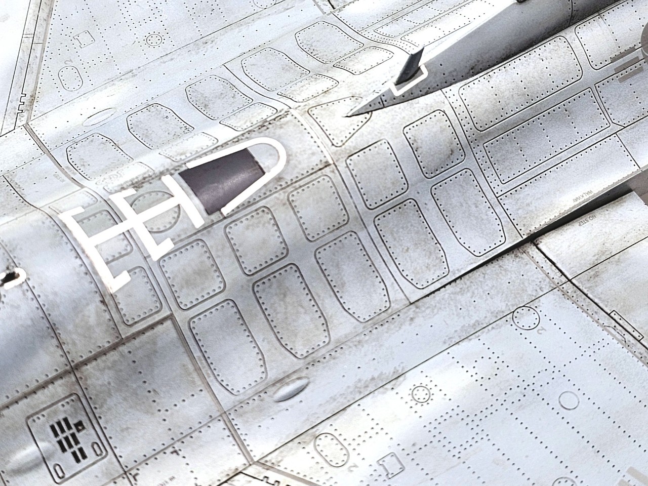 동체 상부에 패널라인 일부 수정과 키네틱 F-16에 공통적으로 보이는 정전기 방지핀은 형상이 잘못되어 밀어내고 별매를 사용하여 다시 만들어 주었습니다.