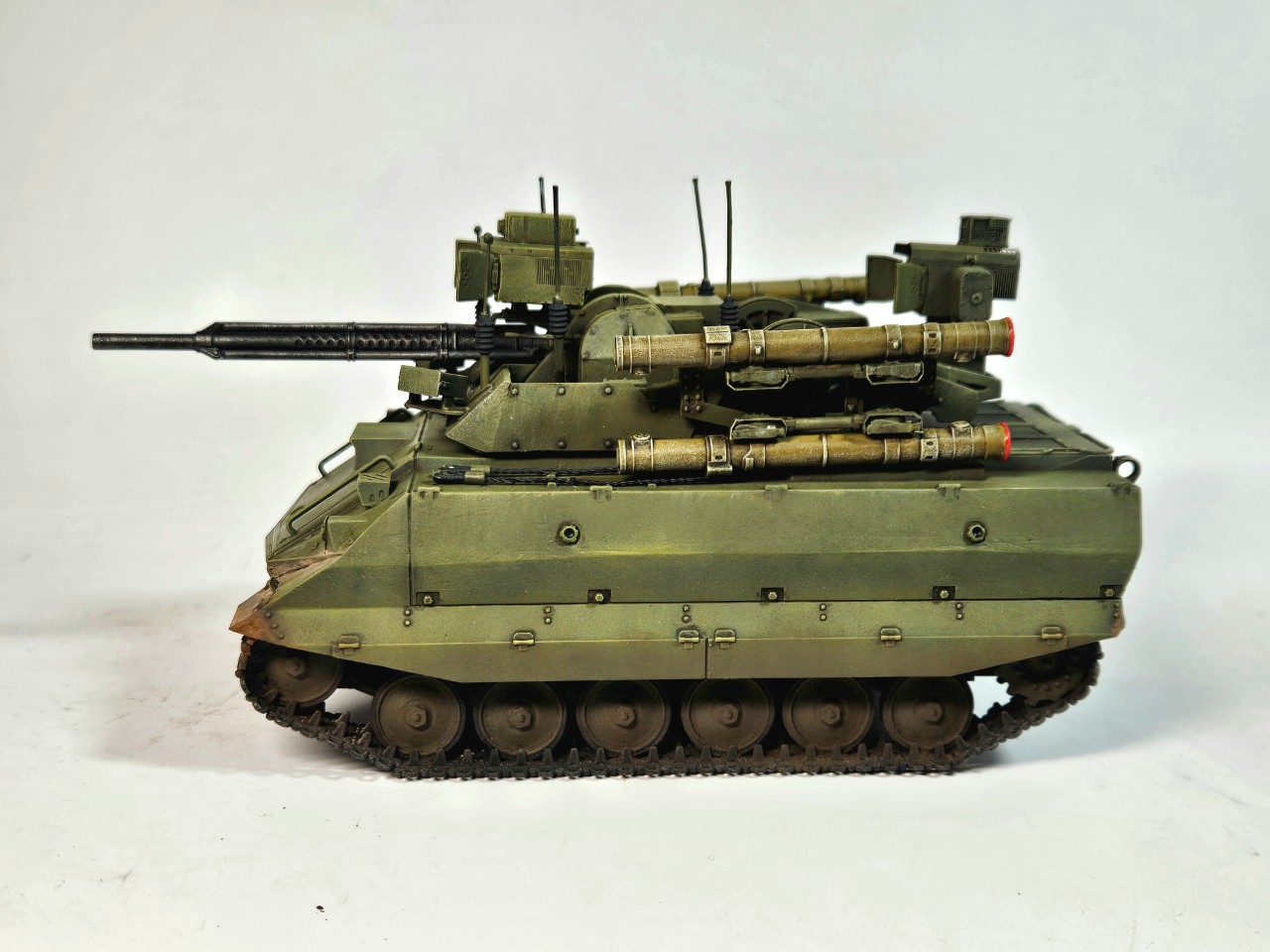 러시아 그린 계열의 단색을 선택했고 각이 많다보니 깔끔한 워싱에 드라이브라시를 좀 더 강하게 하는 걸로 접근해 차량의 특징을 잡아내보고자 했습니다.
