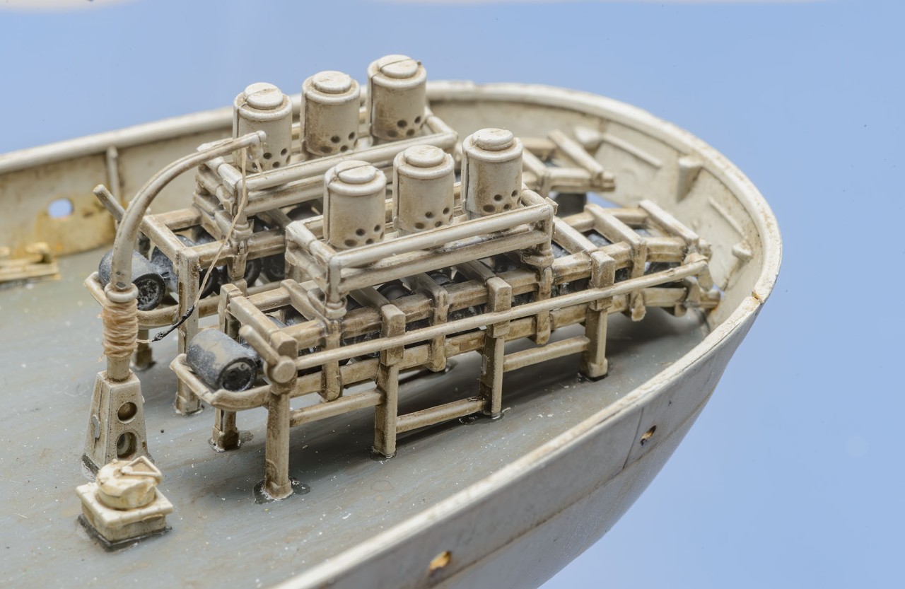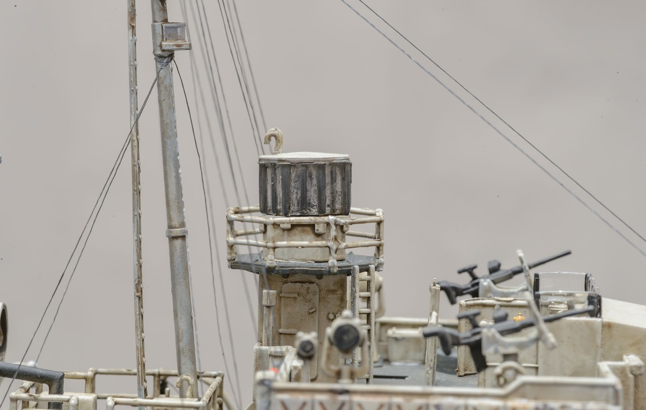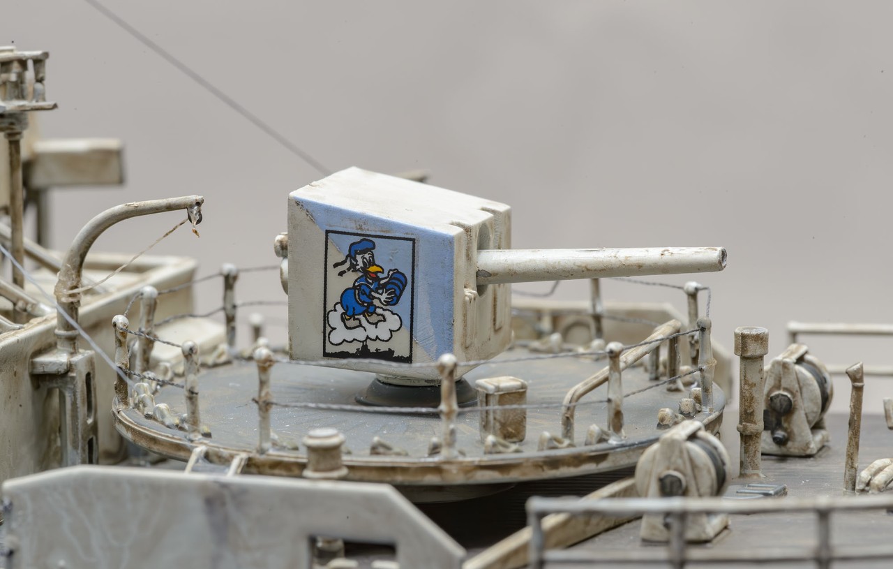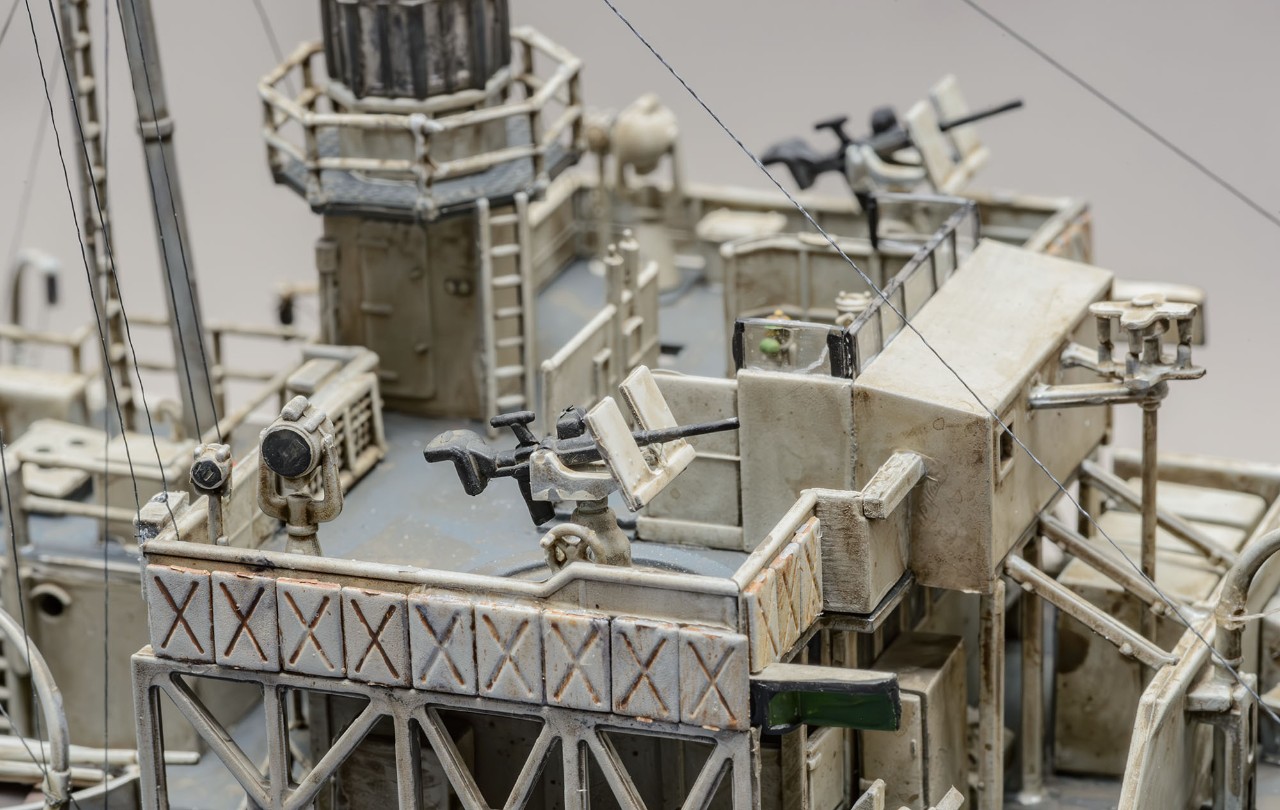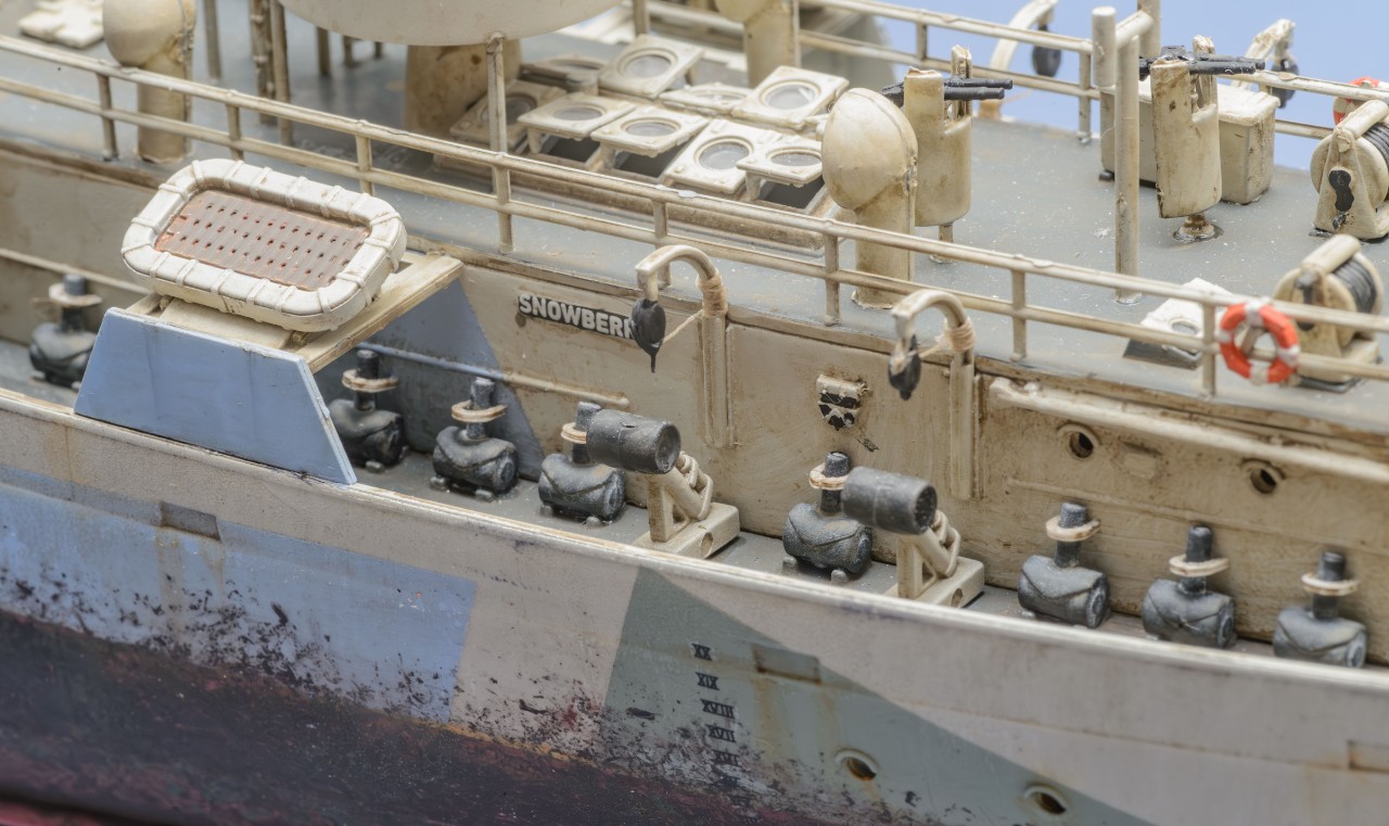 빅스케일인 1/144 이라서 1/350 키트+포토에칭보다 디테일이 생생하게 살아있습니다. 부품 하나하나 도색하면서 이건 어디에 쓰는 용도인지 확연히 이해할 수 있어서 배의 구조 이해에서 오는 즐거움이 상당합니다. 또한, 모든 부품이 포토에칭이 아닌 큼직하게 입체감있는 플라스틱 부품이라서 편하게 작업했습니다. 배의 길이도 팔꿈치까지 오는 크기라 전시가 부담스럽지 않은 적당한 크기입니다. 현대 군함 모형 입문을 원하시는 분은 저렴하지만 만들기 어려운 1/700 보다 AFV에 가까운 이 제품을 추천하고 싶습니다. 앙숙 관계였던 U보트의 1/144 모형과의 디오라마에도 잘 어울립니다.