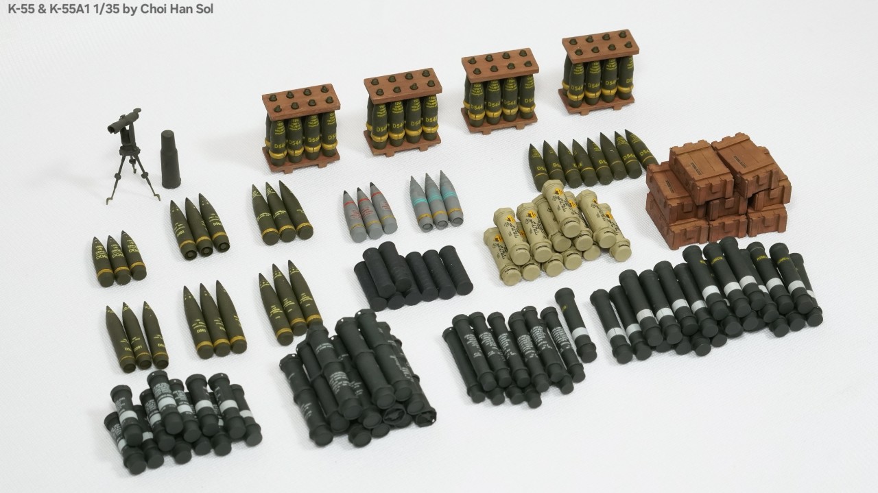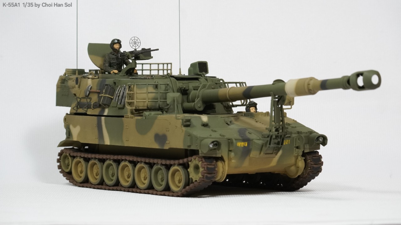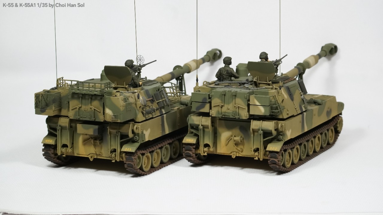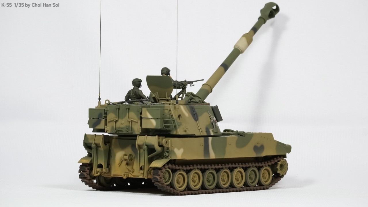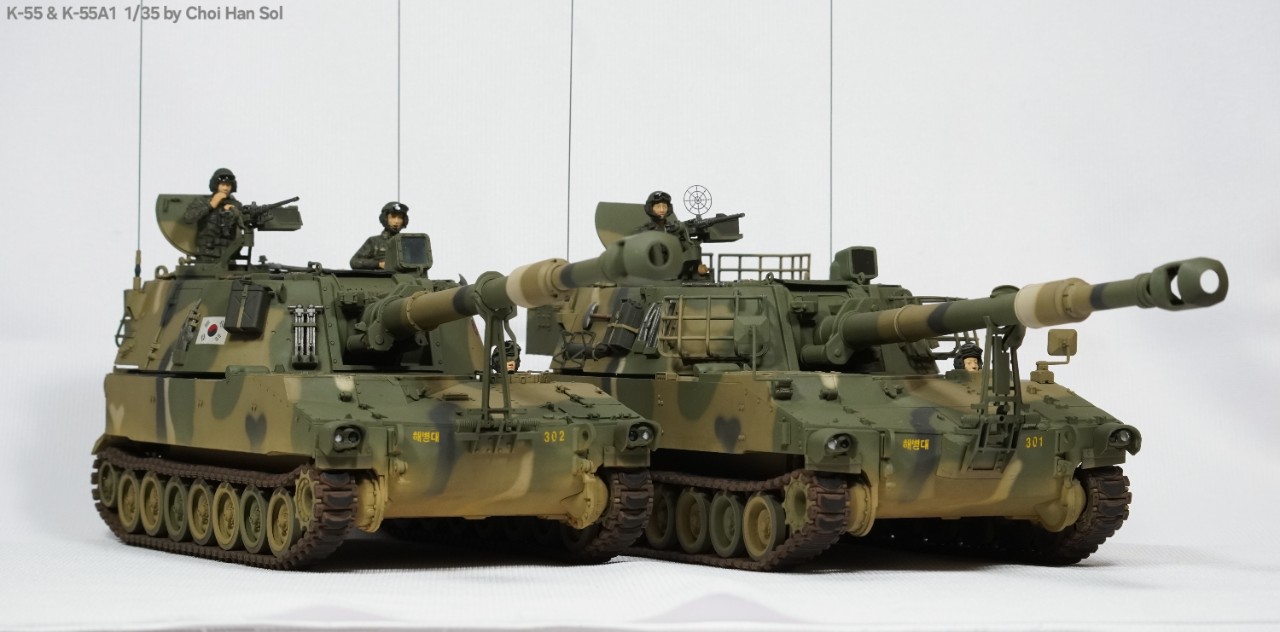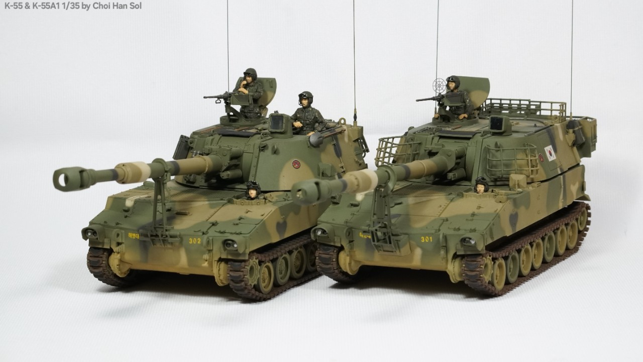 완성작을 올리는게 거의 생존신고가 되어버린듯 합니다만.. 암튼 의뢰로 작업하게된 디코퍼레이션제 K-55를 베이스로 GGC제 K-55A1컨버전킷을 적용한 K-55A1과 AFV클럽제 M109A2를 베이스로 만들게된 K-55입니다.