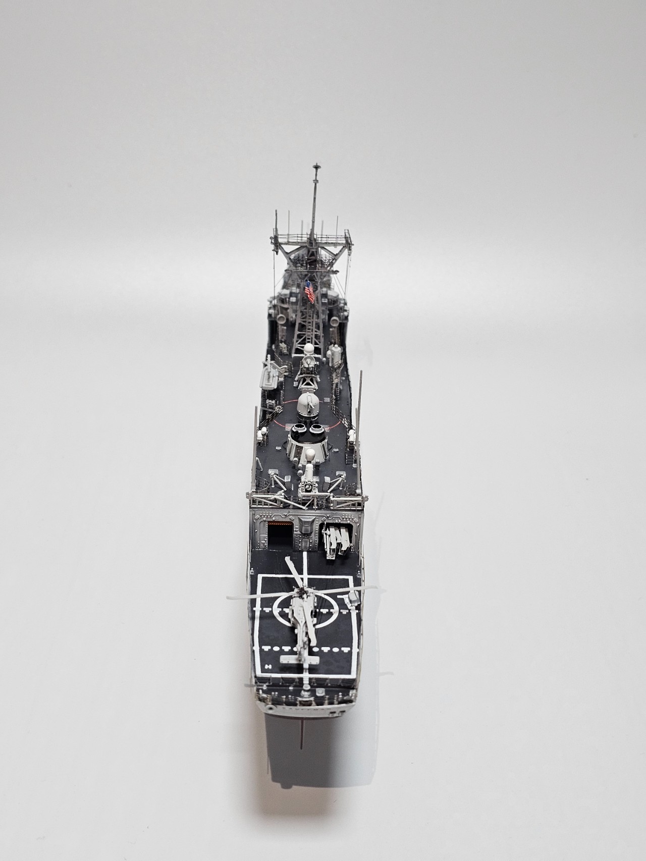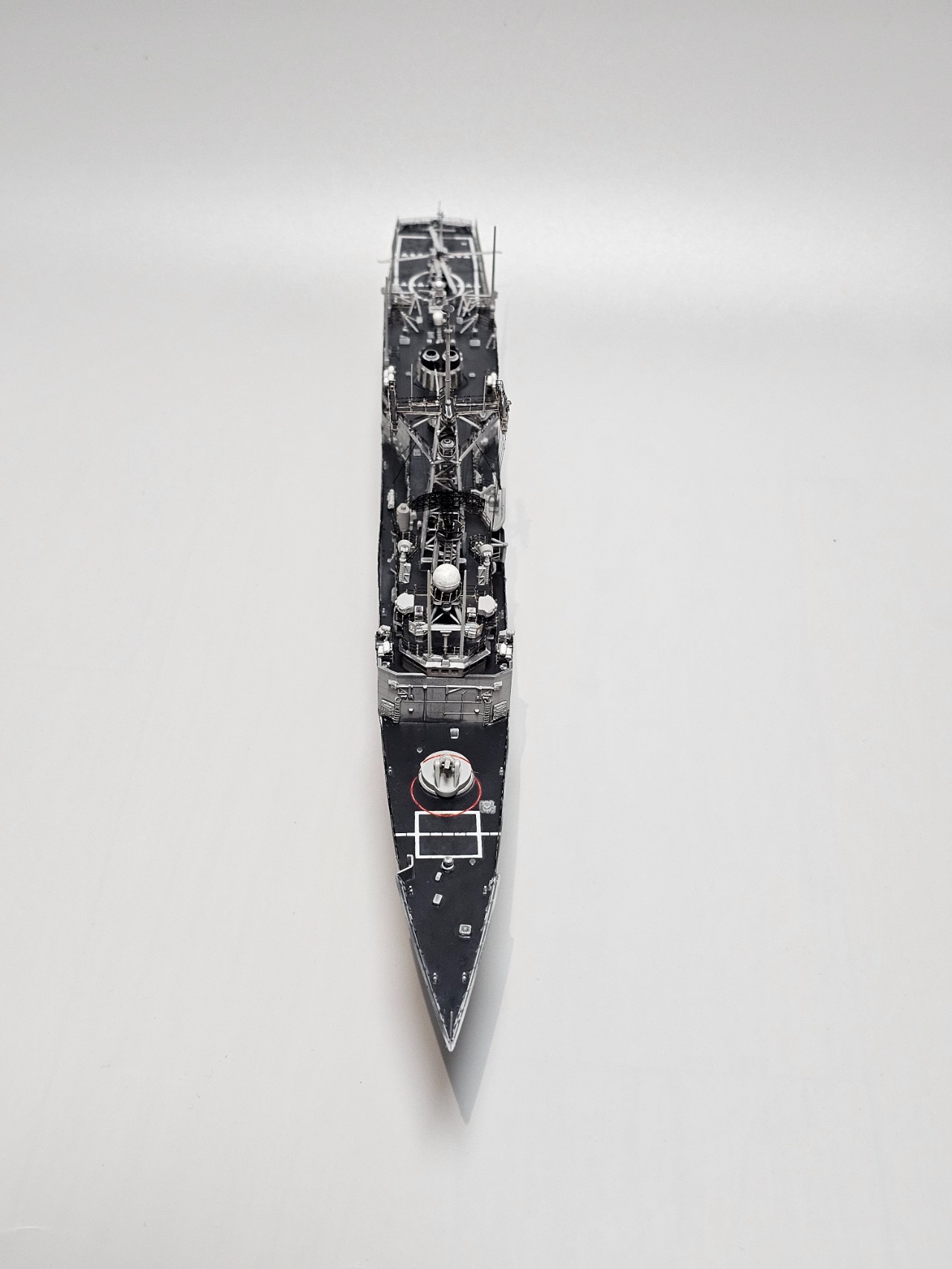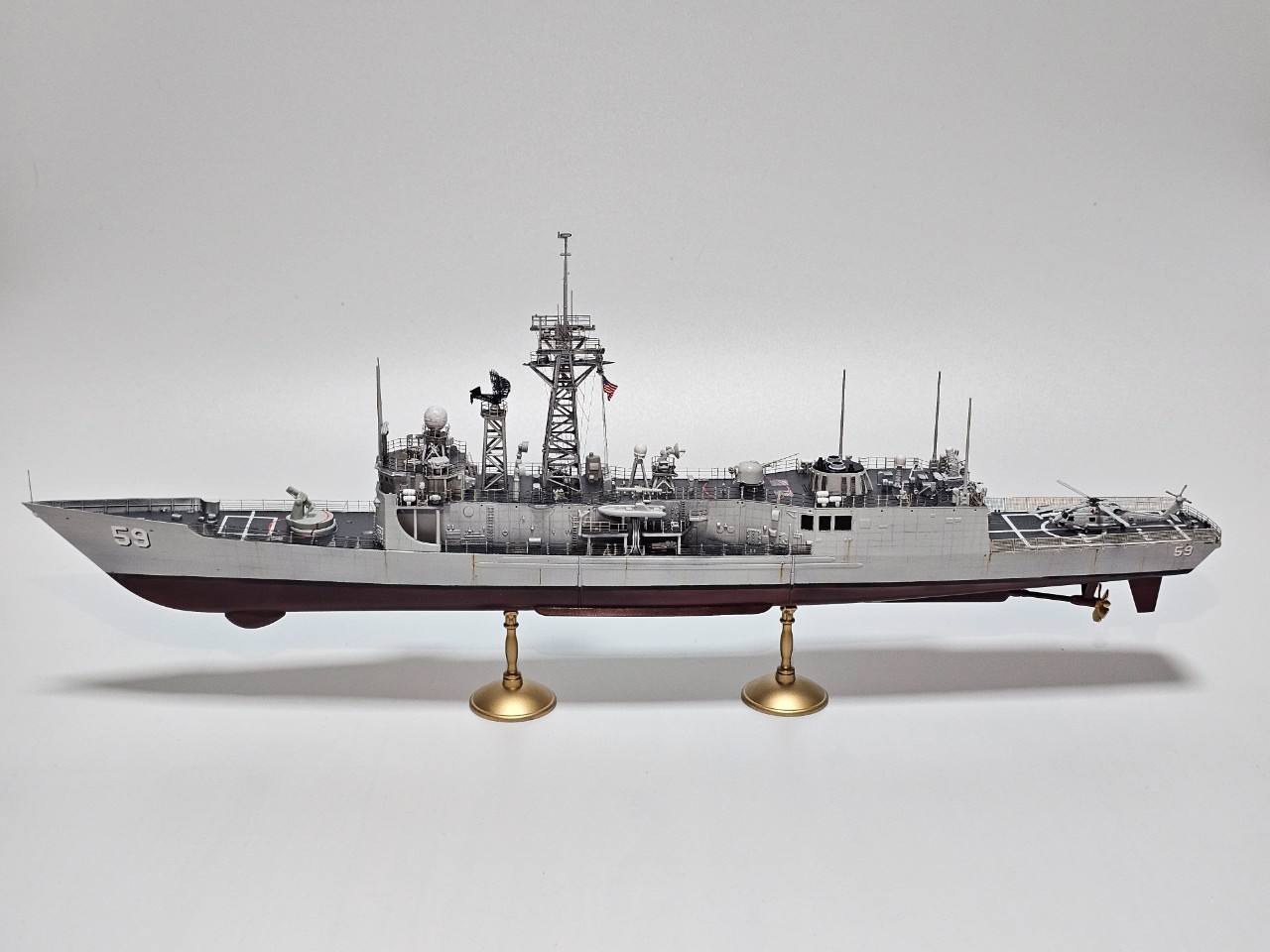 아카데미의 올리버 해저드 페리급 장선체형 킷을 바탕으로 함포, CIWS, 헬기, 어뢰발사관은 별매를 사용했고, 일부 사다리만 여분 에칭들에서 하나하나 가져다가 붙여주고 나머지는 전부 킷에 들어있는 인젝션과 동봉에칭을 이용해 만들어주었습니다.