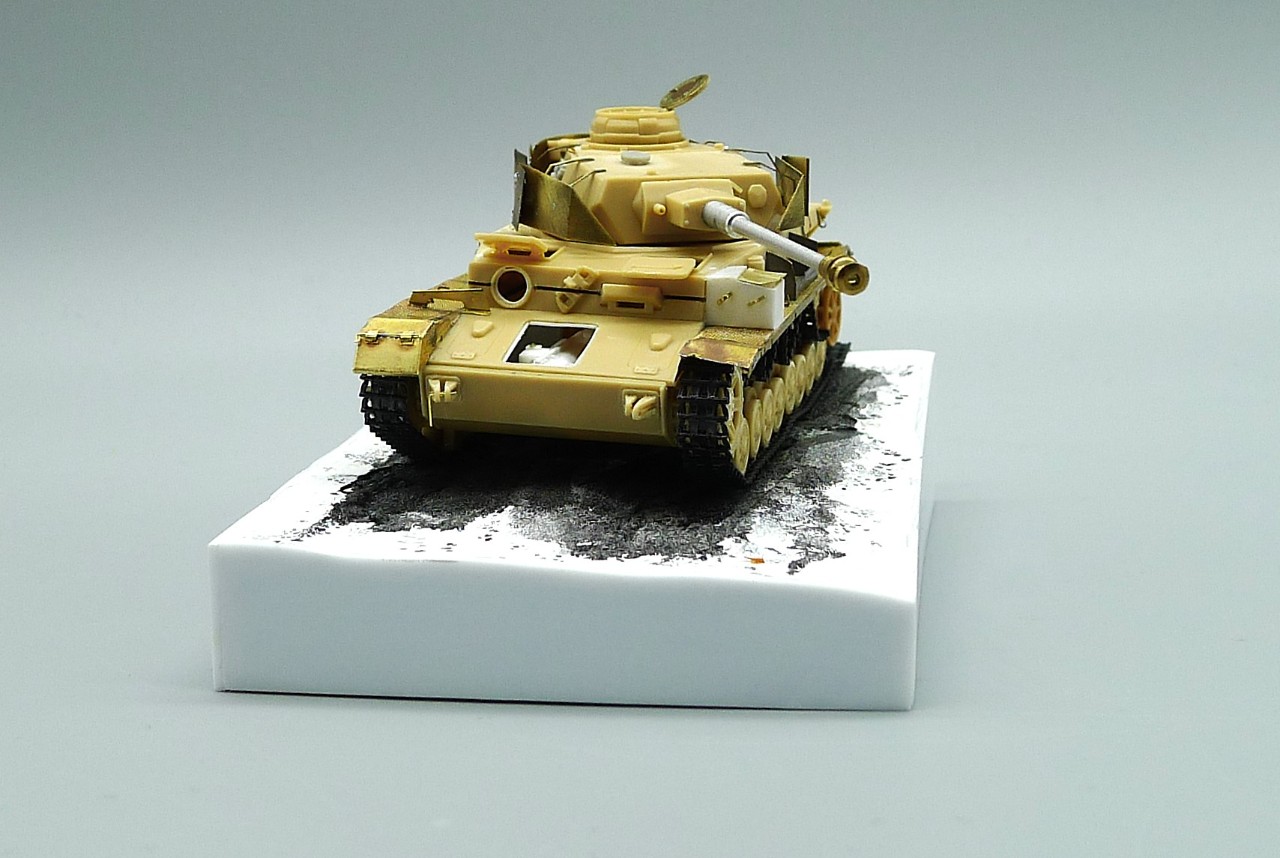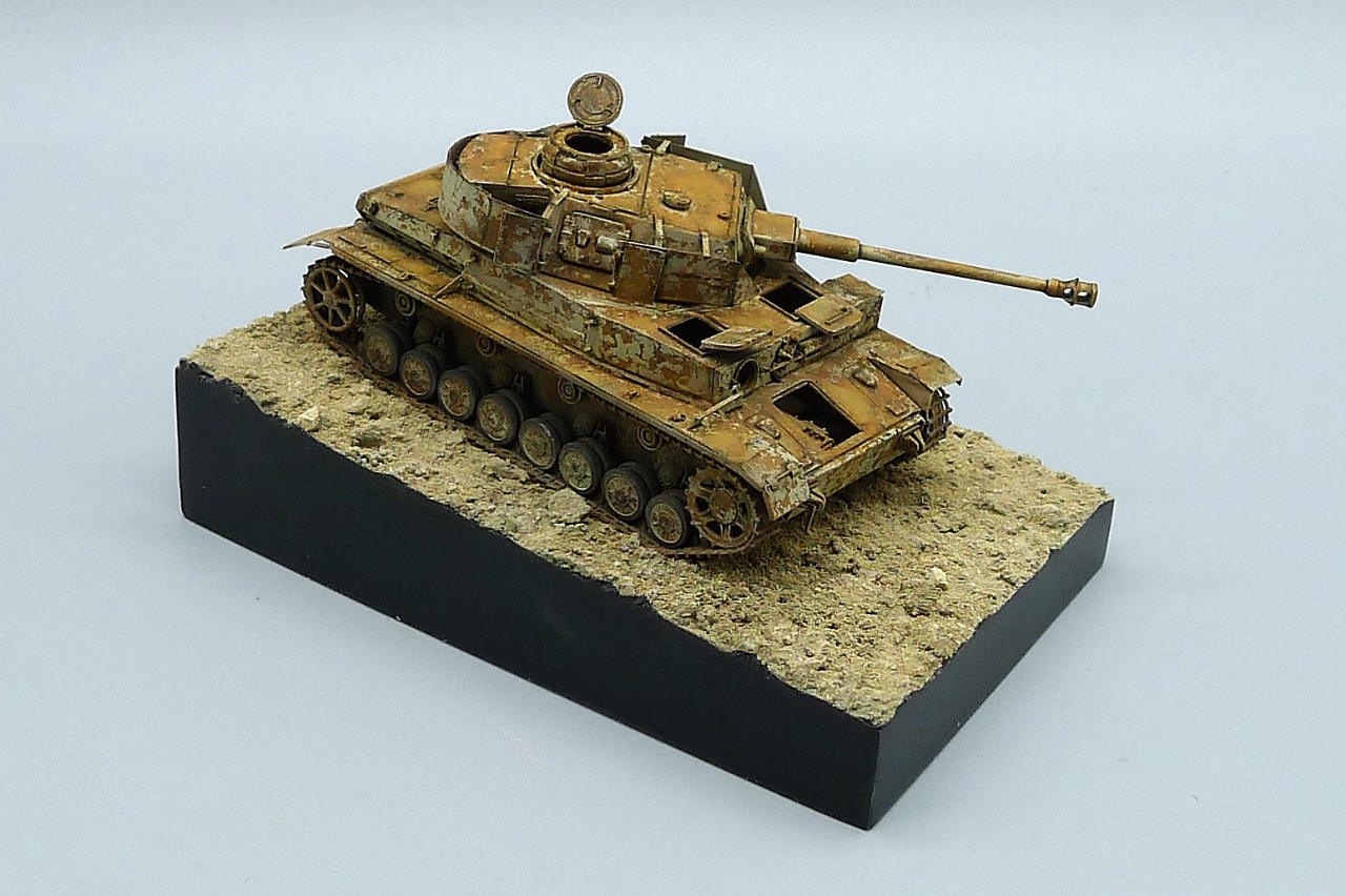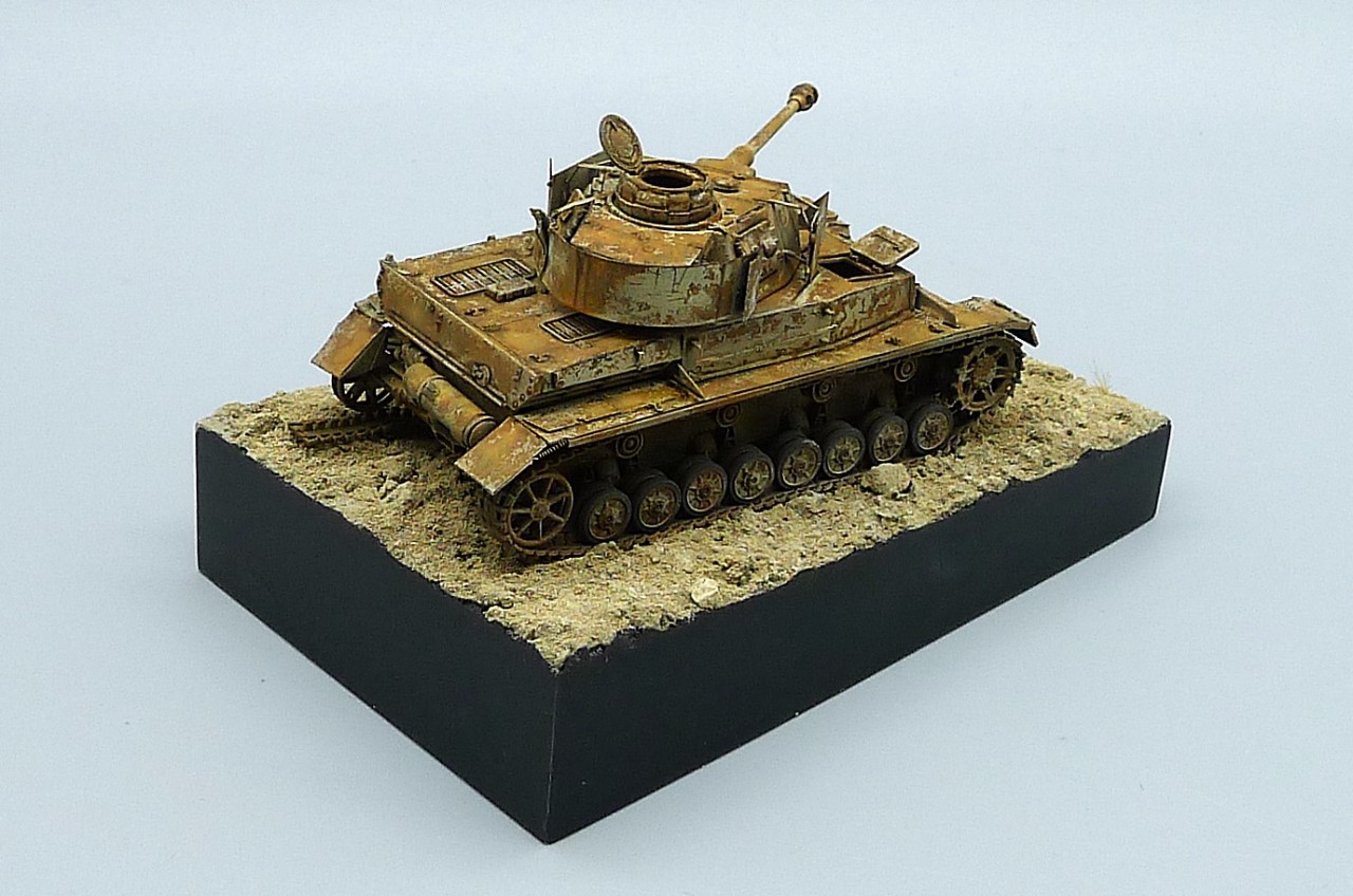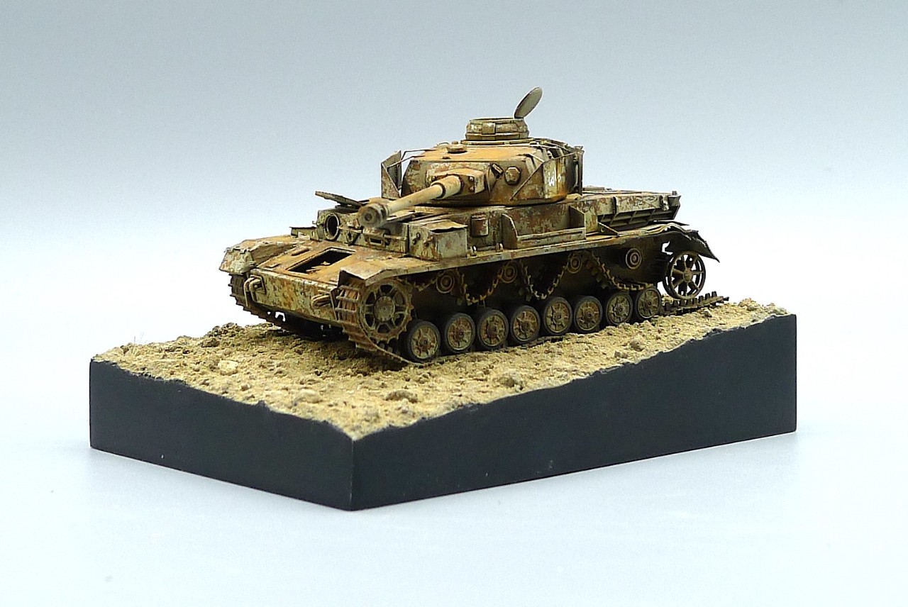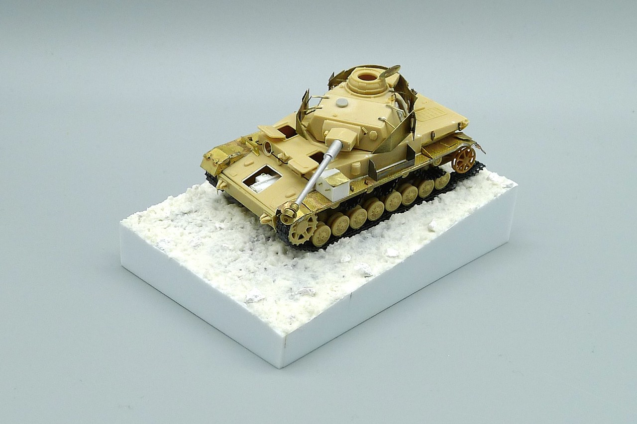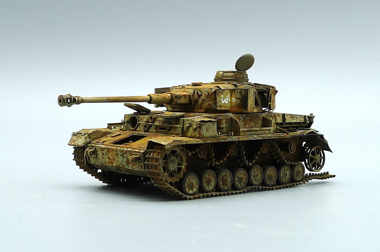 구글링하던 중 골란고원에 잠들어있는 시리아군 4호 전차 사진을 보고 영감을 받아 만들어봤습니다. 레벨의 4호 전차 H형을 베이스로 전방 상판의 트랜스미션 커버를 뚫어주고 실물 사진 참고하여 프라판,봉으로 만들어주었습니다. 쉬르첸과 펜더는 파트사의 에칭인데 아무래도 내구성이 염려되어 납땜 처리하였습니다. 시리아 4호전차 특징인 오묘한 각도의 공구상자 같은 걸 만들어 주었고 전방 소총수 조종수 관측창에 예비궤도 걸이가 있어 에칭런너로 만들어줬습니다. 궤도는 즈베즈다 4호에서 가져왔고 좌측은 파손된 형태로 심하게 휘어주었고 인형은 프레이져 민간인 인형인데 호기심에 들여다보는 모습이잘 어울린다 생각되어 배치해봤습니다.