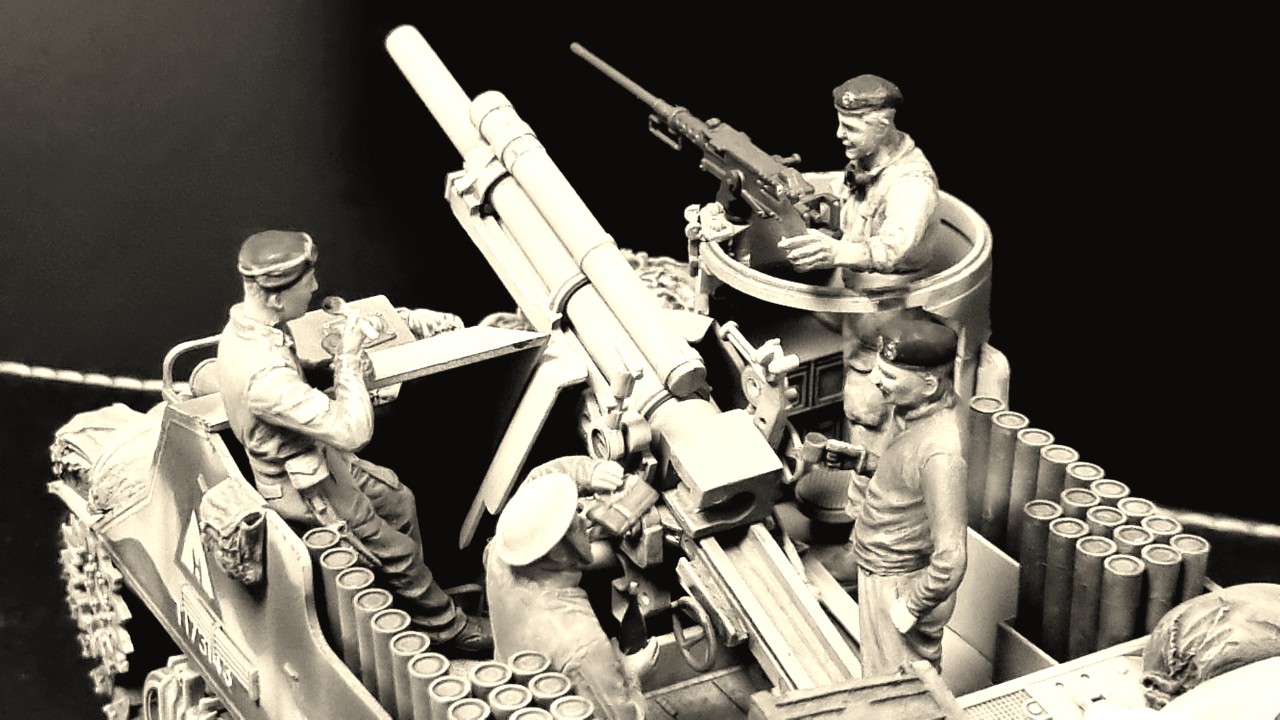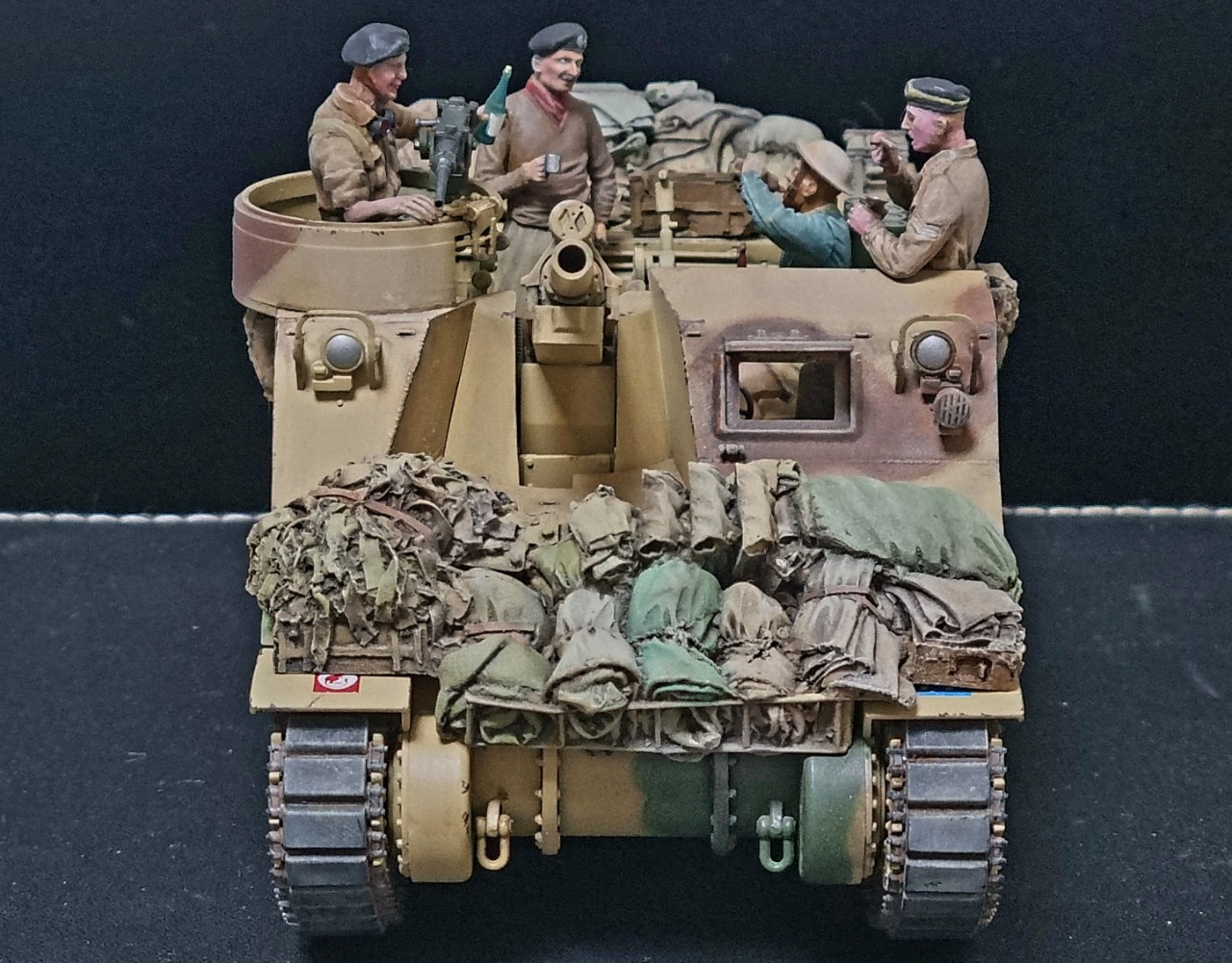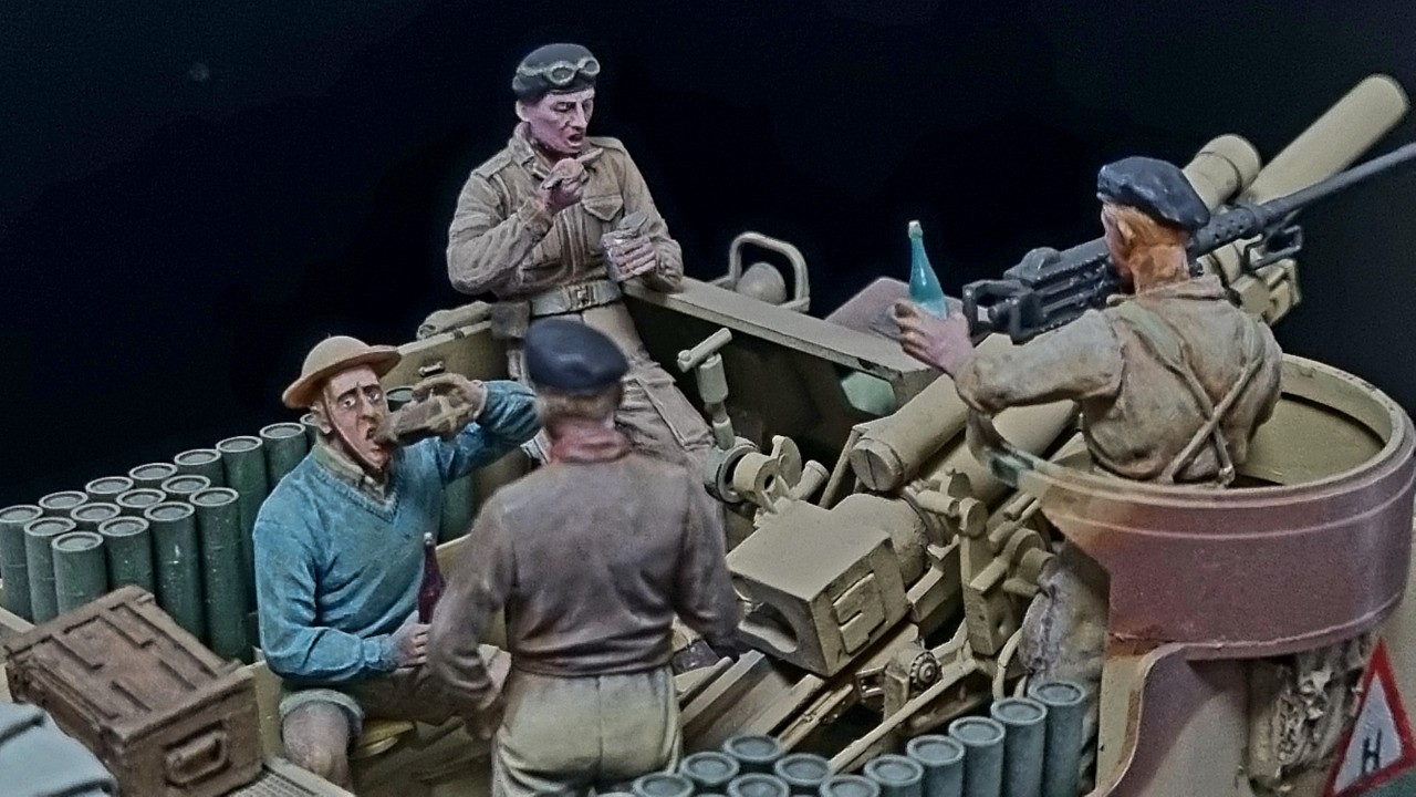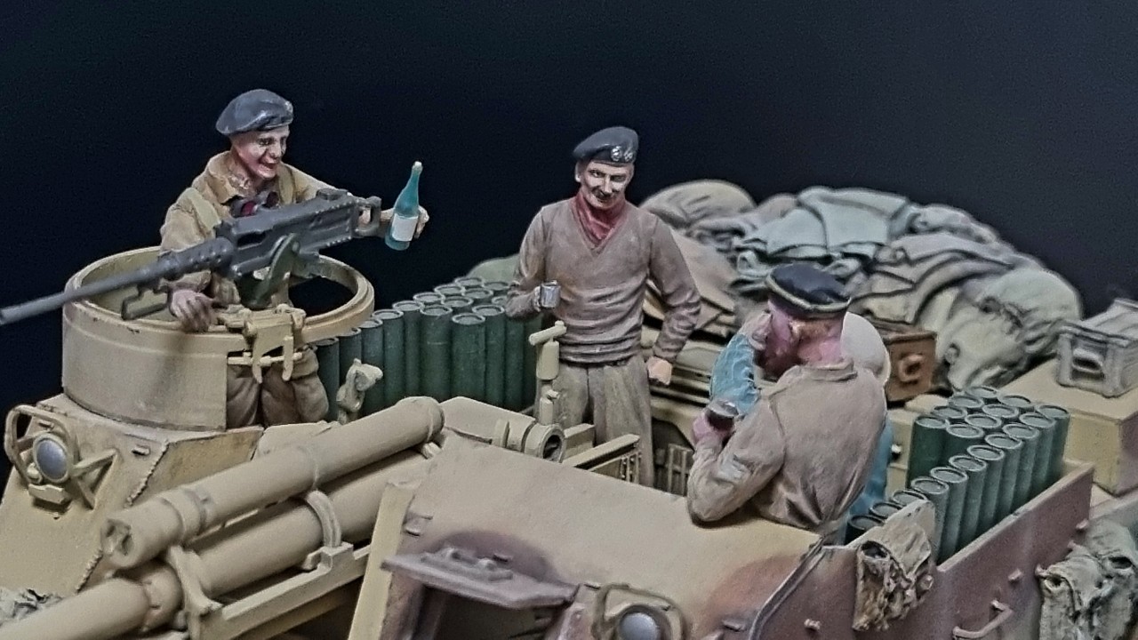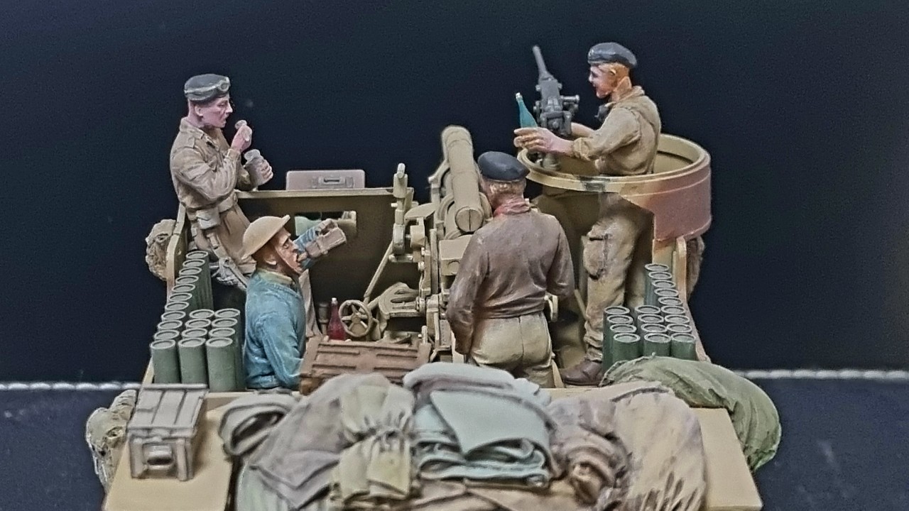 1:35 아카데미 프리스트를 영국군 사막형으로 만들고 미니아트, 타미야 전차병, 드래곤 독일군등을 개조해 만든 영국군 인형을 올려 오랜 시간만에 완성하였습니다.