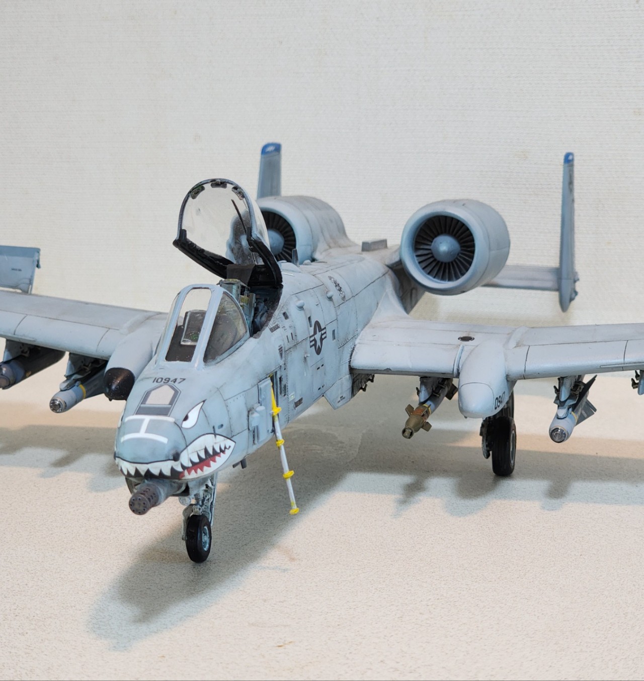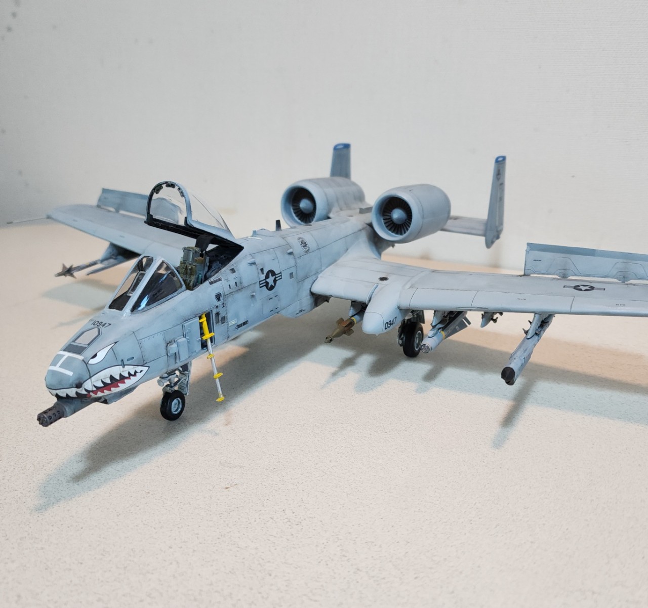 모노그램 A-10을 몇년전 하비페어에서 싸게 사서 제작해보았습니다. 최대한 리벳 살리는 선에서 선파기 해주었고, 잘해보려고 하니 계속 별매를 사서 발랐습니다.