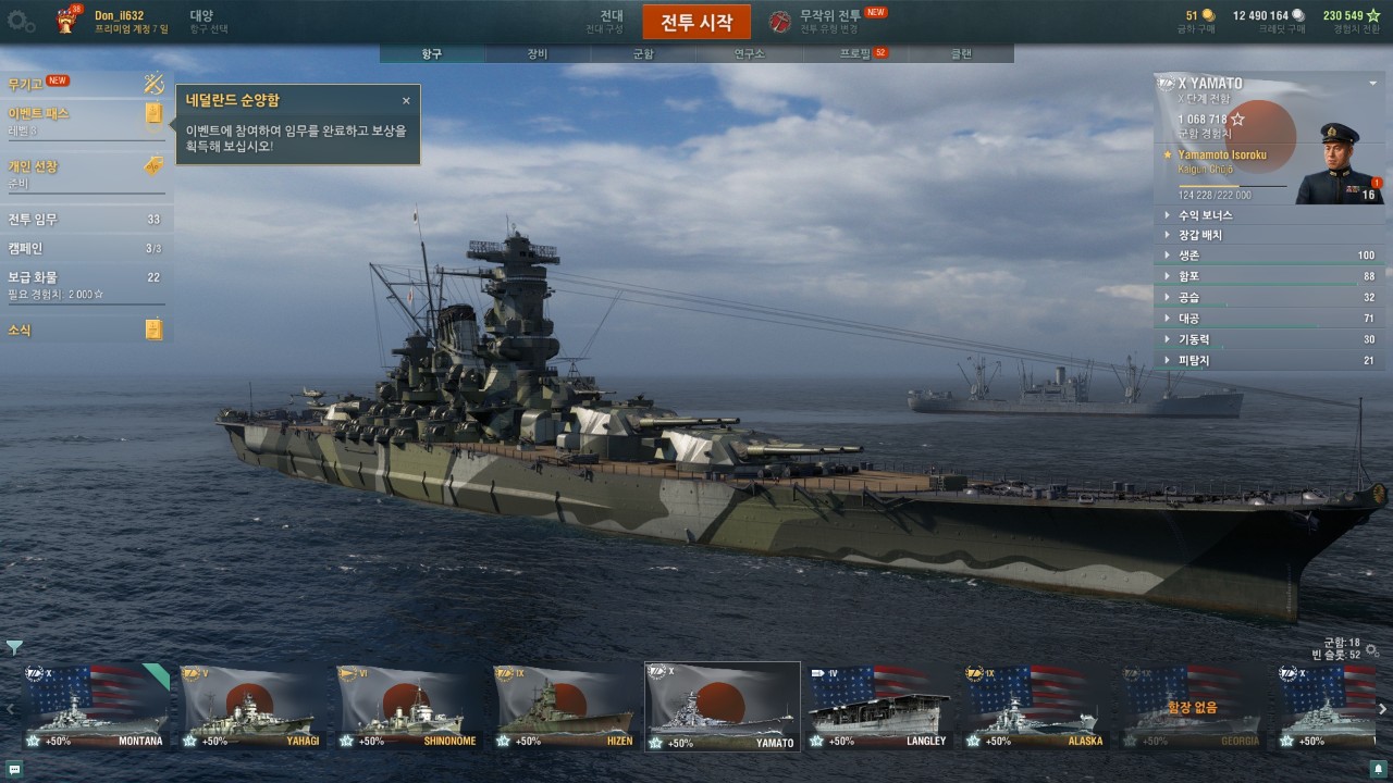 예전부터 해보고싶었던 월드오브워쉽에 나오는 야마토의 전용위장을 해봤습니다.