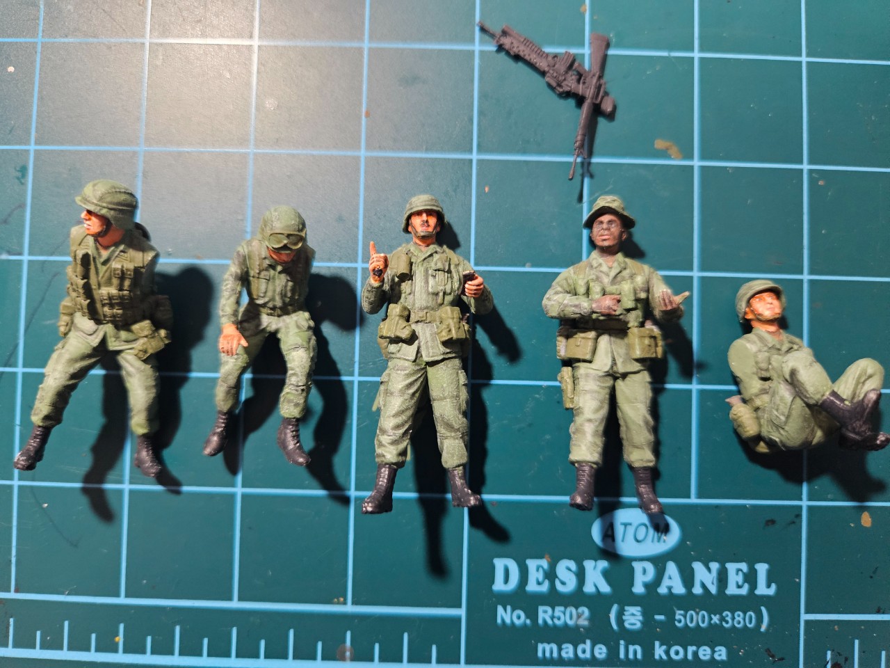 좌에서 3번째 부사관(하사.Staff Sergeant)이 들고 있는 송수화기를 바나나형 탄창(트럼페터)으로 대체, 총은 M16A1.(브라보6)