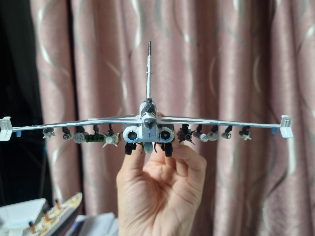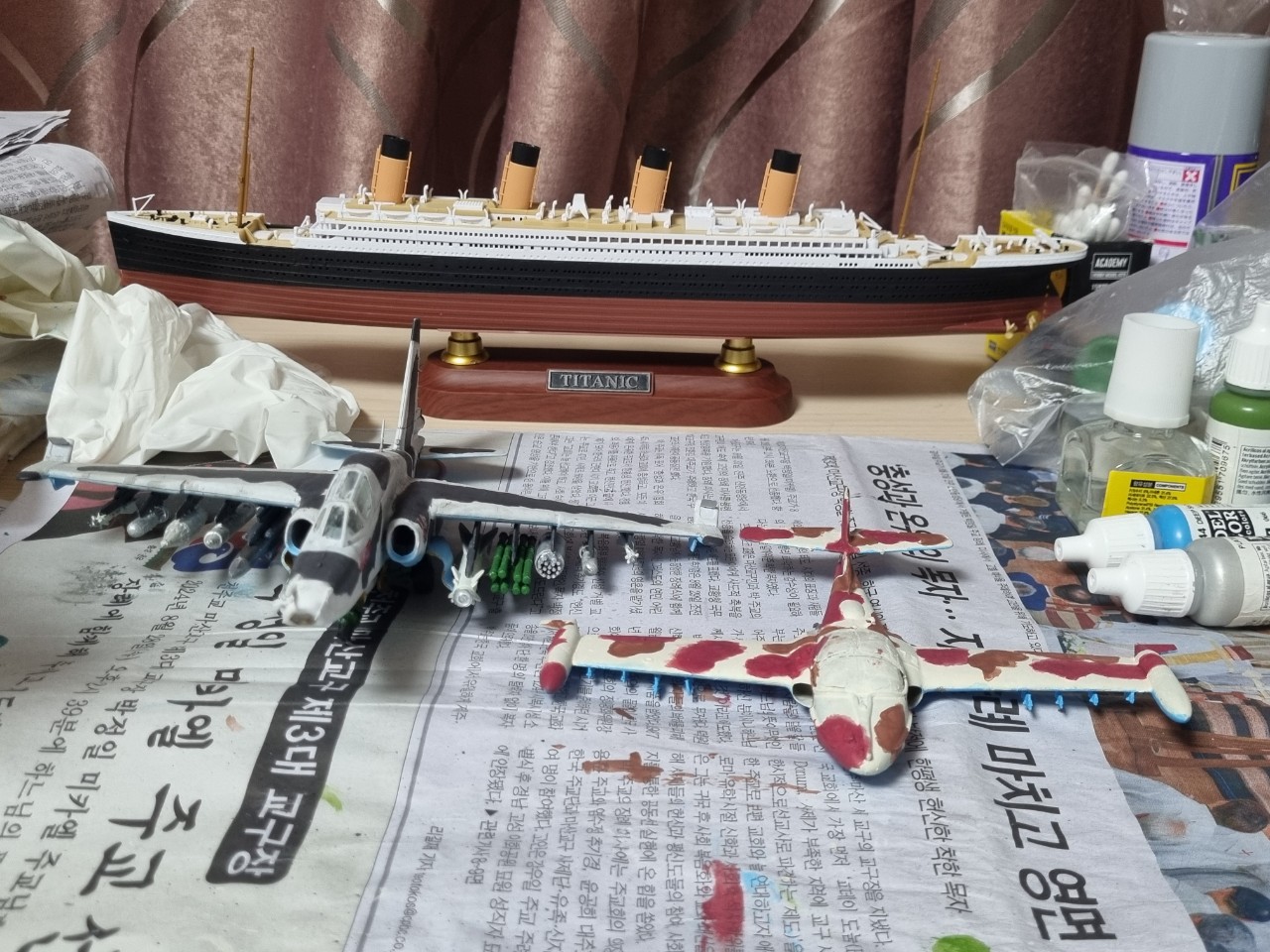완성했던 1/700 멩모델 타이타닉, 만들고 있는 1/72 A-37과 크기를 비교했습니다. 수호이가 크긴 크네요.