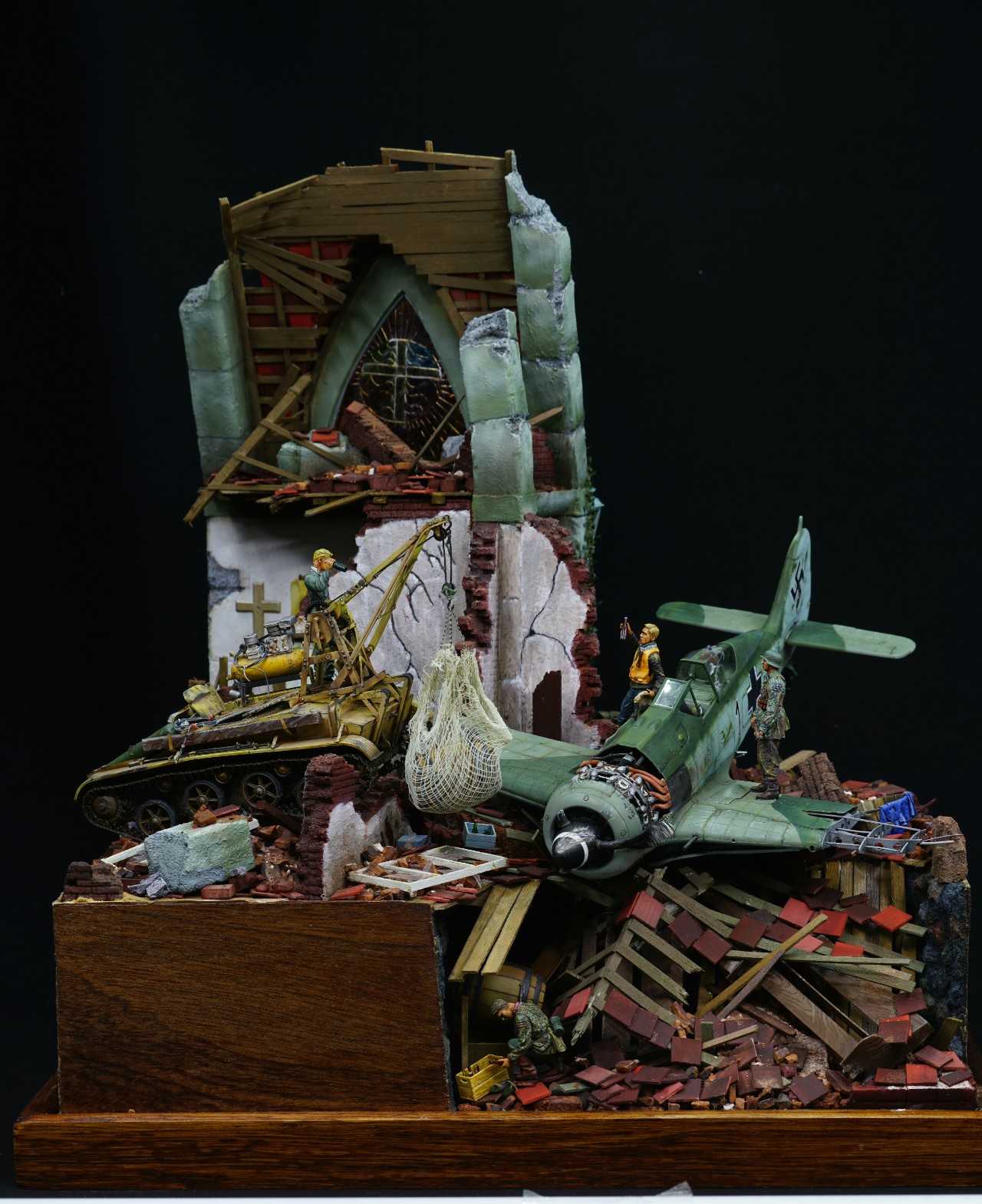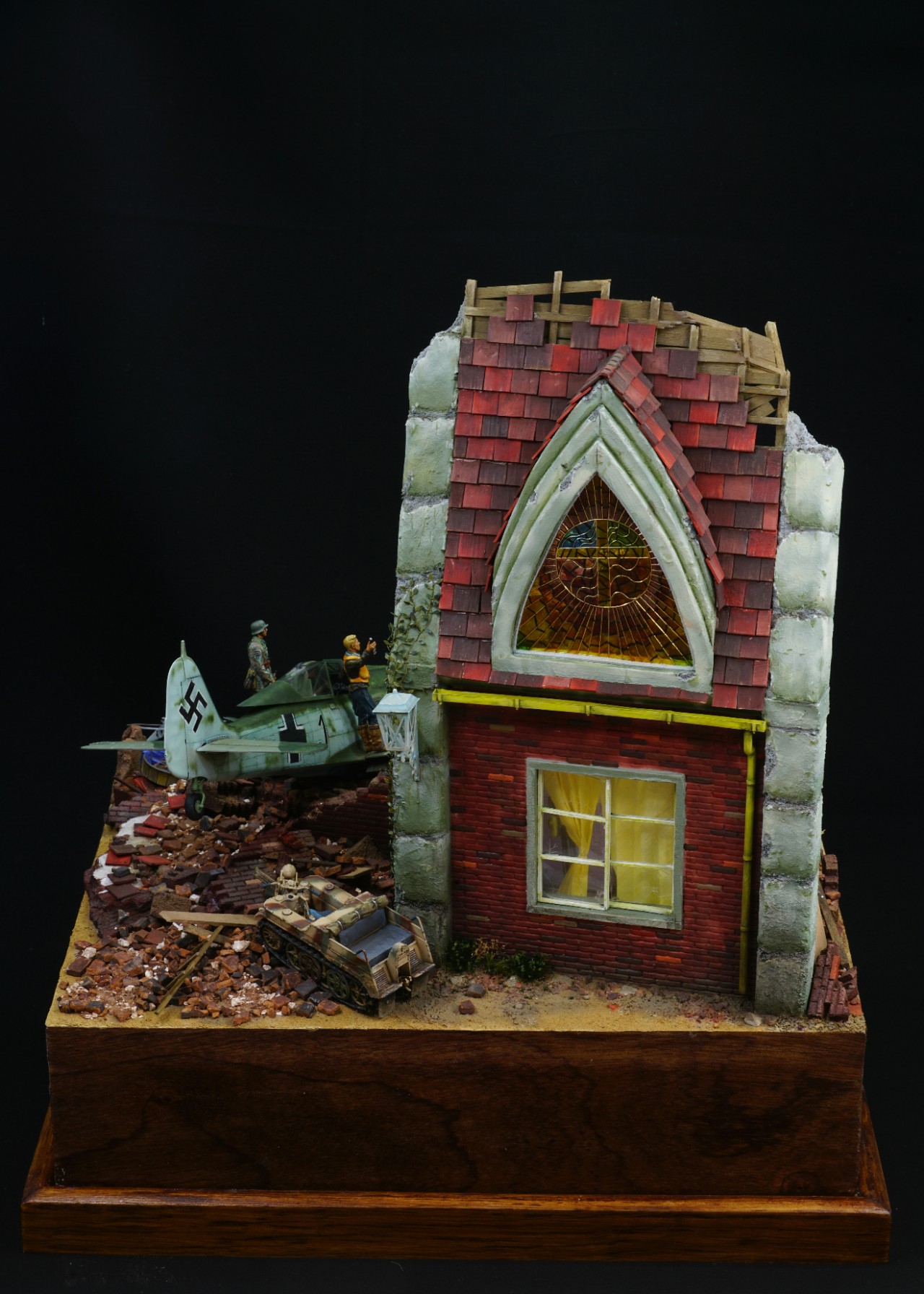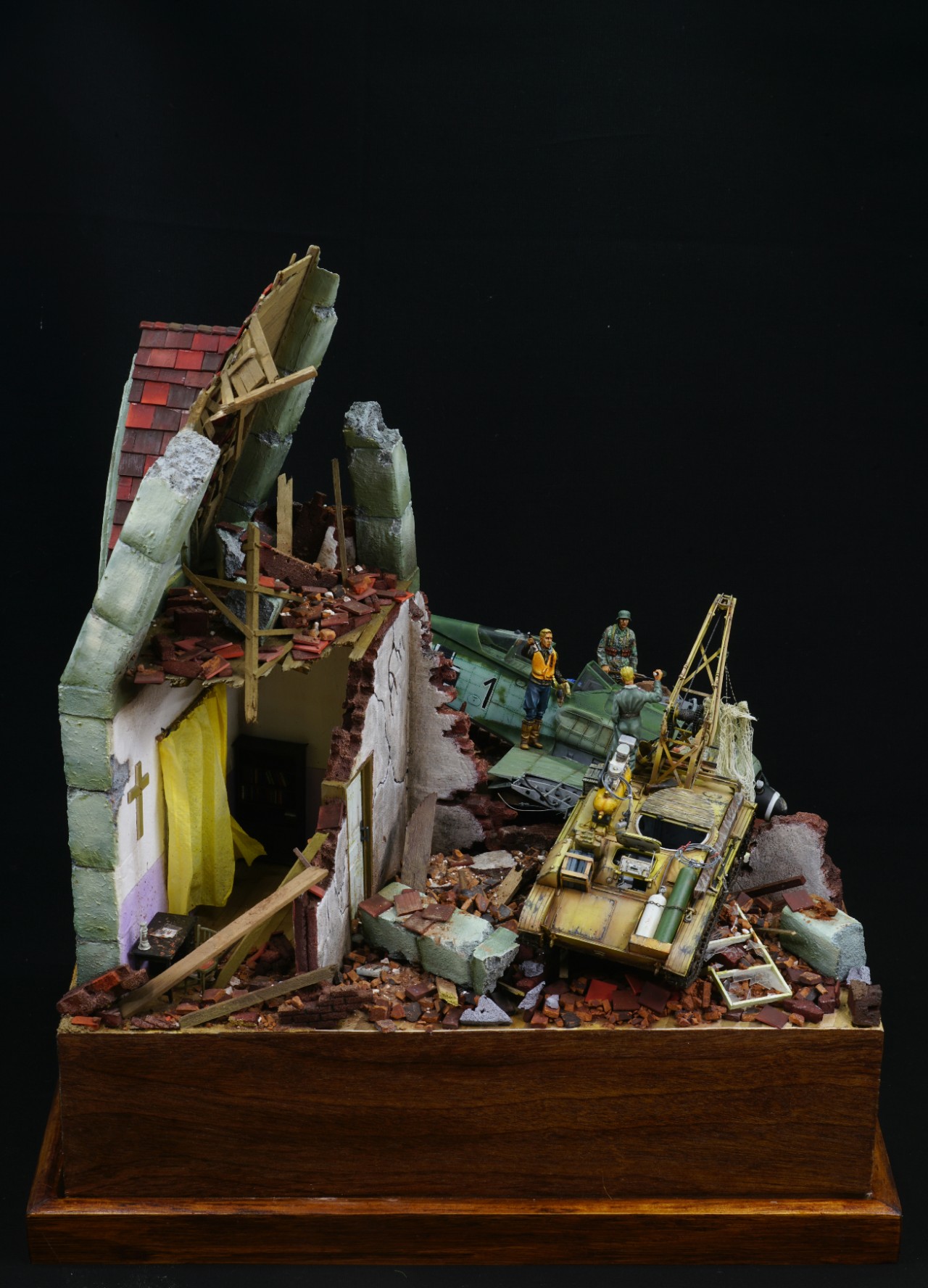 첫 레이아웃은 바닥의 1/3이 지하 공간이었는데 여기저기 건물잔해를 올리다보니 협소 해져버린 지하실 입니다. 막바지에는 인형 한마리 넣을 곳이 없더군요. 초반 계획을 잘 세웠어야 했습니다.