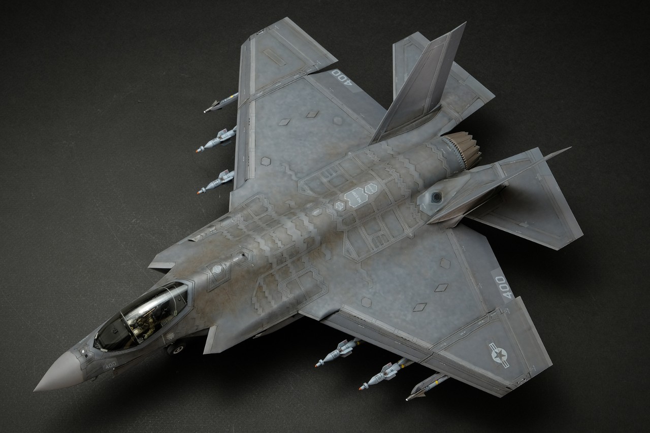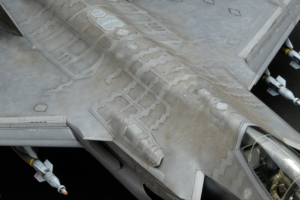 이번에 타미야에서 F-35 전용 컬러로 출시된 LP-84/ LP-85 그레이 락커를 사용하여 도색했고 해군기의 특징인 소금기를 풍부하게 표현해봤습니다.