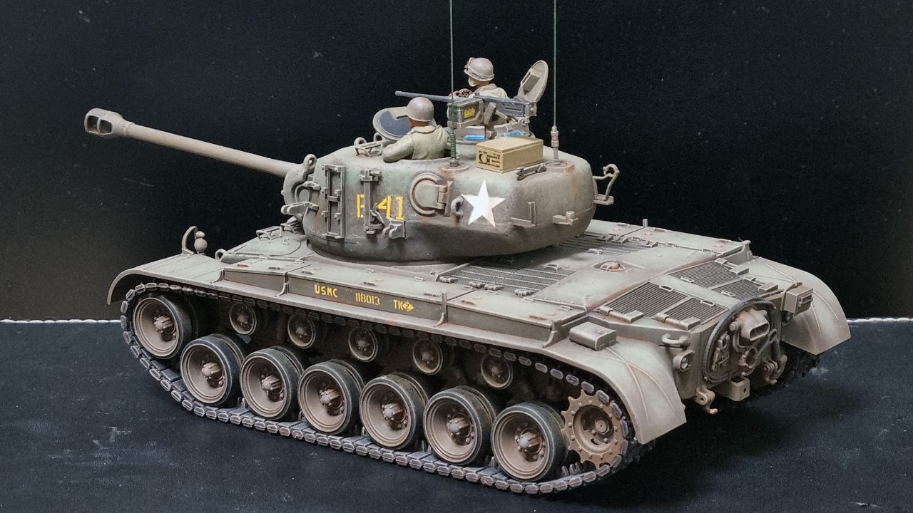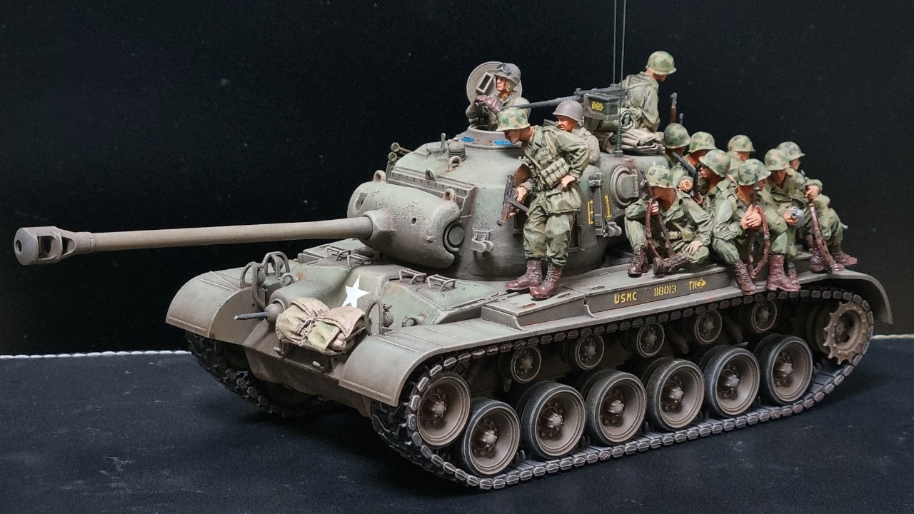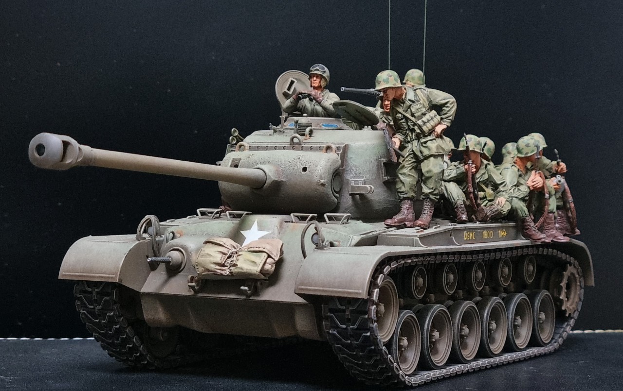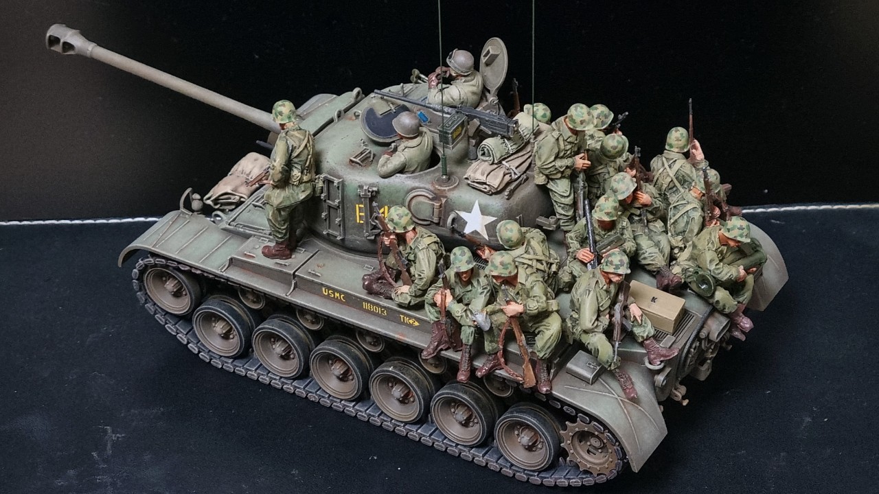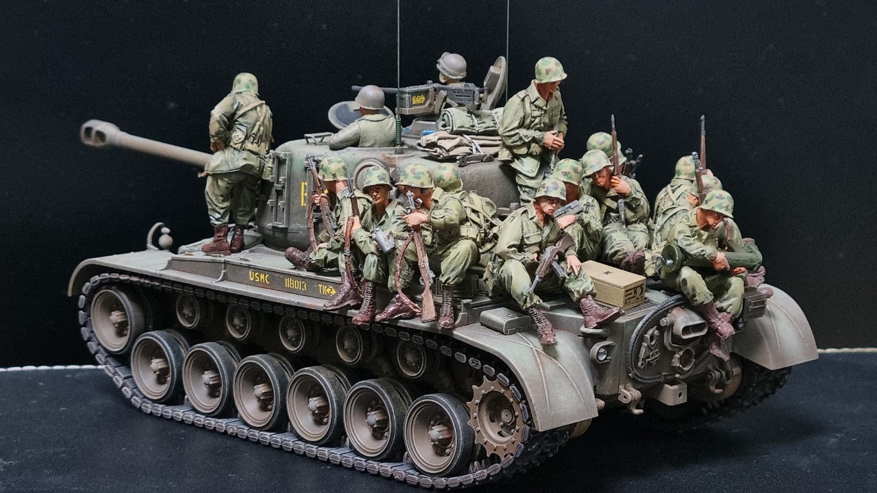 1:35 퍼싱을 한국전쟁 컨셉으로 만들어 보았습니다. 타미야 퍼싱은 1950년 인천 상륙 당시 해병 데칼이 있길래 꽤 오래전부터 기획해왔었는데 지인분이 필요한 인형을 공여해주셔서 작업할 수 있었습니다..