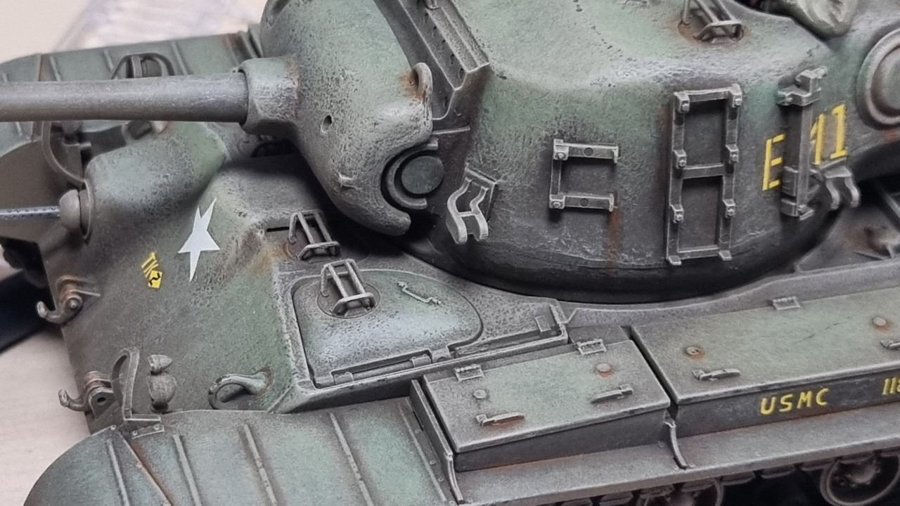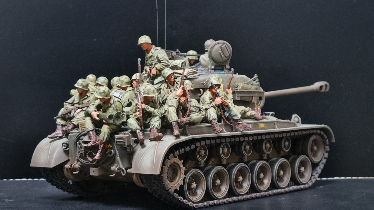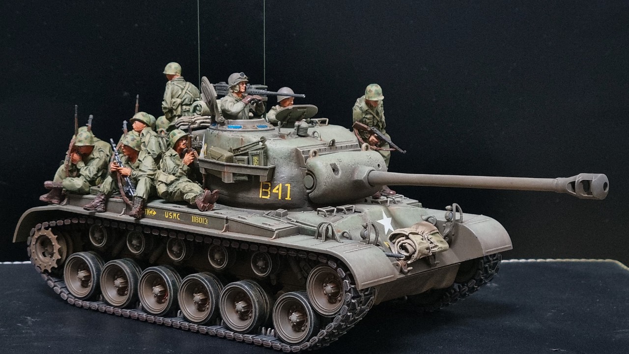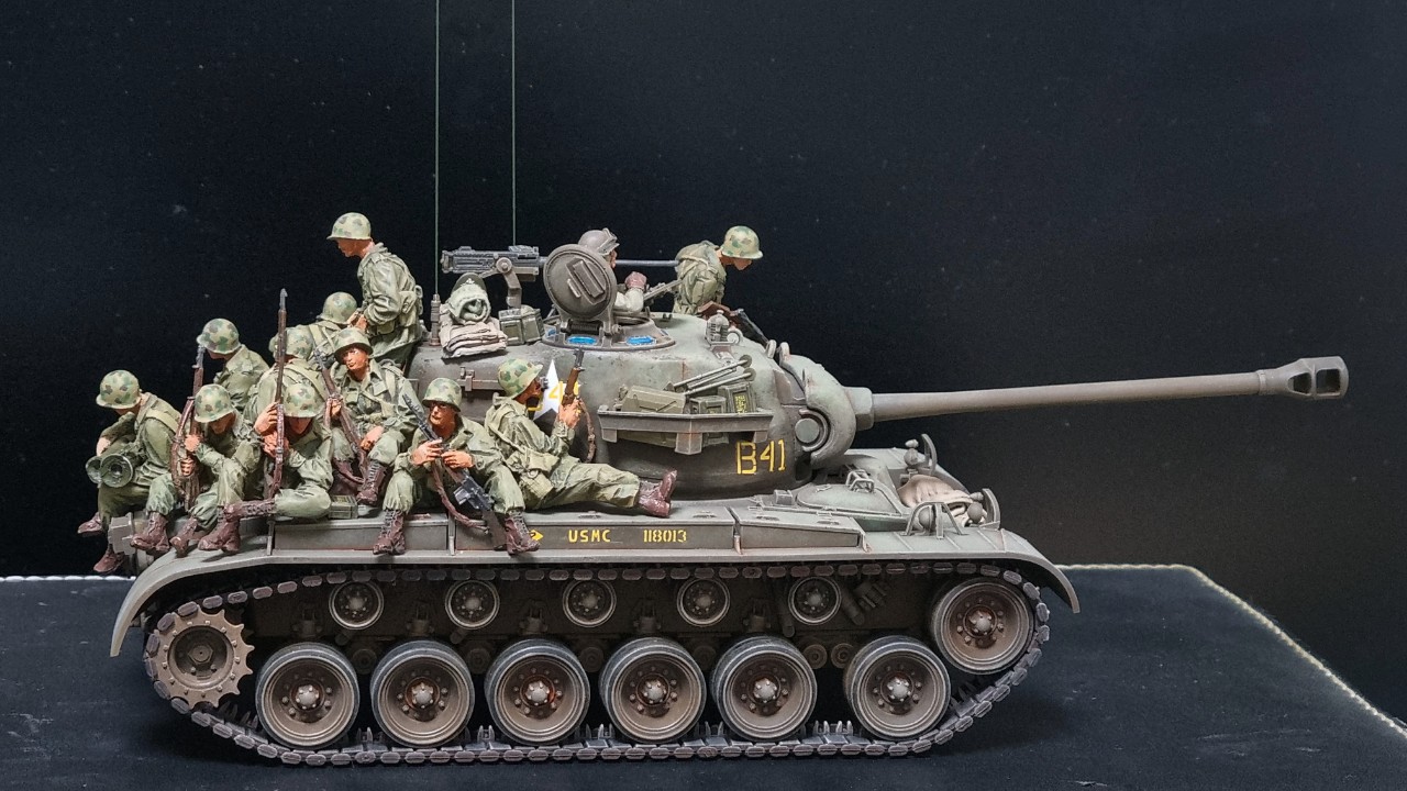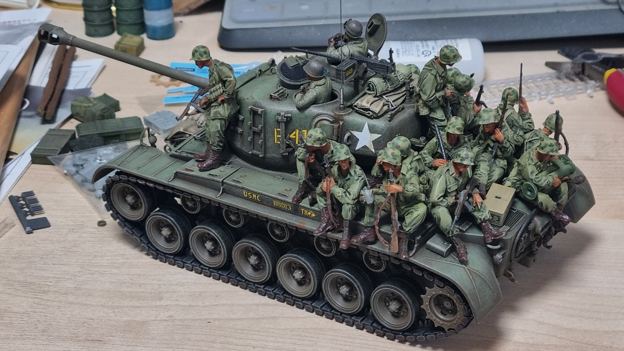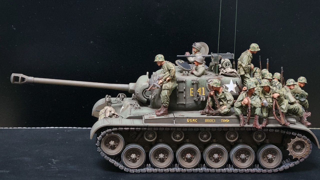 1:35 퍼싱을 한국전쟁 컨셉으로 만들어 보았습니다. 타미야 퍼싱은 1950년 인천 상륙 당시 해병 데칼이 있길래 꽤 오래전부터 기획해왔었는데 지인분이 필요한 인형을 공여해주셔서 작업할 수 있었습니다..