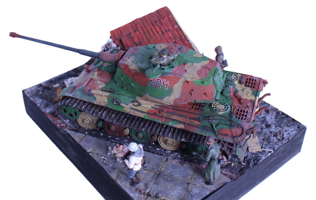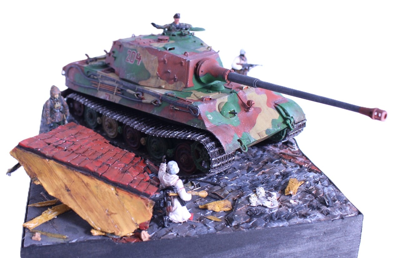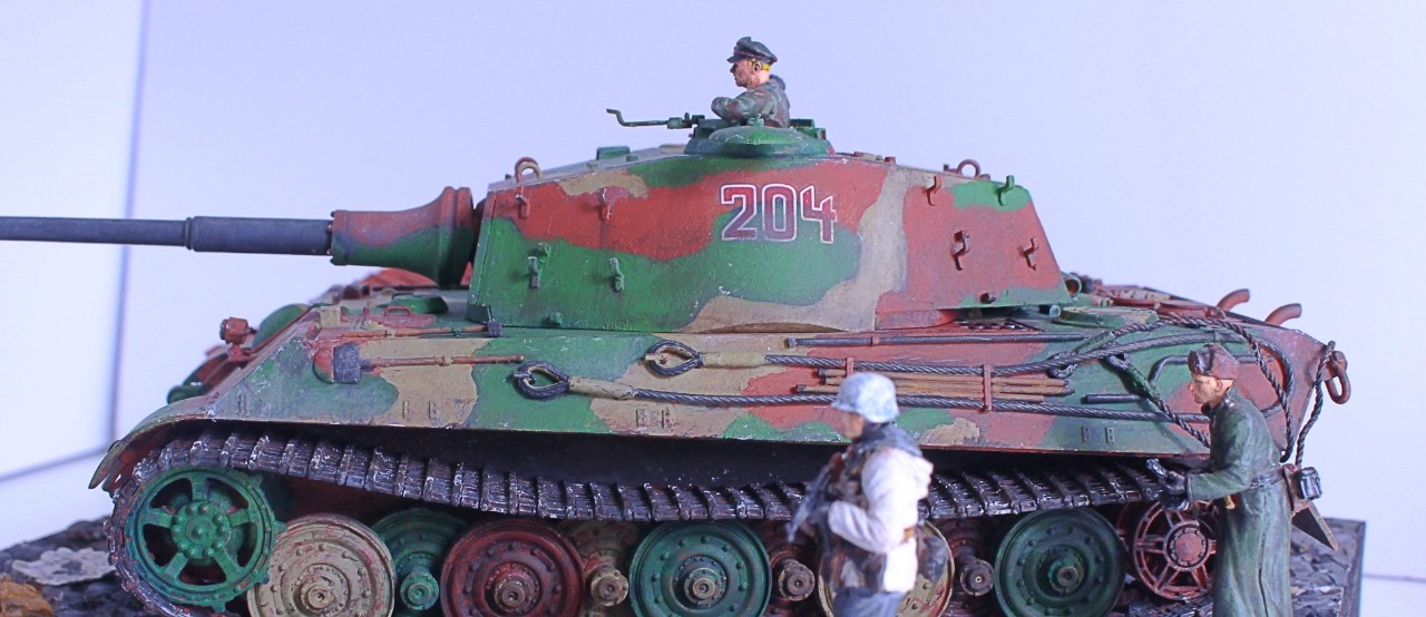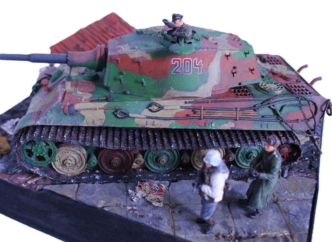 타이야 킹타이거이고 아크릴도색입니다. 전차 왼쪽면은 제 상상력에 의지해서 마음대로 색칠해봤습니다. 연질궤도인데 티가 많이 나네요. 다음에는 조립식 궤도를 따로 사봐야 겠어요.