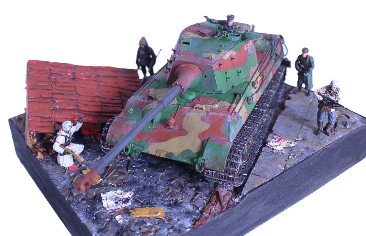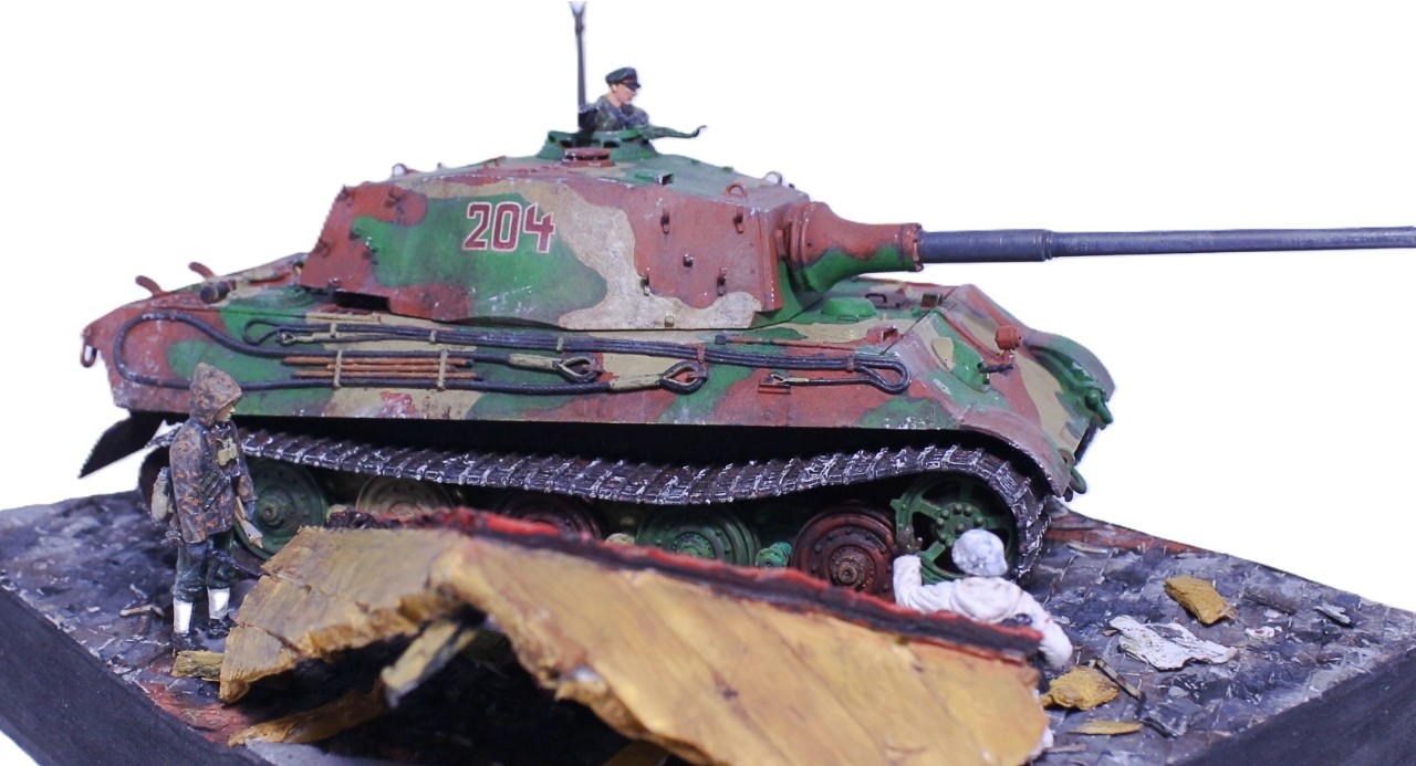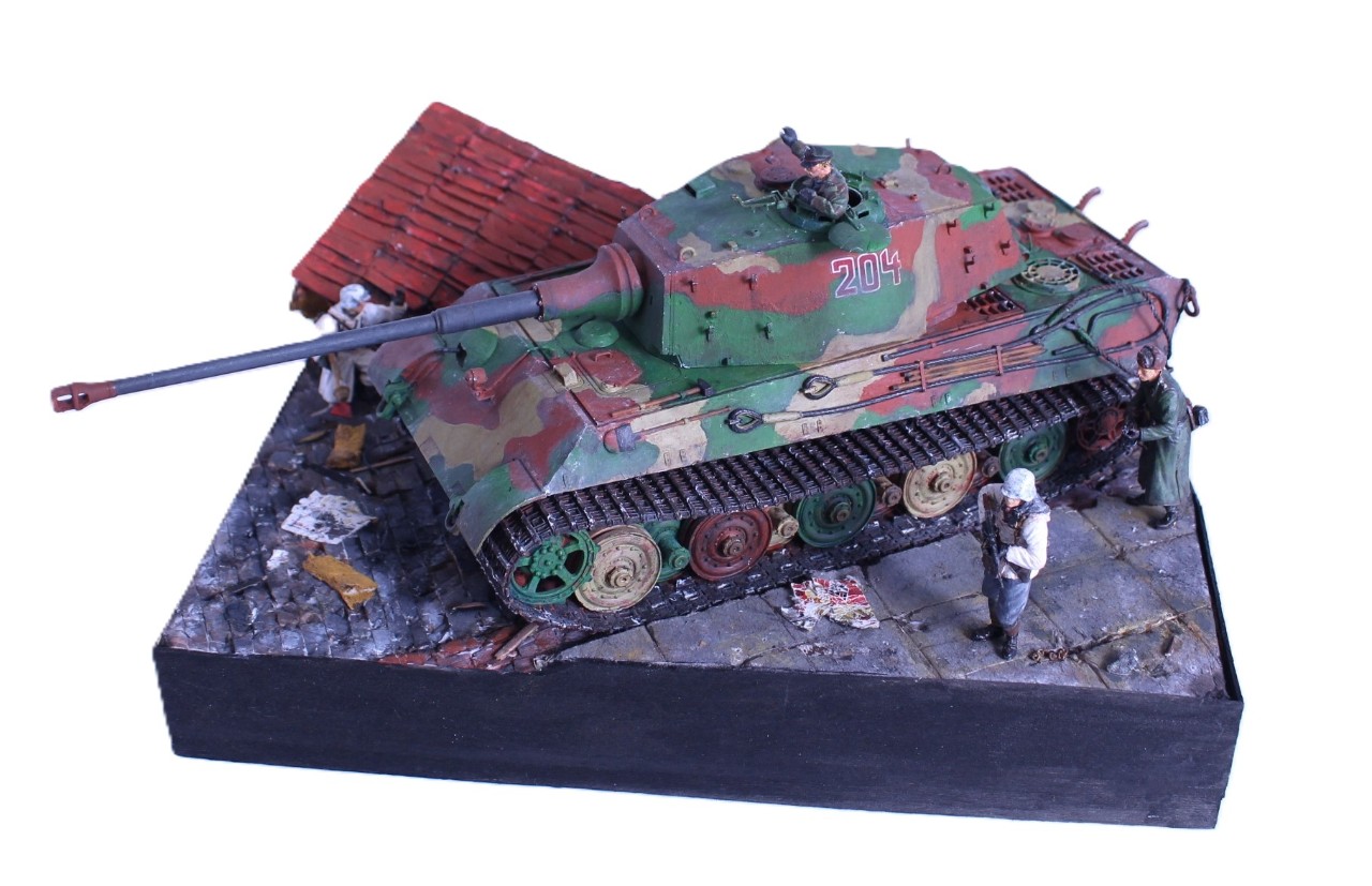타이야 킹타이거이고 아크릴도색입니다. 전차 왼쪽면은 제 상상력에 의지해서 마음대로 색칠해봤습니다. 연질궤도인데 티가 많이 나네요. 다음에는 조립식 궤도를 따로 사봐야 겠어요.