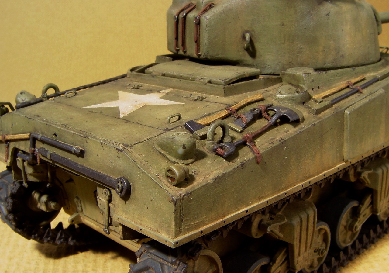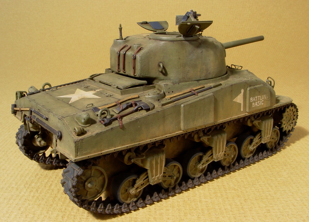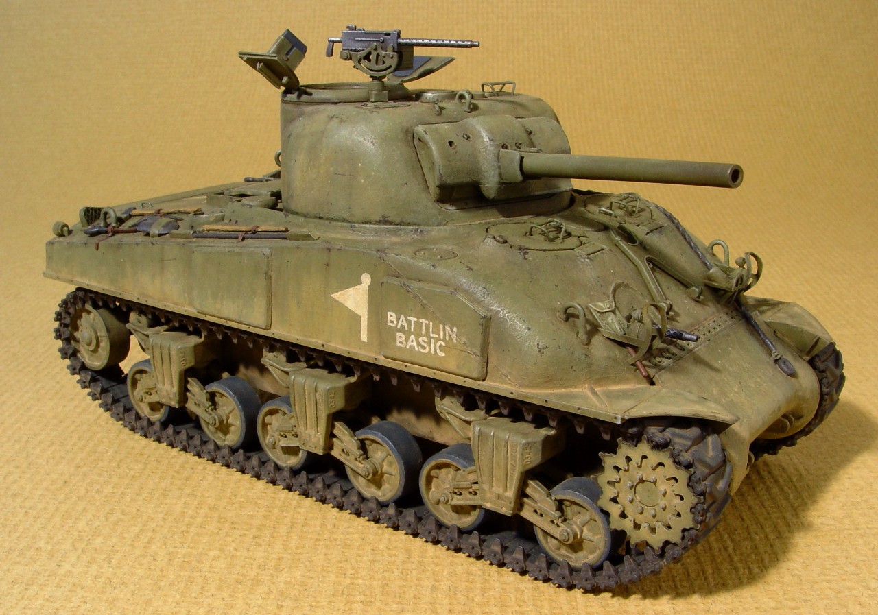 2000년에 완성한 것인데 당시에는 온전한 형태의 M4 Hybrid 킷트는 없어서 몇가지 킷트를 이용하여 짜집기하였습니다. 차체는 드라곤 Firefly I C 차체를 사용하였고, 포탑은 드라곤 75mm 포탑을 약간 수정하여 사용하였습니다. 고무 쉐브론의 T48 궤도는 타미야 M4 키트의 고무제 궤도를 사용하였습니다.
