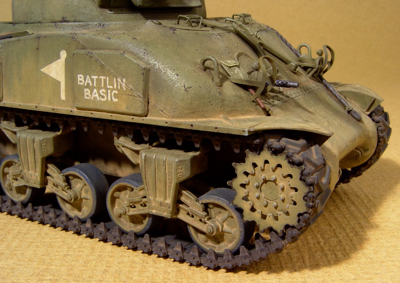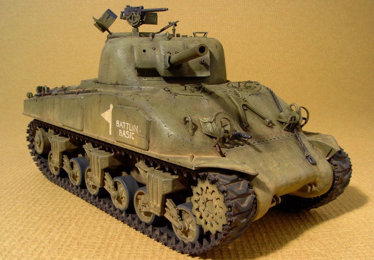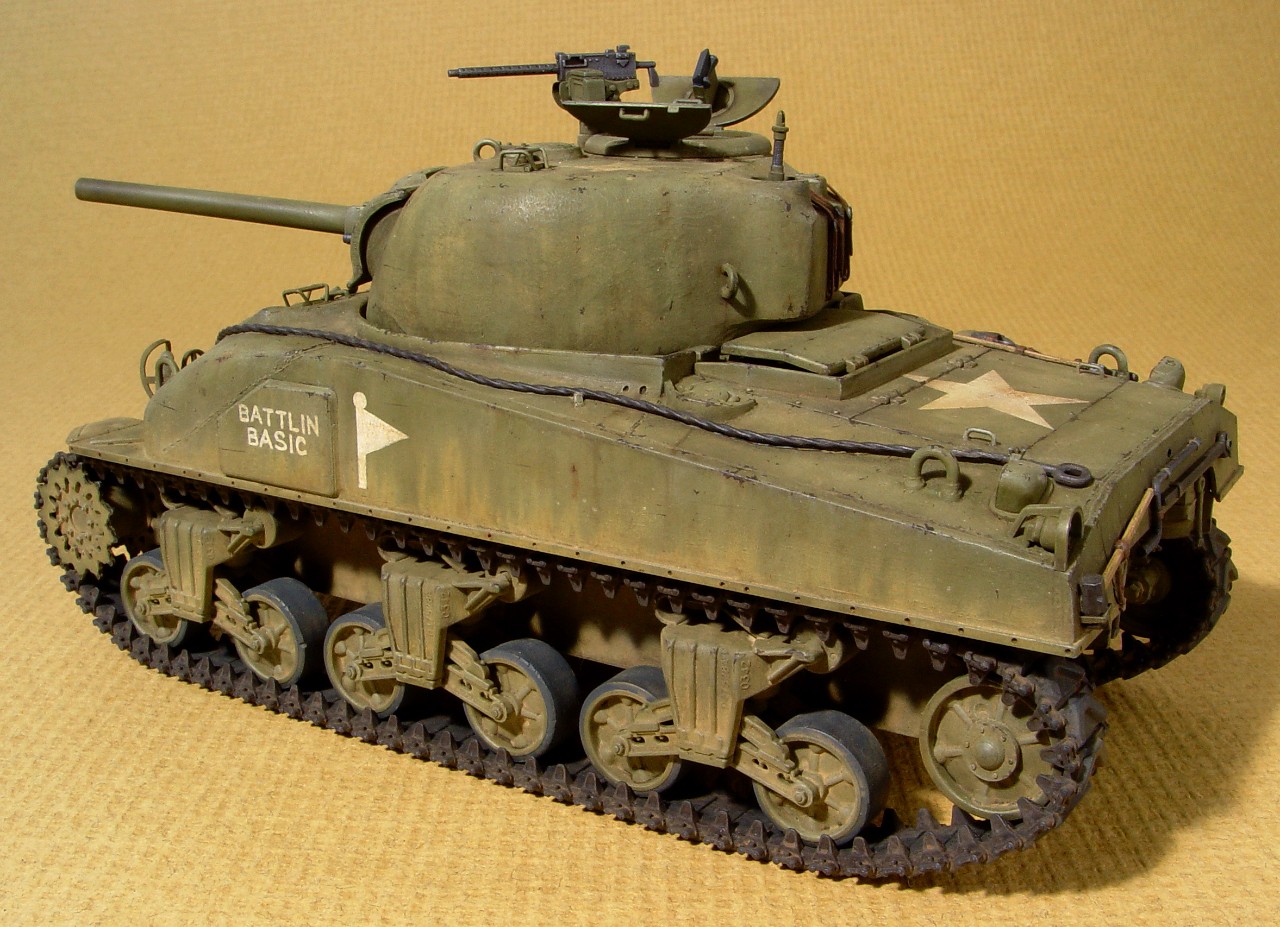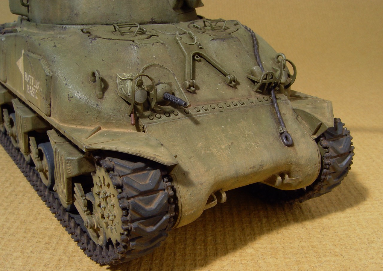 2000년에 완성한 것인데 당시에는 온전한 형태의 M4 Hybrid 킷트는 없어서 몇가지 킷트를 이용하여 짜집기하였습니다. 차체는 드라곤 Firefly I C 차체를 사용하였고, 포탑은 드라곤 75mm 포탑을 약간 수정하여 사용하였습니다. 고무 쉐브론의 T48 궤도는 타미야 M4 키트의 고무제 궤도를 사용하였습니다.