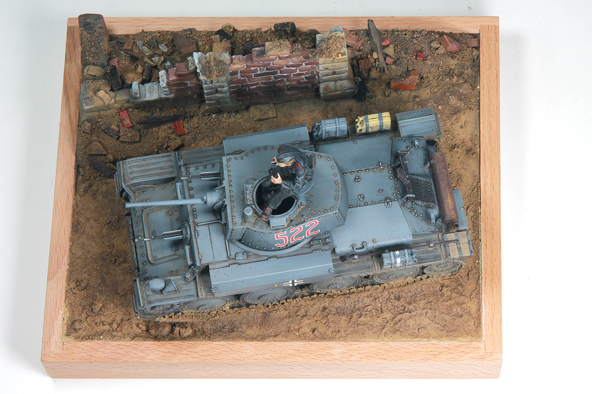 바닥은 석고로 기반을 잡고 AK사 바닥재료 잔여분으로 바르고 바닥색은 험브롤 에나멜 조색과 유화 워싱 그리고 다시 험브롤 드라이 브러슁등으로 마감하였습니다.