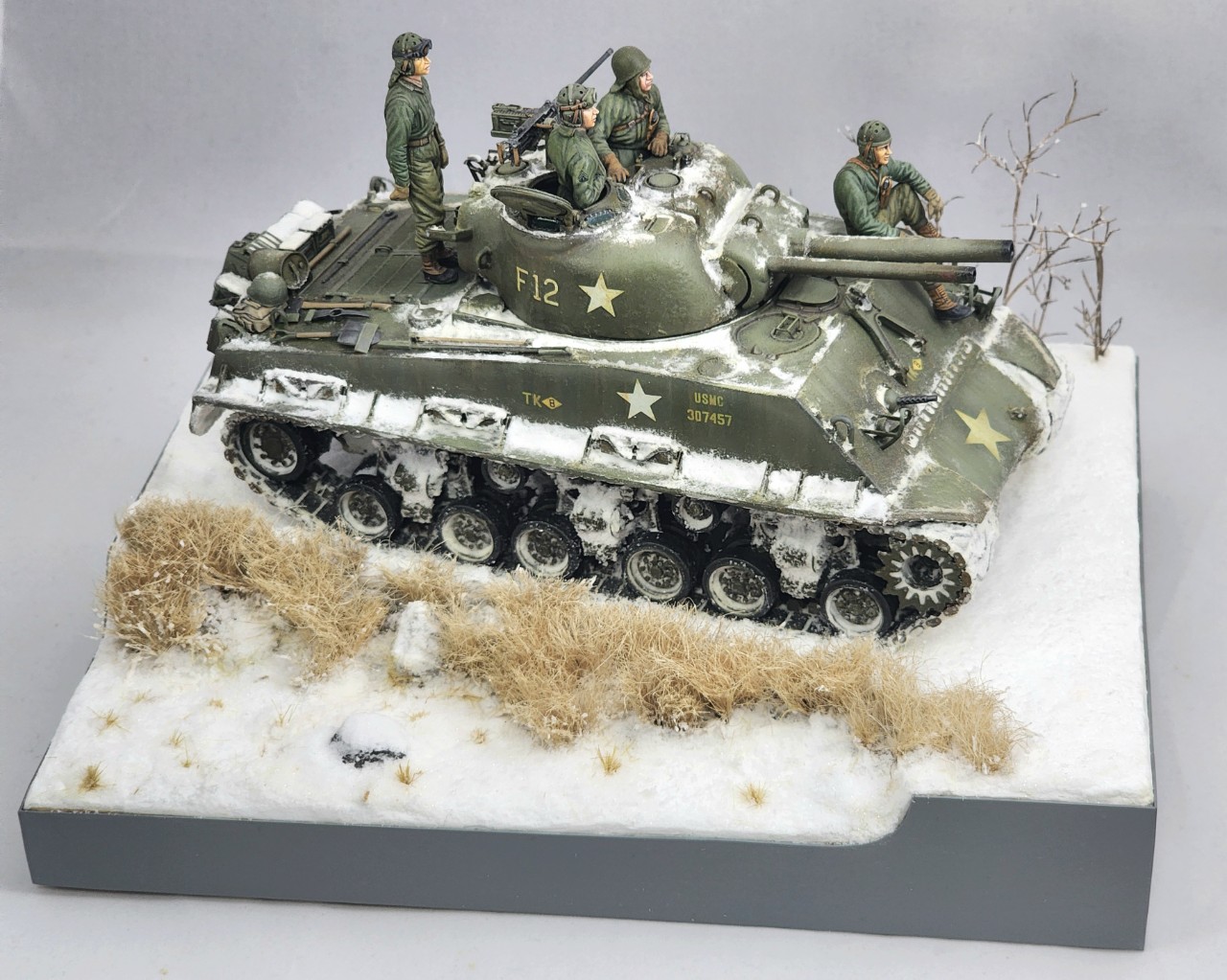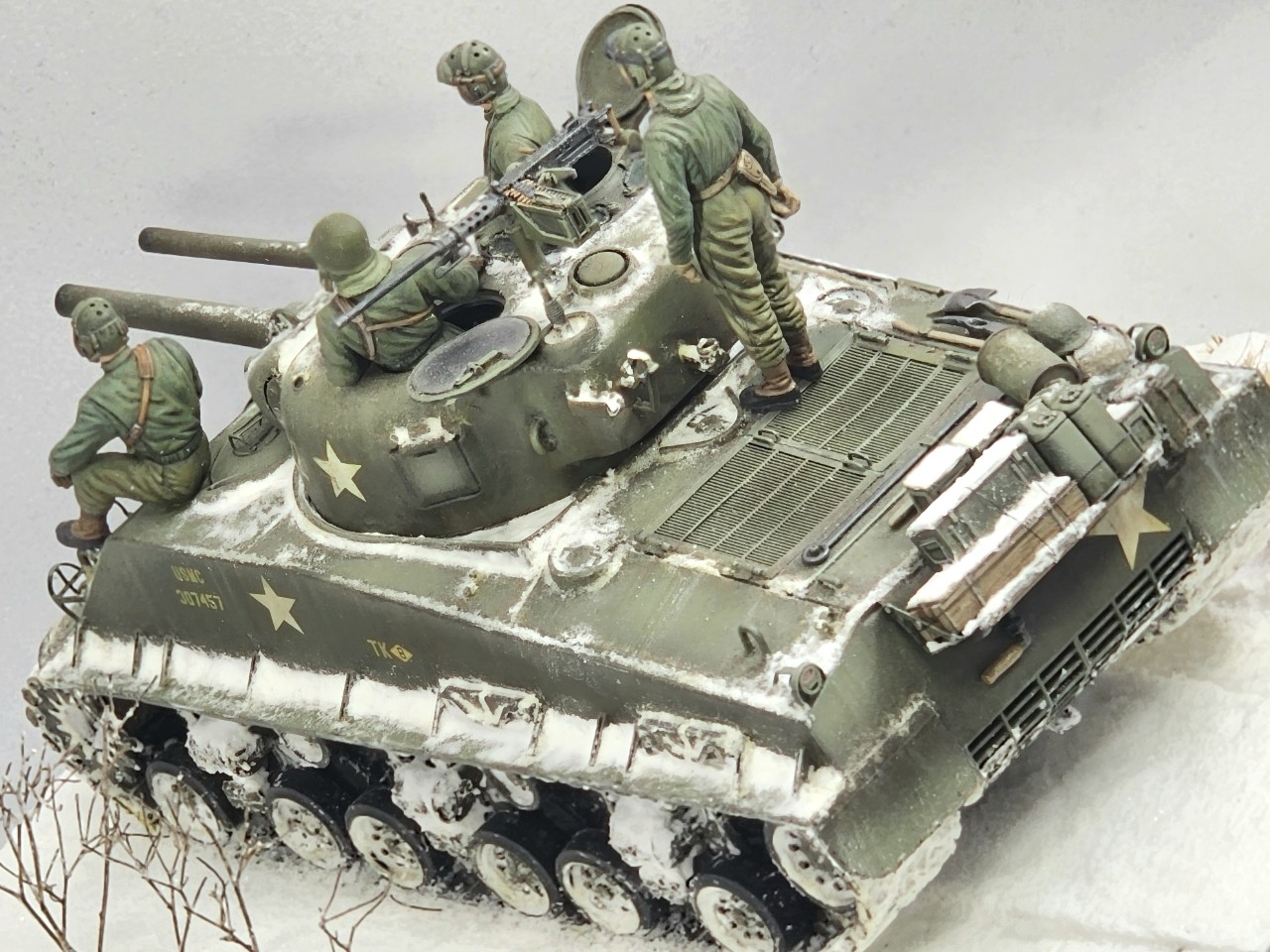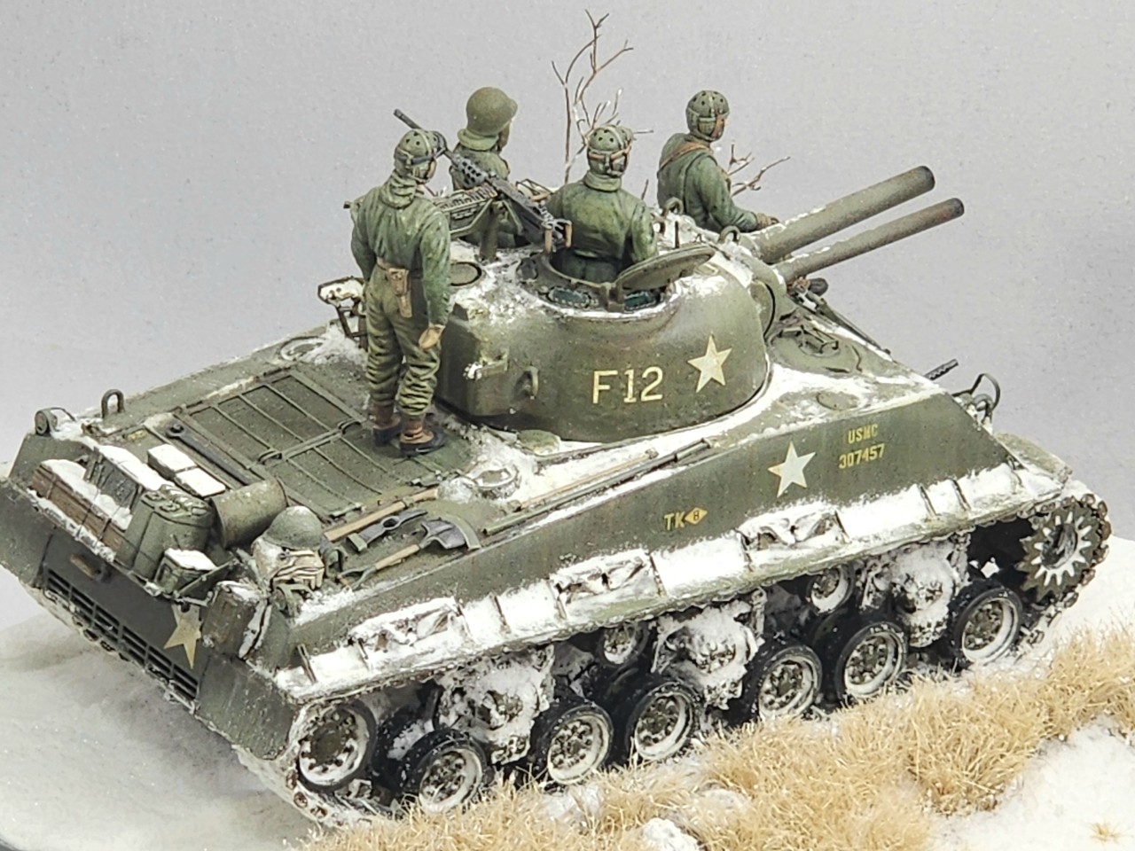 한국 전쟁에 참전한 M4A3전차로 90년대말 모형점에서 당시 신제품이었던 드래곤제 키트를 구매하여 오래 보관하다가 3년전부터 이거저거 보태서 완성하였습니다.