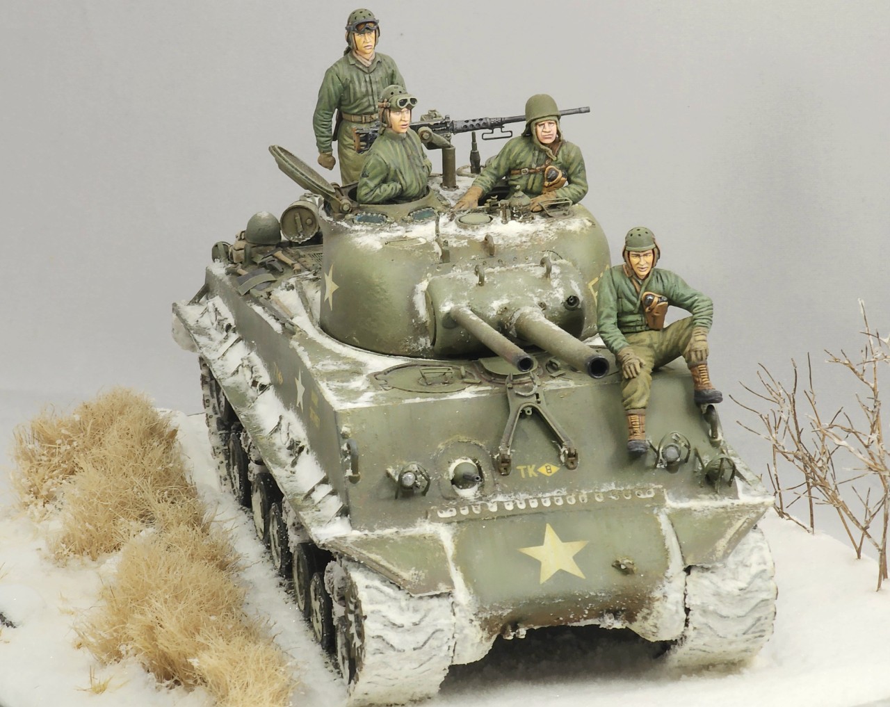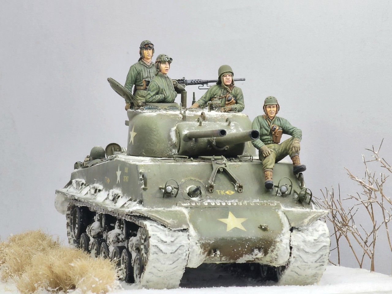 인형은 미니아트제 미군전차병을 태웠습니다. 철모 쓴 인형 빼고 다른 전차병은 Hornet제 head를 적용하였습니다.