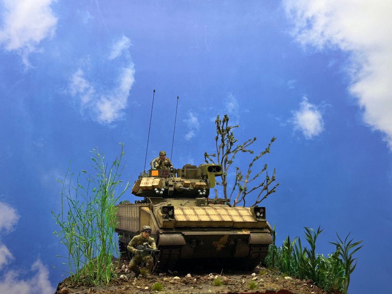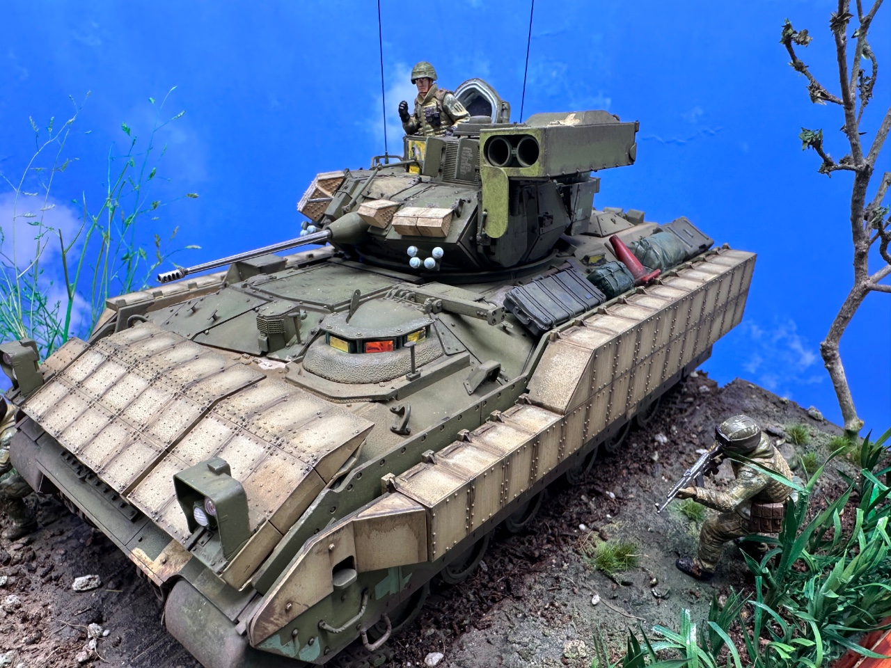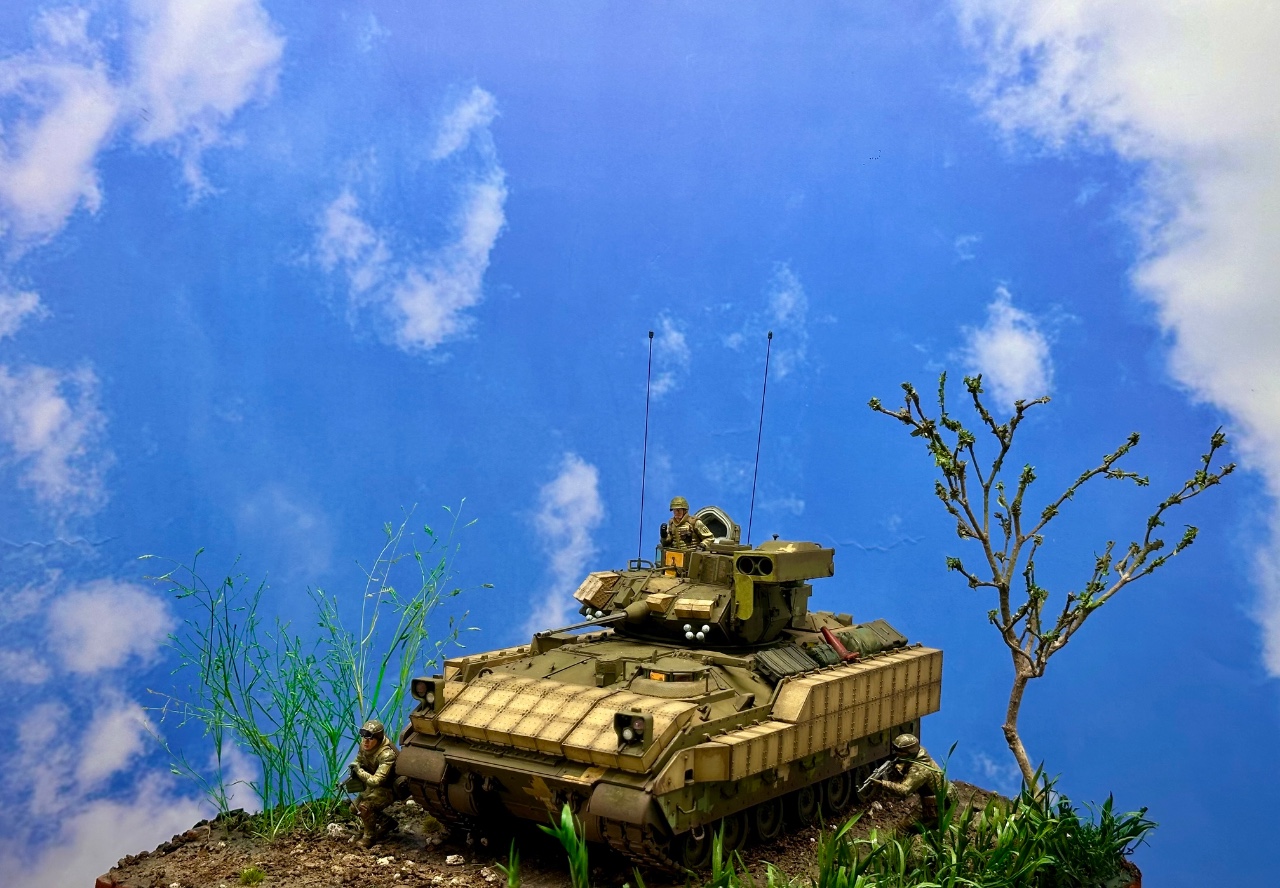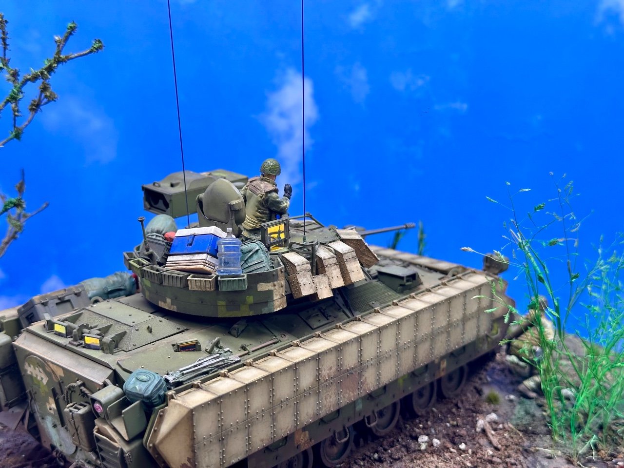매직팩토리 M2A2시리즈중에 우크라이나 버전으로 제작했습니다 도색은 기본가이드대로 도색했고 장비류와 피규어를 현장느낌 나도록 추가 배치했습니다