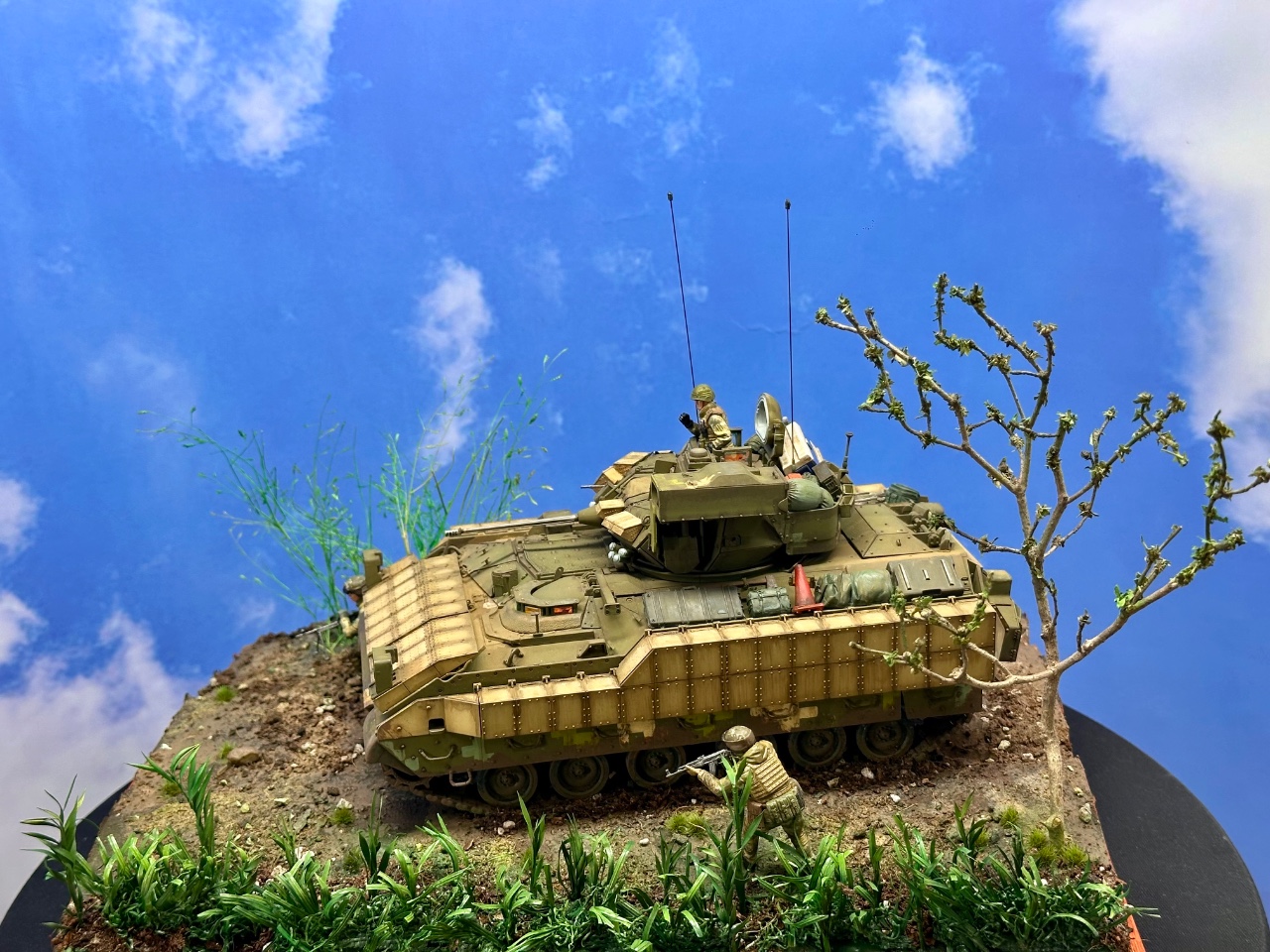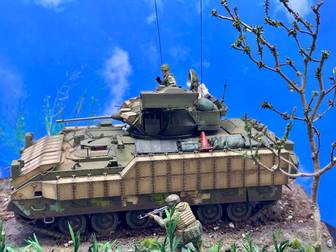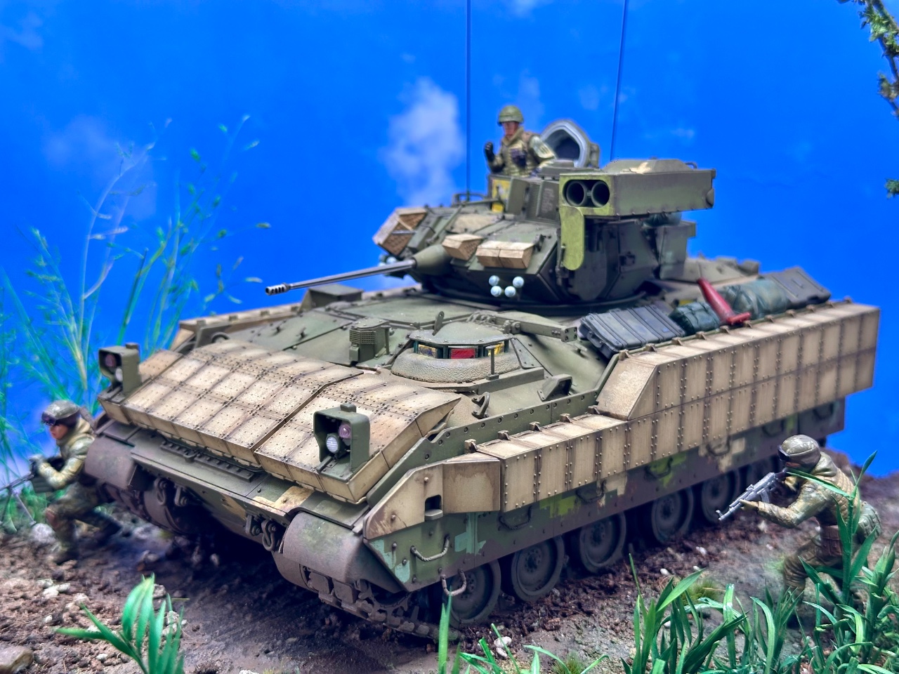매직팩토리 M2A2시리즈중에 우크라이나 버전으로 제작했습니다 도색은 기본가이드대로 도색했고 장비류와 피규어를 현장느낌 나도록 추가 배치했습니다