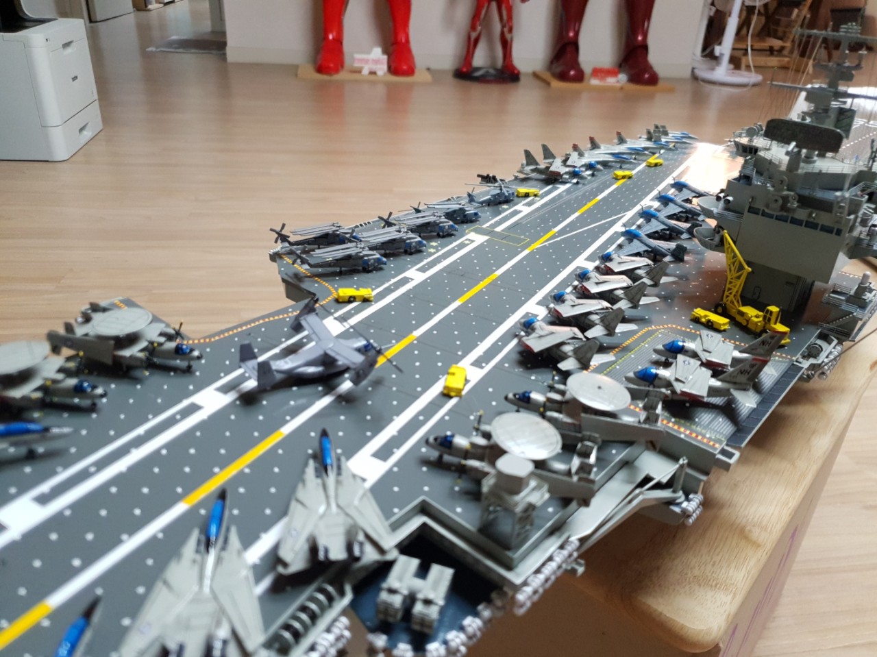 근 두어 달만에 함재기까지 완성이 습니다. 함재기는 46대 작업하여 올려뒀습니다. 기종 고증까지는 못 맞추었네요. 트럼페터제를 주로 사용했고 약간의 타미야 키트 내 함재기를 섞어 사용했습니다.