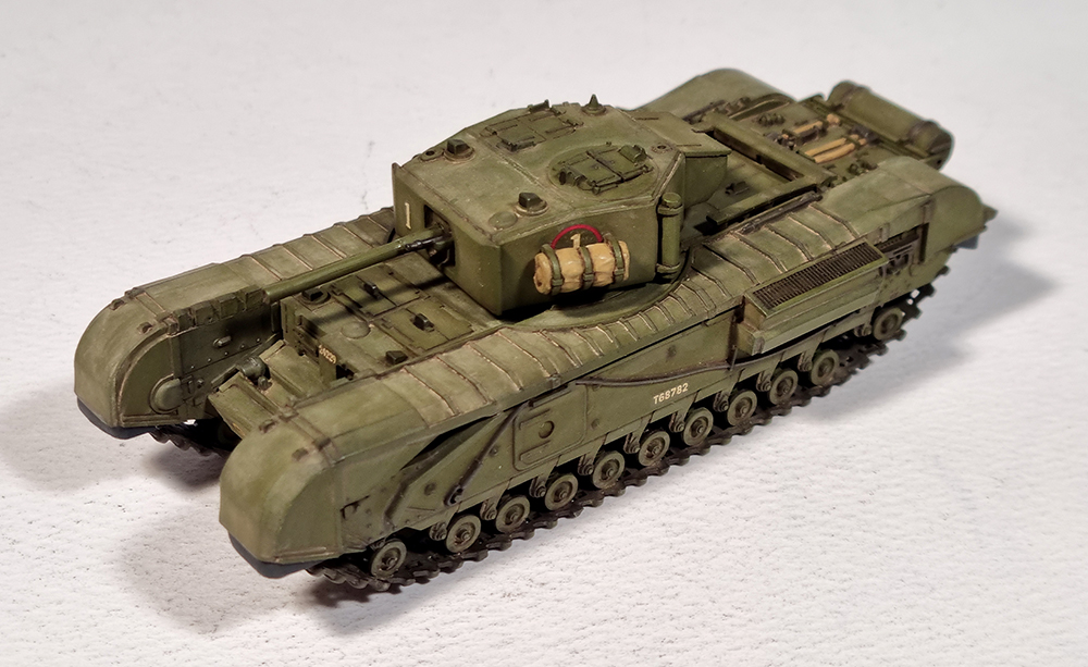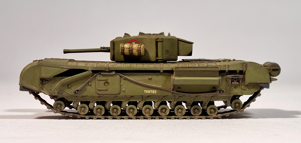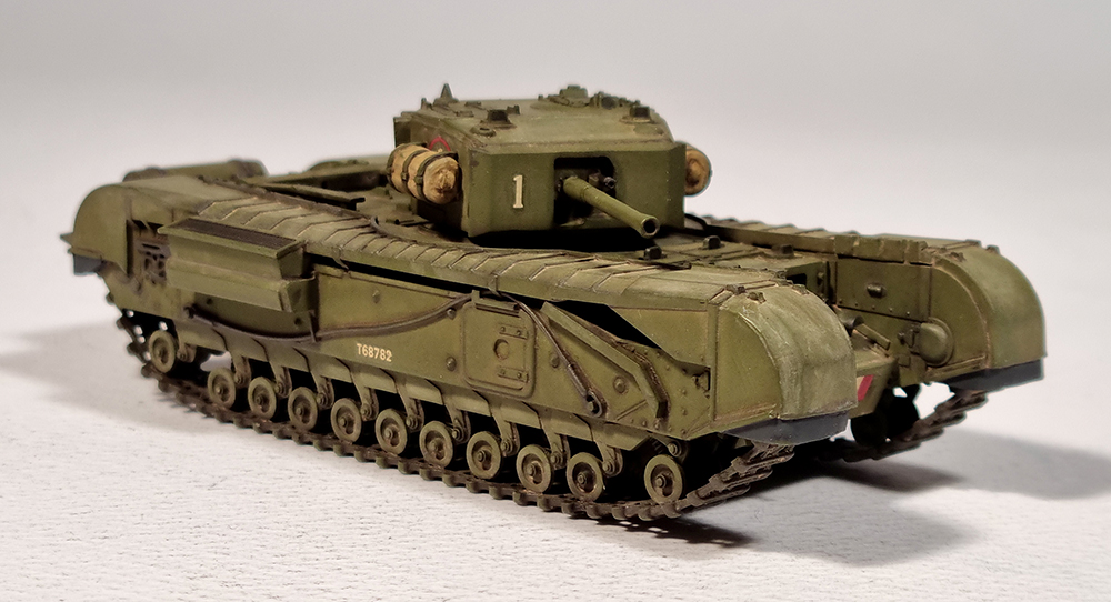 처칠 전차도 족보가 좀 복잡한데, 우리가 가장 많이 접해서 익숙한 1/35 타미야 처칠 전차가 Mk.VII인 것을 봐서 이 Mk.III 처칠 전차는 다소 전기형인 것으로 짐작됩니다. 주포나 포탑이 빈약하고 촌티가 납니다만 각진 포탑 전면부가 박력이 있습니다.
