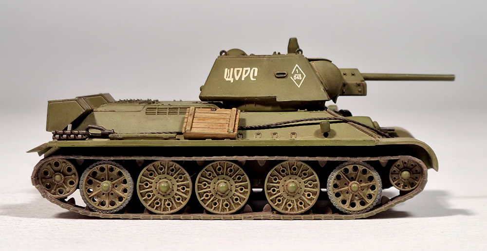 1942년 생산형이라고 합니다. 1/35스케일로는 타미야 제품 T34/76 1943과 동일한 형태로, 두 회사의 생산년도 표기가 차이가 나는 것은 중요한 내용은 아닌 것 같습니다.
