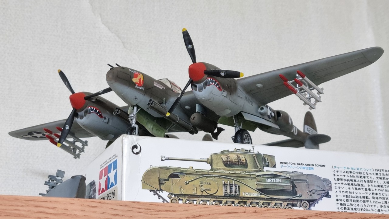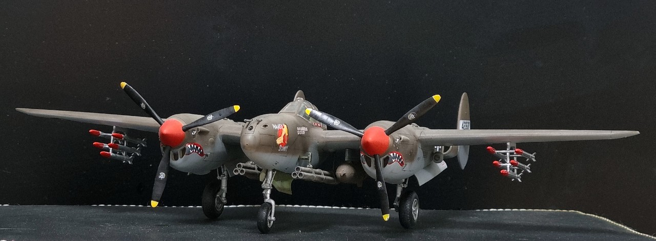 아카데미 P38기체를 좀 다른 느낌으로 만들어 보았습니다. 쌍 샤크 마우스와 노즈아트가 인상적인 기체가 있어 비슷하게 재현해 보았네요.