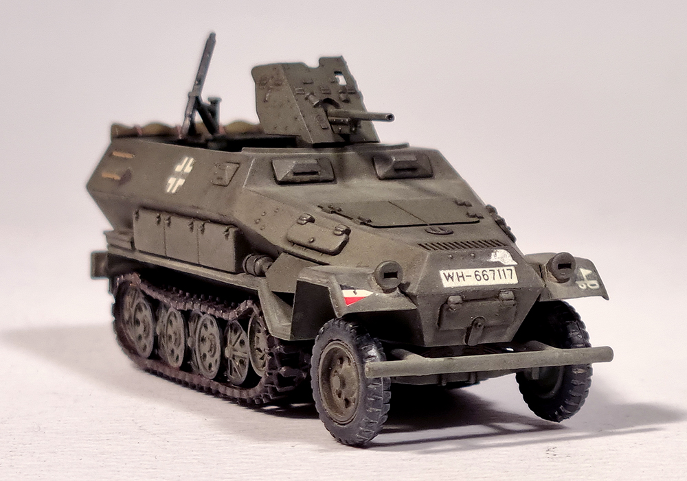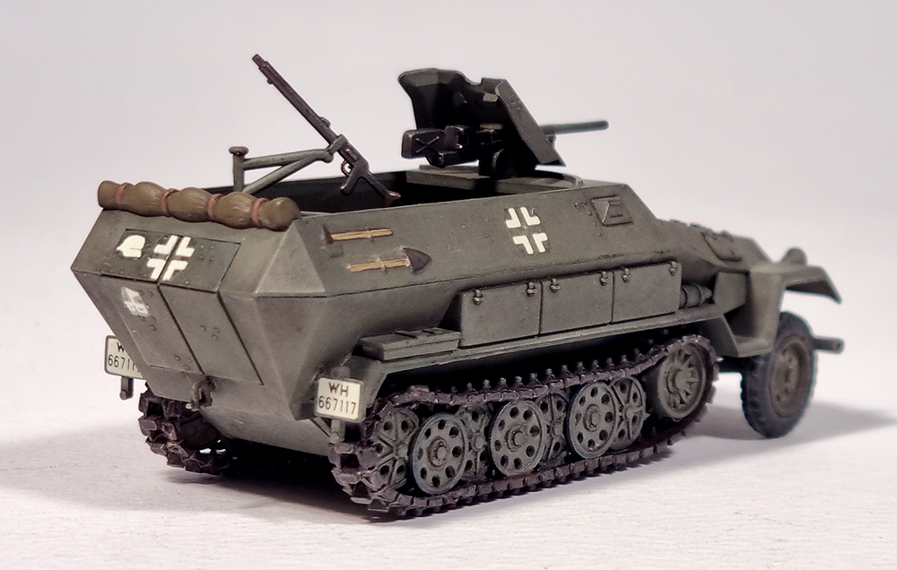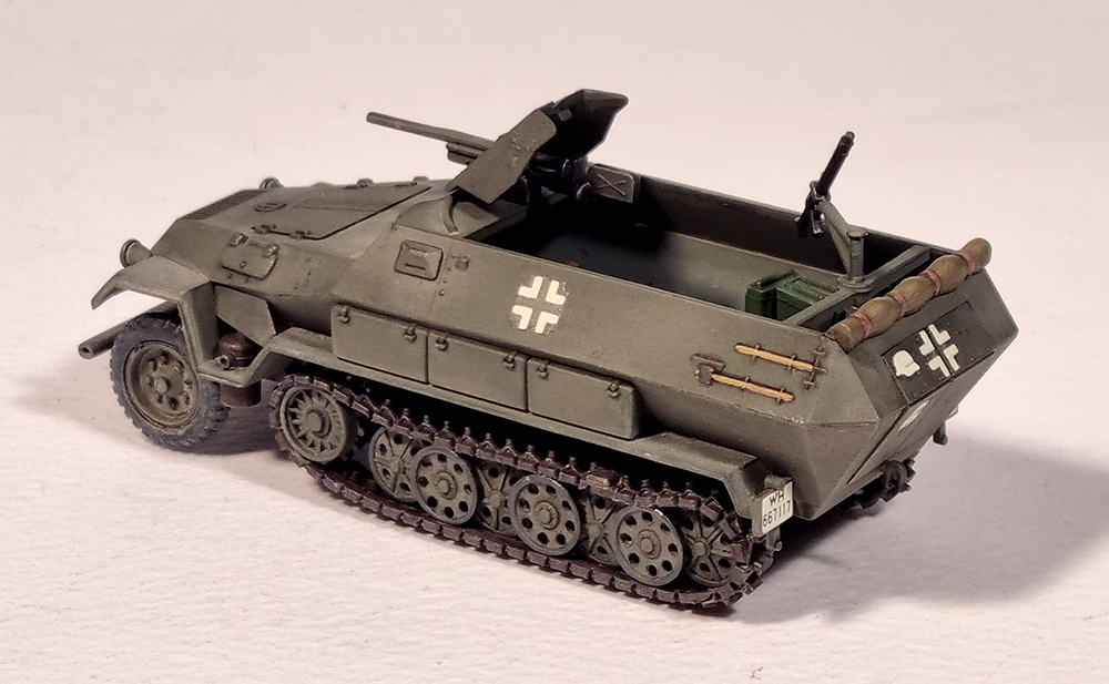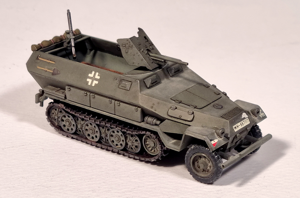 킷트는 1973년에 첫 출시된 것으로 거의 같은 시기에 발매된 같은 스케일의 Matchbox 킷트에 비해 꽤 디테일이 좋습니다. 궤도는 고무제이지만 순간접착제를 사용하면 그럭저럭 형태를 잡을 수 있습니다. 기본형인 sd.kfz. 251/1형도 선택할 수 있고 37mm포탄 케이스도 여러개 포함되어 있어서 당시의 킷트로는 높은 점수를 줄 수 있겠습니다.