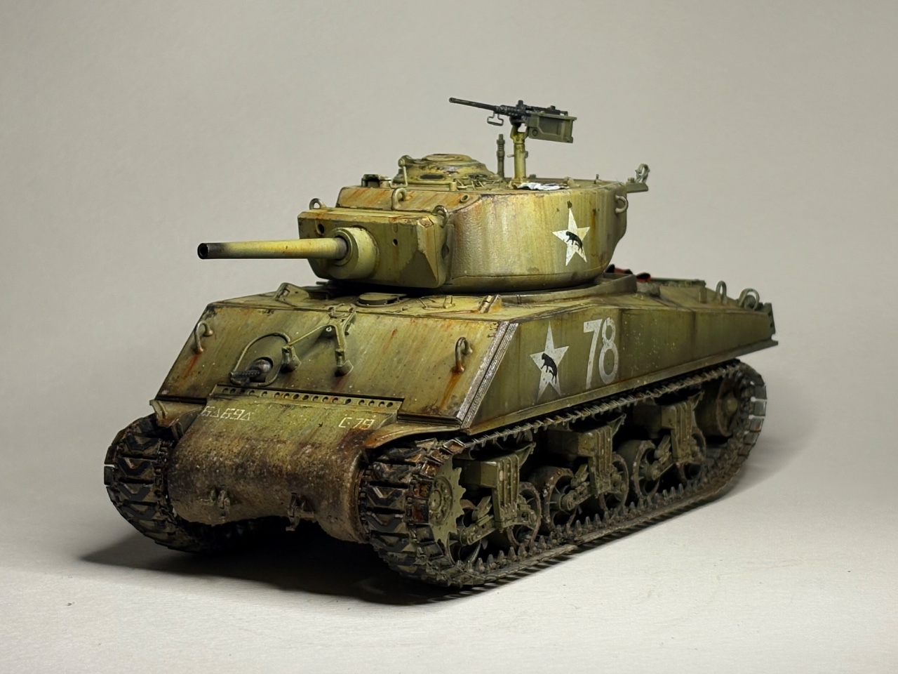 포탑 정면과 차체 앞,옆으로 추가된 장갑들이 기존의 부드러운 인상의 셔먼을 견고하고 각져보이게 만들어줘서 여느 셔먼들과 다른 맛이 있어 더 재미있는 작업이었습니다.