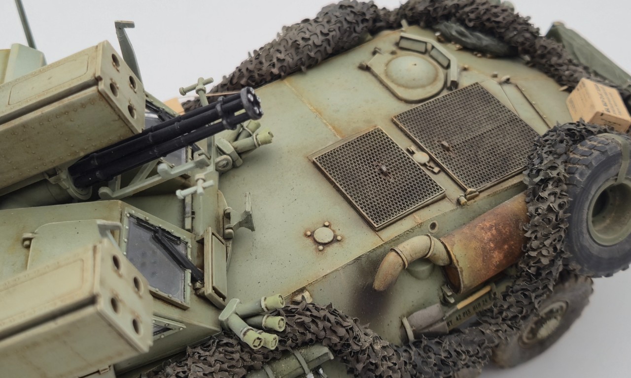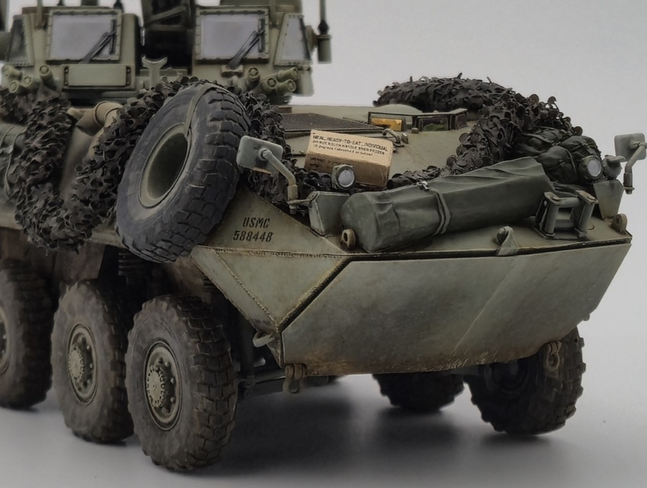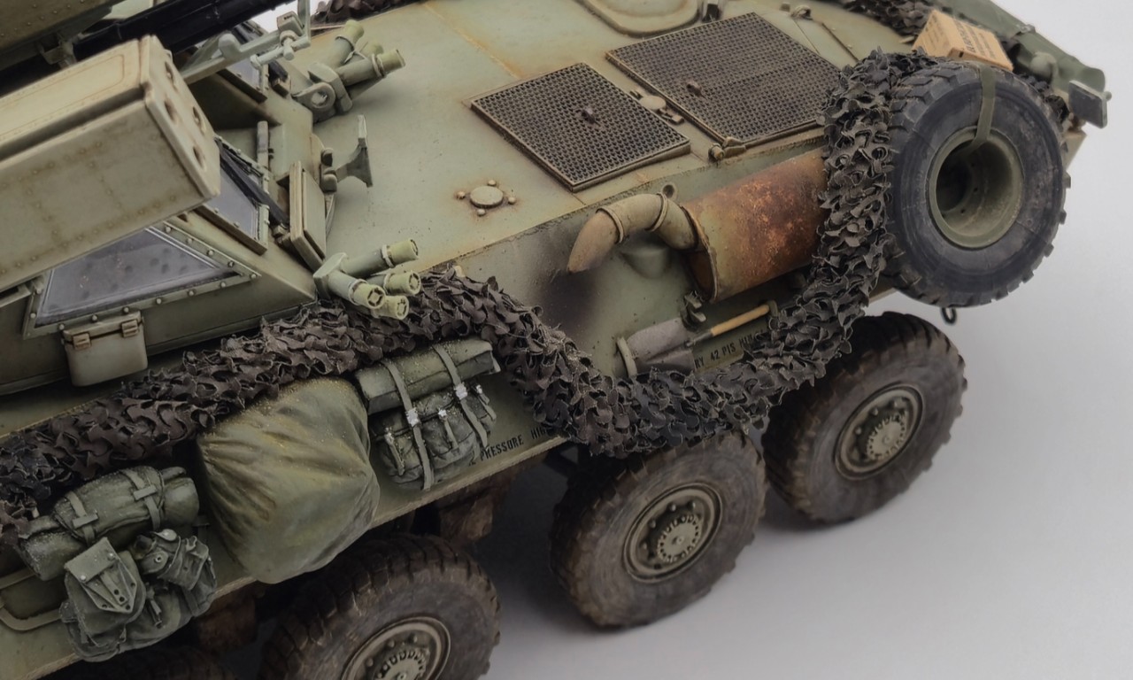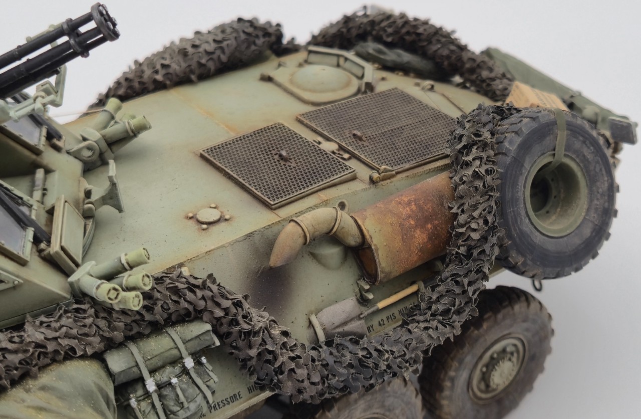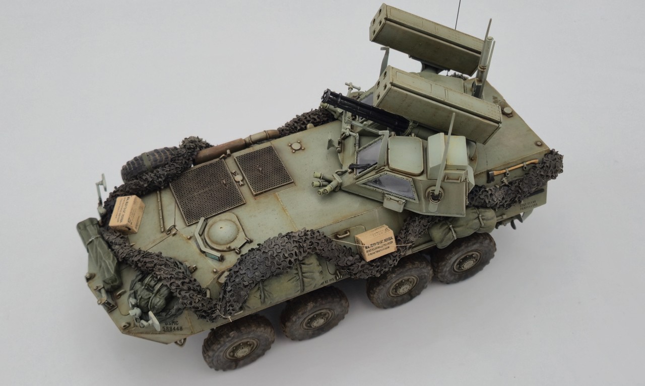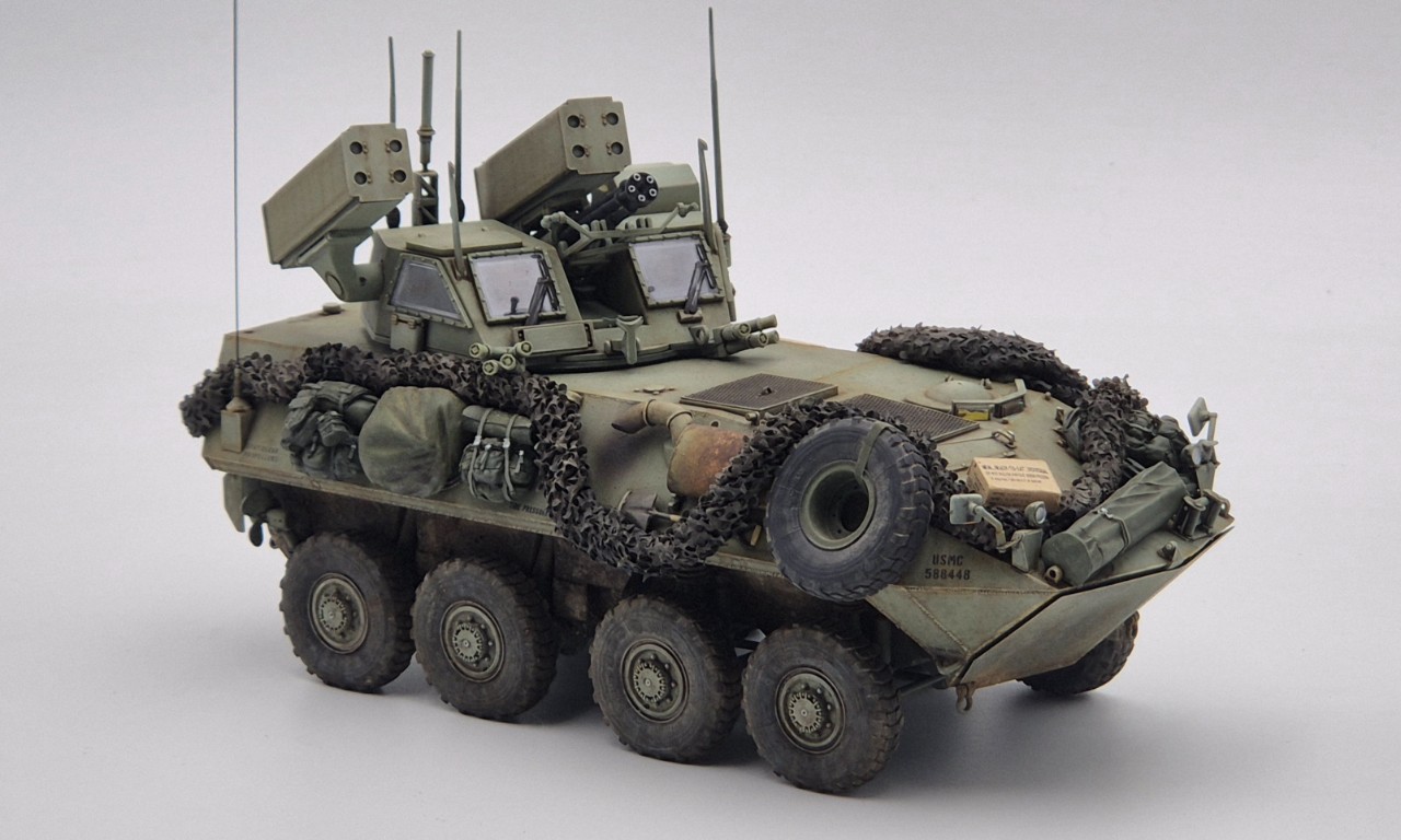 해병대 버전으로 만들었고 연막탄만 다른킷에서 빼와서 달아줬습니다. 레전드의 LAV-25장비품 세트 중 일부를 사용해줬고 위장막은 Tetra model works 제품입니다. 바퀴는 Def.model 제품입니다.