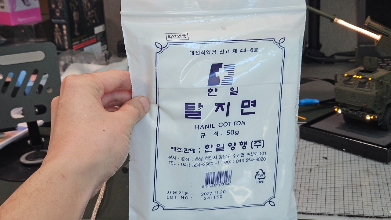 탈지면을 적당히 찢으면서 뭉쳐주고....