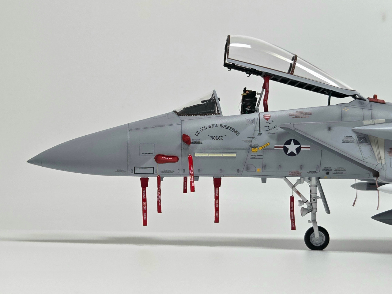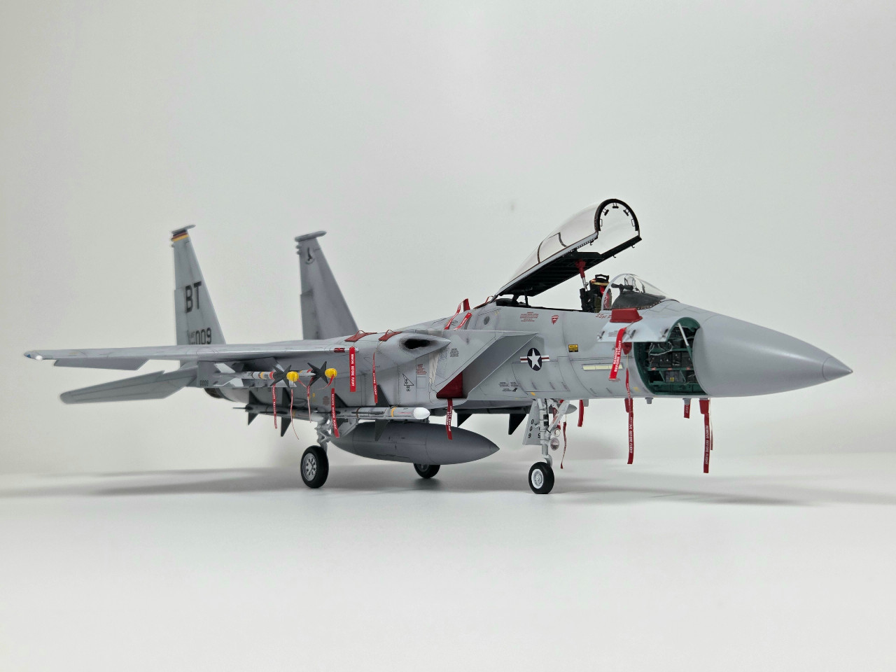 하세가와 1/48 F-15C를 베이스로 GWH의 수직/수평미익을 이식하여 제작하였습니다. 기수 Avionics Bay는 Aires 제품이고, 그 밖의 엔진노즐, 사출좌석 등은 DEF사의 3D 프린팅 별매품을 사용하였습니다.