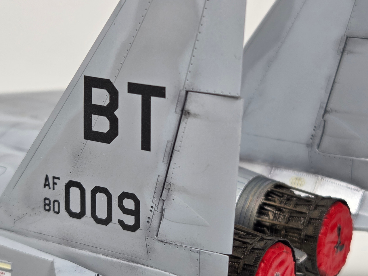 사실 제작 중간 고이케 시게오의 하세가와 1/48 F-15C 박스아트에 그려진 제1전술전투비행단 ("FF")의 F-15C로 제작할까도 했지만, 키트에 포함된 황변데칼은 복구불가 수준이었습니다. (여담이지만 어릴적 처음본 고이케 시게오의 F-15C 박스아트는 충격 그 자체였습니다.) 제공형 F-15C가 원래 심심한 도장이기도 하지만, NATO 최전방 공군기지의 엄체호에서 대기하는 "BT"의 F-15C도 실전적 느낌이 들면서도 나쁘지 않아보입니다.