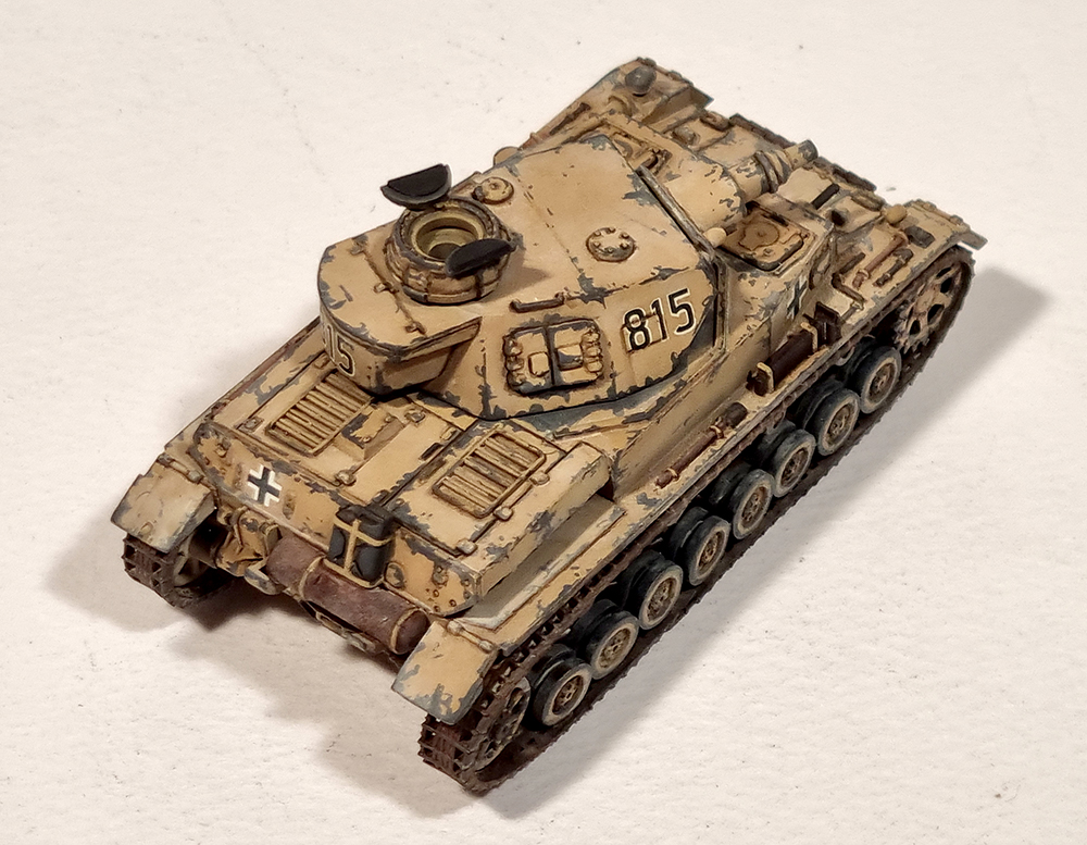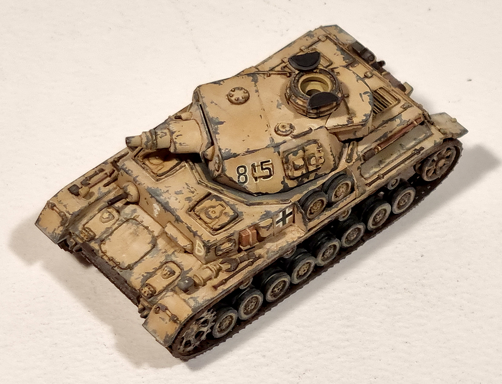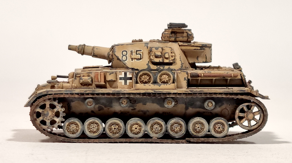 사막색으로 칠할 때 1/35 스케일인 경우에는 기본색으로 짙은 회색을 먼저 칠하고 사막색을 덧칠한 후 사막색을 벗겨내는데 반해 1/72나 1/76 스케일인 경우에는 반대로 사막색을 먼저 칠한 후 짙은 회색을 칩핑하듯이 세필로 그려 넣는 방법으로 칠하고 있습니다.