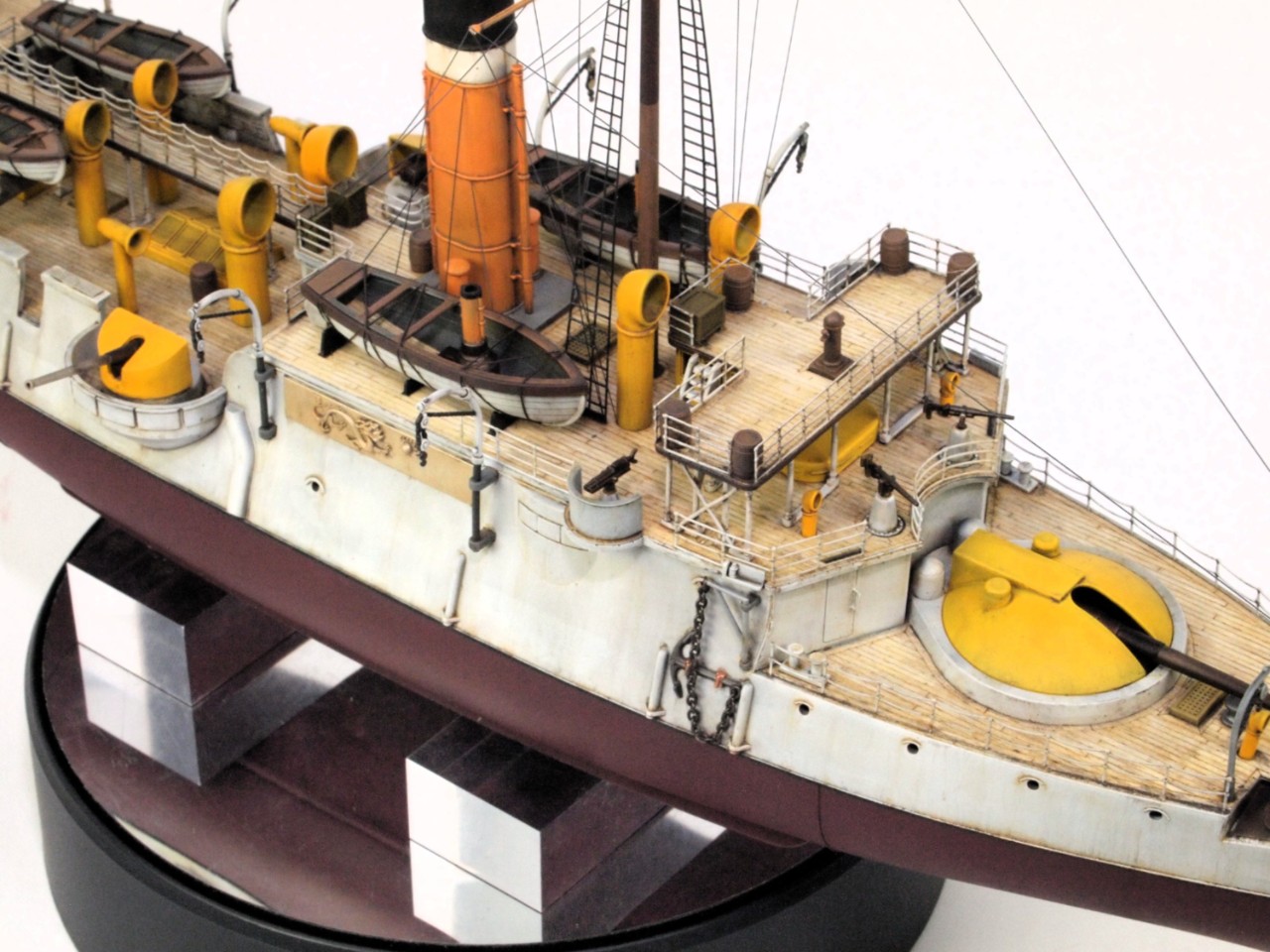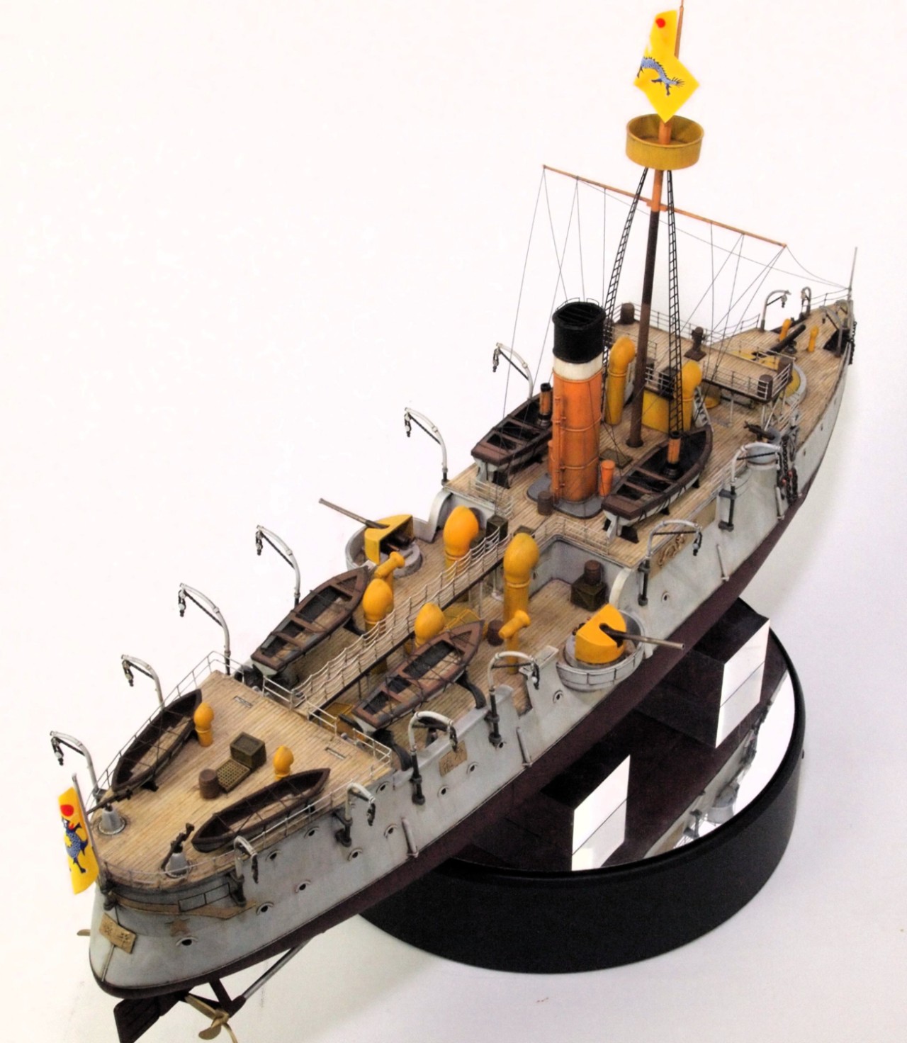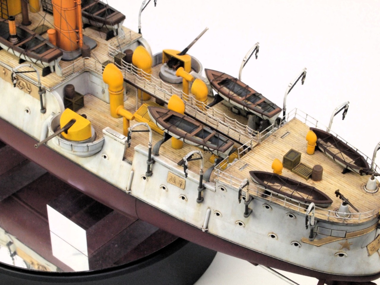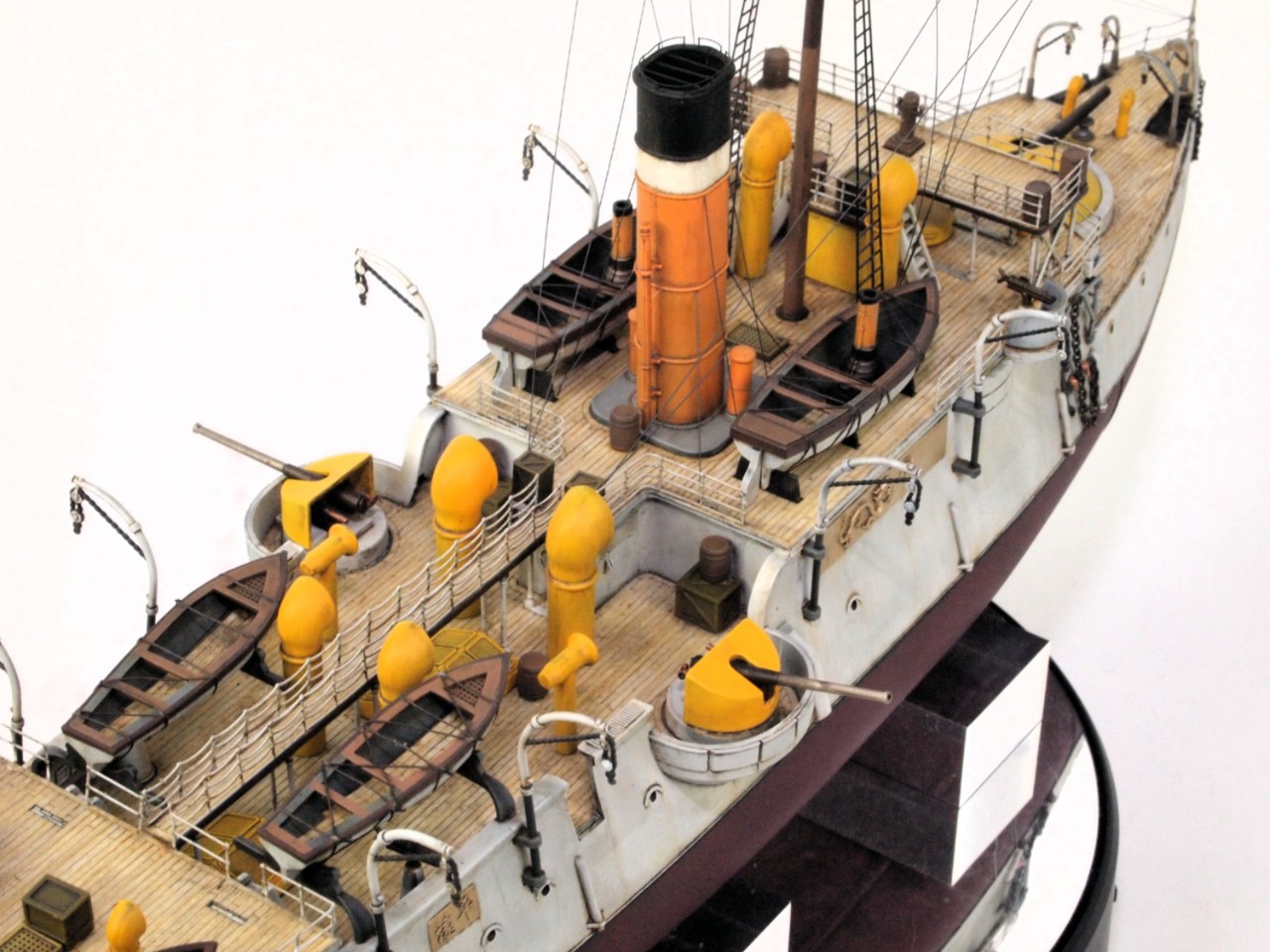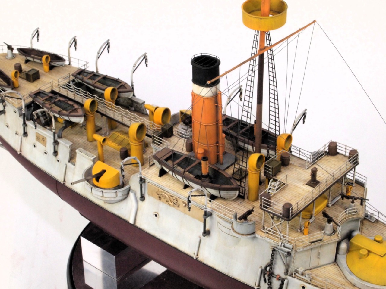 선체는 밝은 회색을 사용했고, 상부 구조물은 노랑색과 주황색을 섞어 사용했어요.