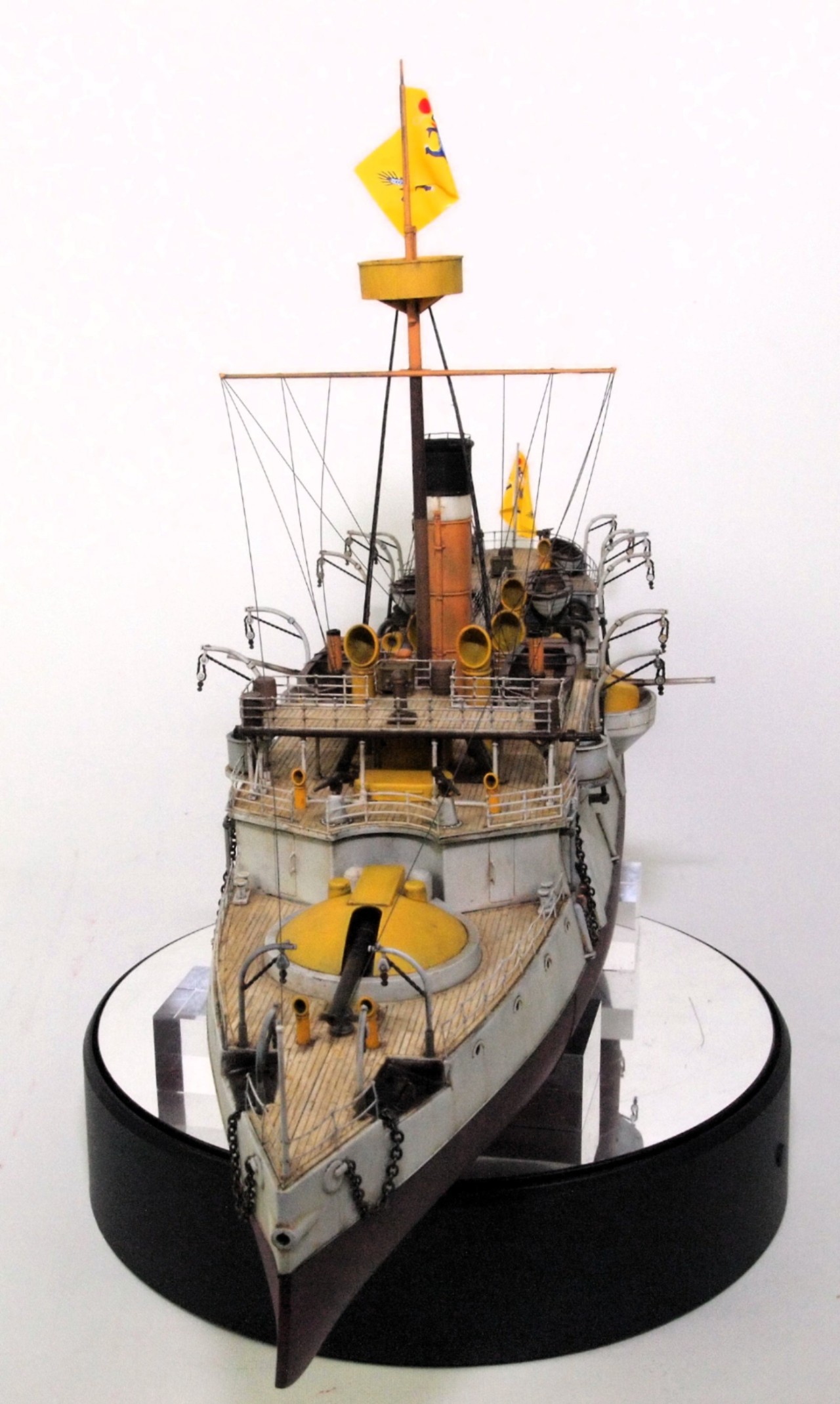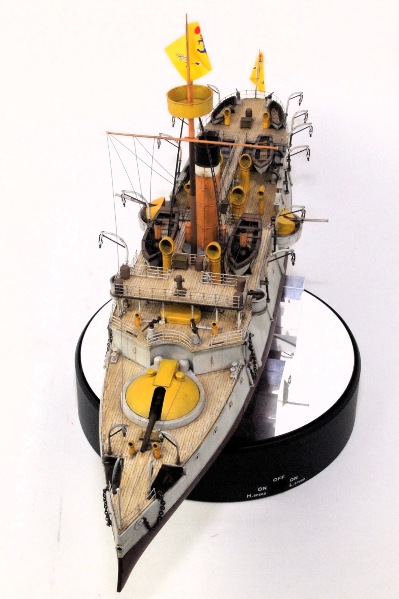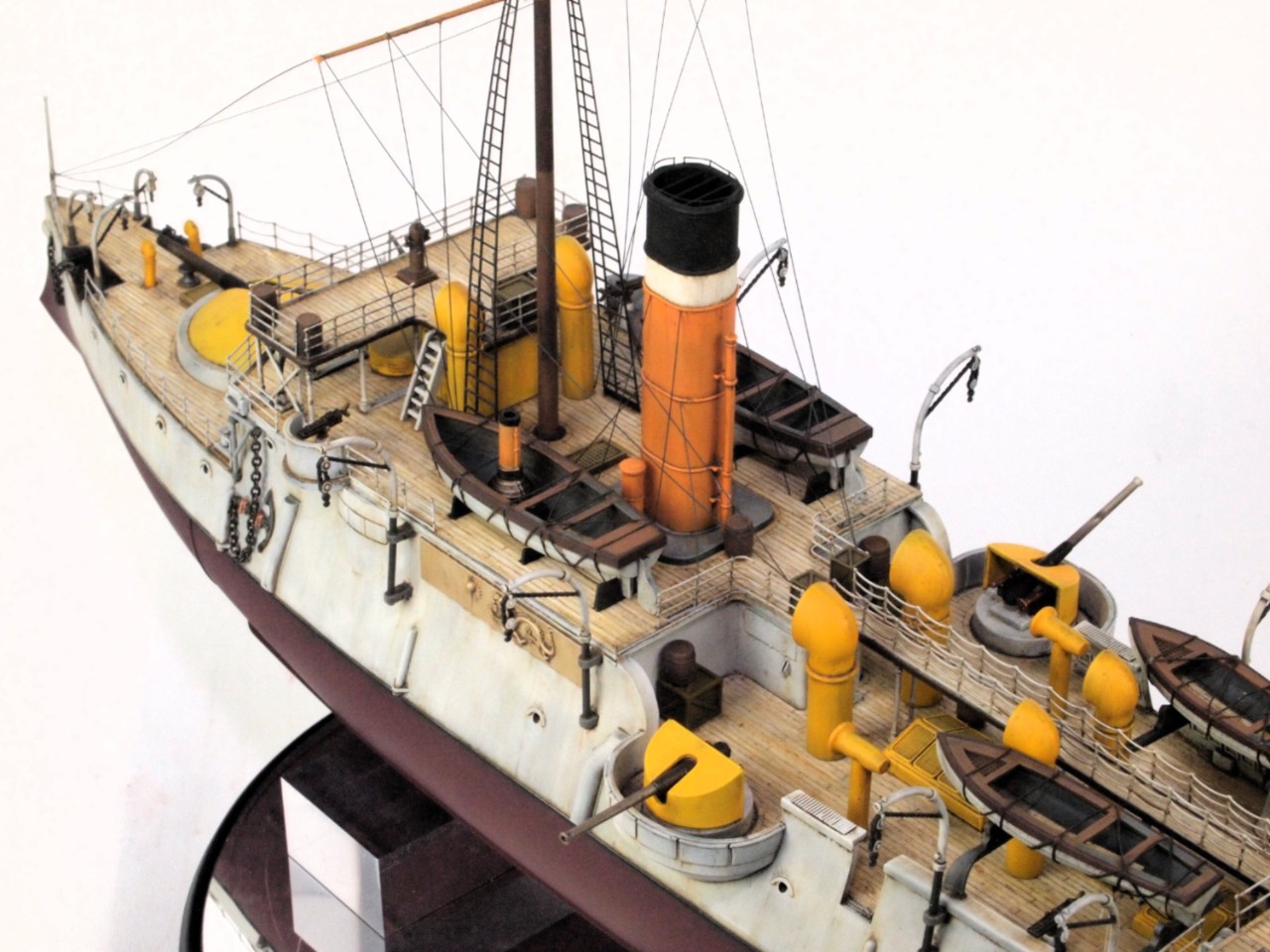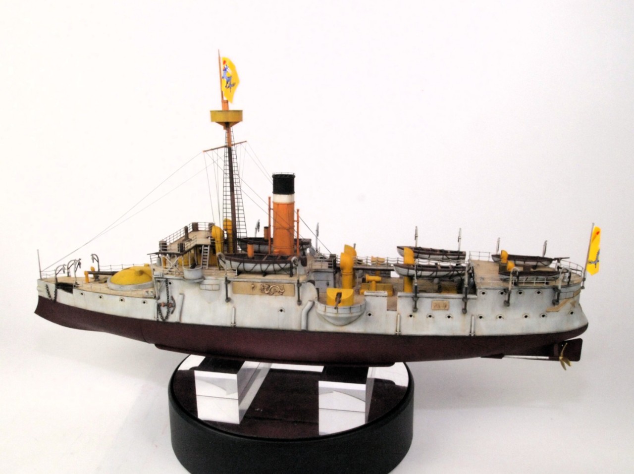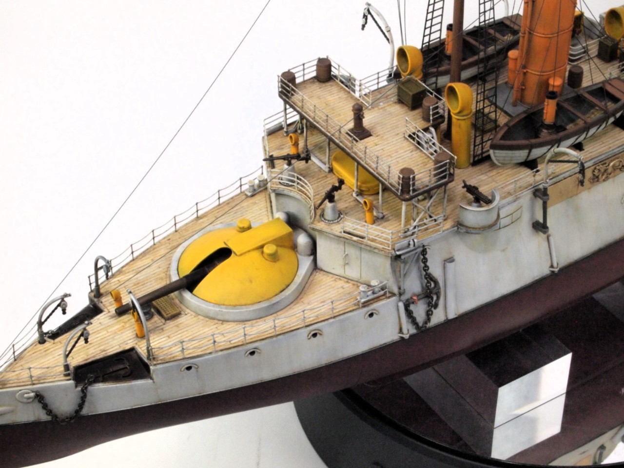 선체는 밝은 회색을 사용했고, 상부 구조물은 노랑색과 주황색을 섞어 사용했어요.