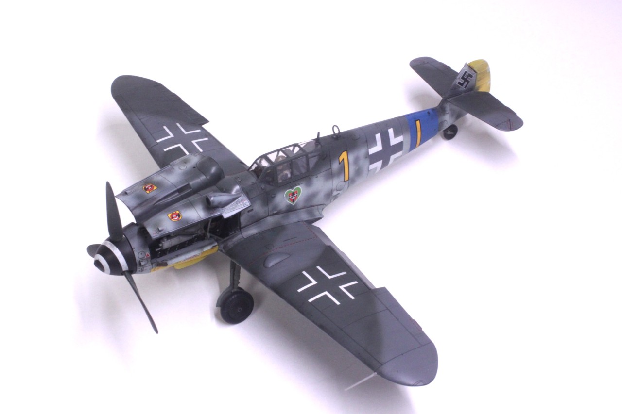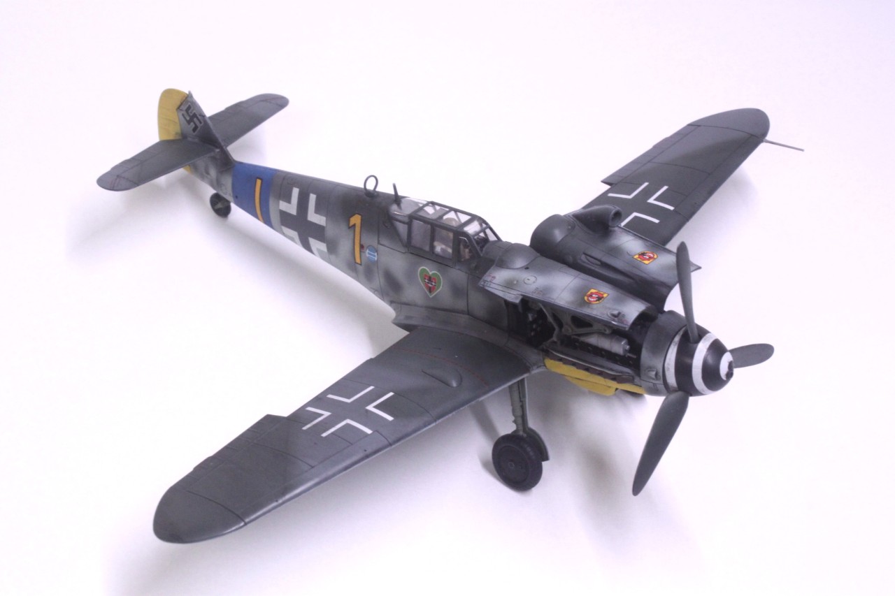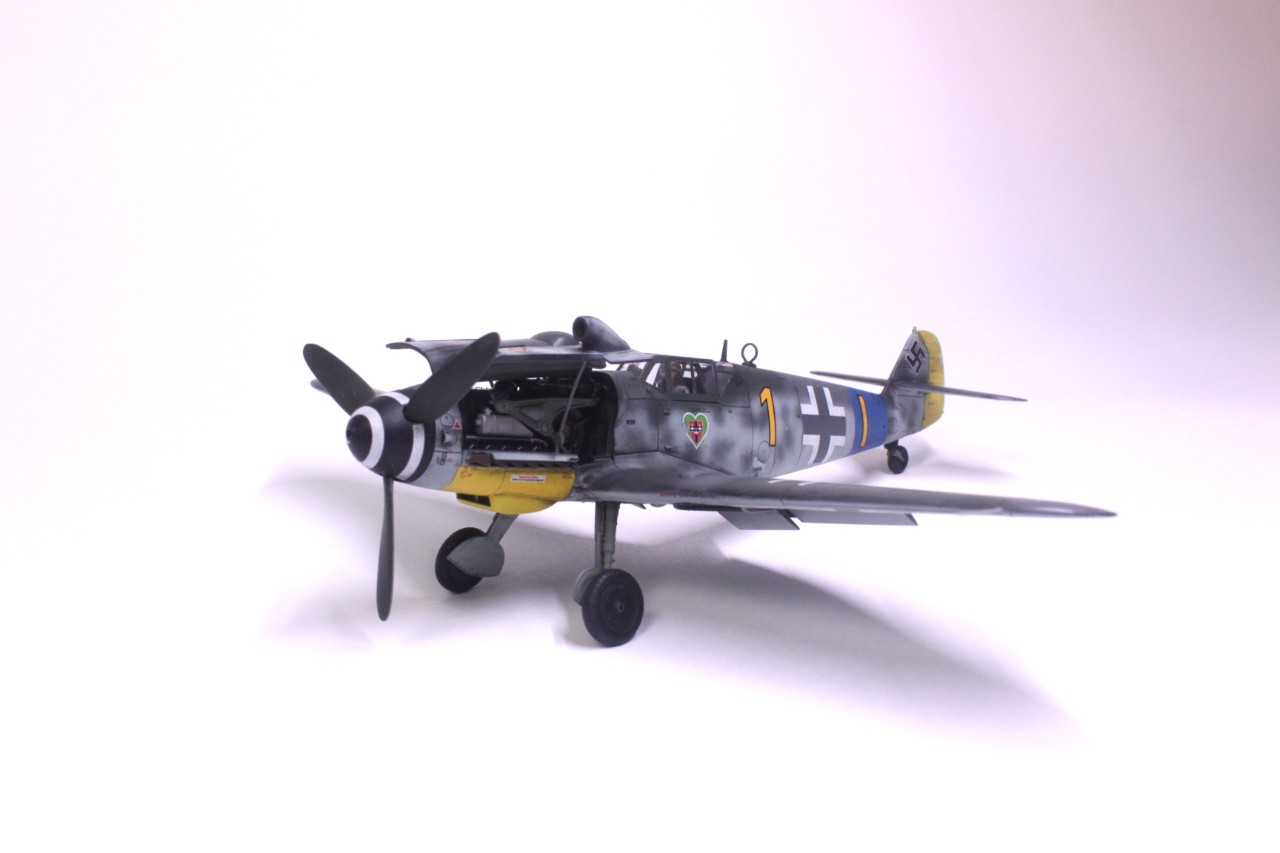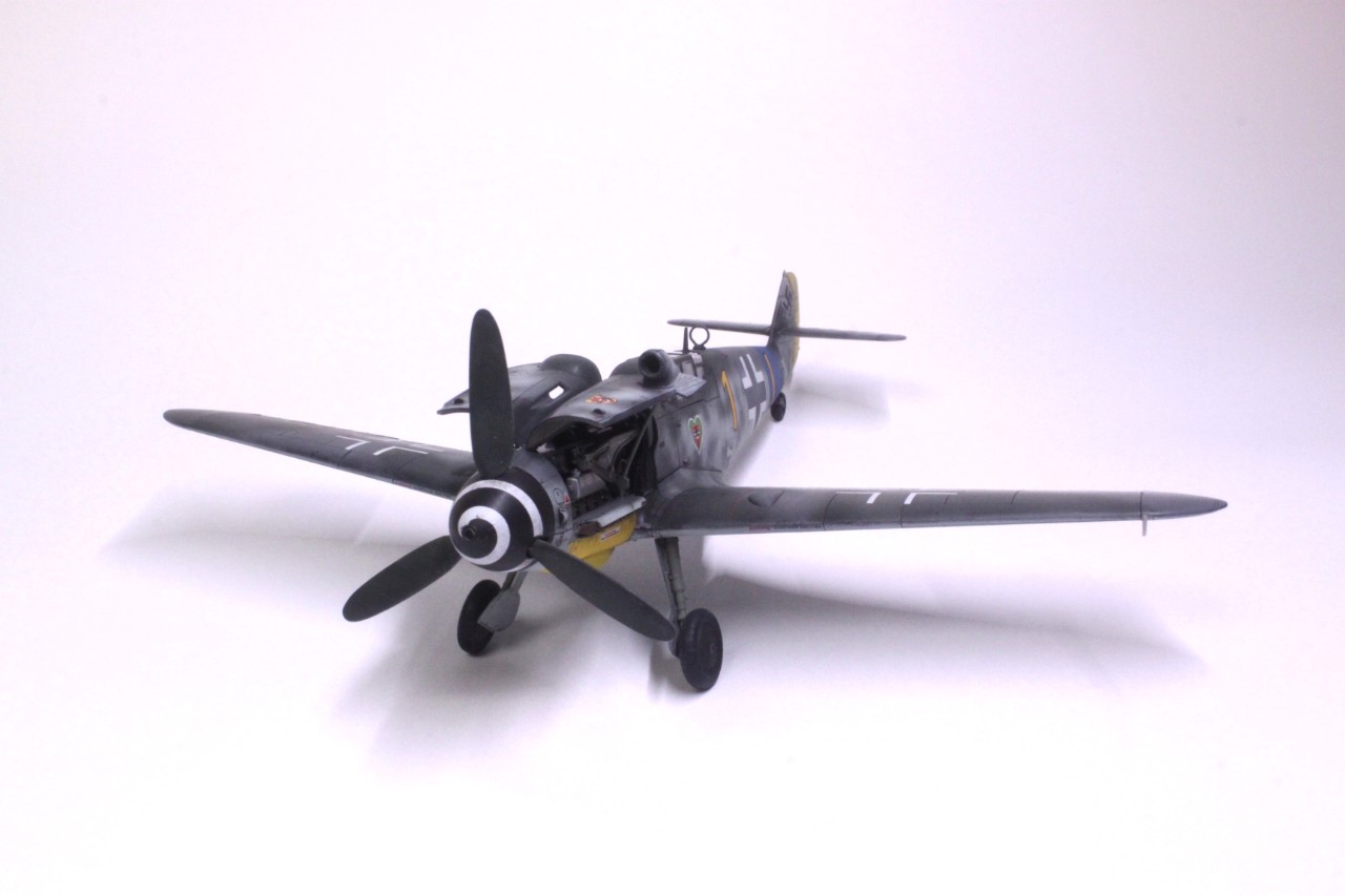 안녕하세요, 처음 인사드리는 사이퍼입니다. MMZ에서도 활동을 해보려고 가입만 한 후 계속 구경만 하다가 처음으로 작품 올려봅니다. 킷은 타미야의 Bf109 G-6입니다. 조립성이 매우 우수해서 불필요한 몰드를 지우는것 외에는 퍼티조차 사용하지 않았습니다. 제작에 어떠한 어려움도 없었고 마스킹 실까지 넣어줘서 너무 편했습니다. 별매는 따로 사용하지 않고 스트레이트로 완성했습니다. 디테일도 리벳이 거의 없는 것을 제외하면 상당히 좋고 특히 엔진이 재현돼 있는데다 자석으로 부품 탈부착까지 가능한게 충격이었습니다. 도색은 독일 루프트바페 특유의 위장패턴을 부족한 실력으로 재현하려다 보니 어설퍼졌습니다. 주익의 위장도 원래 마스킹으로 했다가 부자연스러워서 프리핸드로 덧댔더니 이상하네요. 도색에 까짐도 많습니다. 초보의 실수 정도로 귀엽게 봐주셨으면 합니다^^;