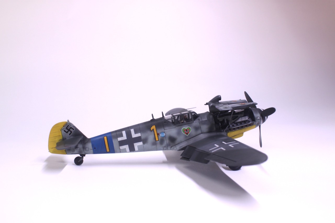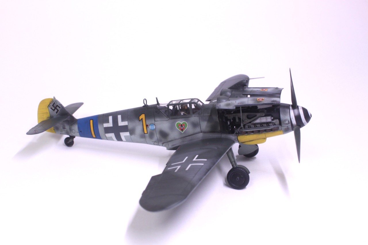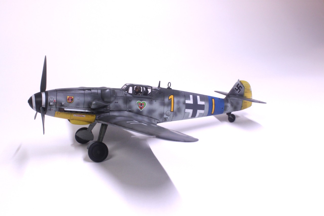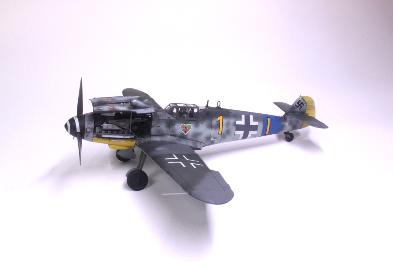 안녕하세요, 처음 인사드리는 사이퍼입니다. MMZ에서도 활동을 해보려고 가입만 한 후 계속 구경만 하다가 처음으로 작품 올려봅니다. 킷은 타미야의 Bf109 G-6입니다. 조립성이 매우 우수해서 불필요한 몰드를 지우는것 외에는 퍼티조차 사용하지 않았습니다. 제작에 어떠한 어려움도 없었고 마스킹 실까지 넣어줘서 너무 편했습니다. 별매는 따로 사용하지 않고 스트레이트로 완성했습니다. 디테일도 리벳이 거의 없는 것을 제외하면 상당히 좋고 특히 엔진이 재현돼 있는데다 자석으로 부품 탈부착까지 가능한게 충격이었습니다. 도색은 독일 루프트바페 특유의 위장패턴을 부족한 실력으로 재현하려다 보니 어설퍼졌습니다. 주익의 위장도 원래 마스킹으로 했다가 부자연스러워서 프리핸드로 덧댔더니 이상하네요. 도색에 까짐도 많습니다. 초보의 실수 정도로 귀엽게 봐주셨으면 합니다^^;