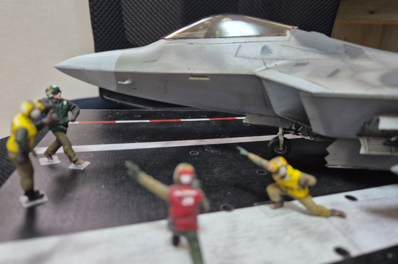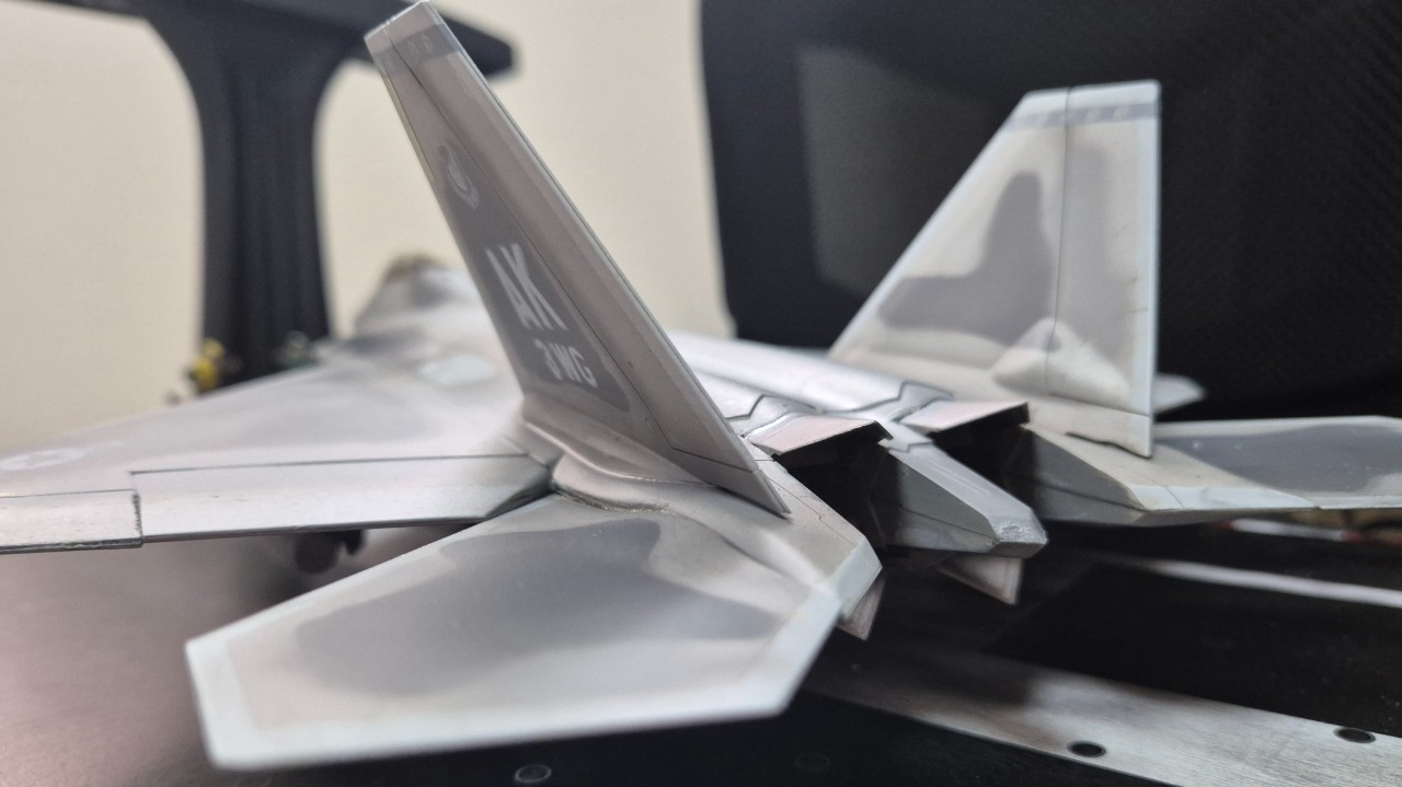 1/48 아카데미 랩터를 불금, 주말동안 밤을 하얗게 지세웠습니다. 역시 에어브러쉬 세팅하는게 귀찮지 맘만 먹음 하루네요. 위장무늬에다 기본배색은 뉴트럴그레이인데 기체가 1/48로 커지니 밋밋해져서 같은 기본색이라도 맥스식응용 조금씩 채도가 다른색을 겹겹이 올렸습니다. 덕분에 무광마감 올려도 채도에 의한 볼륨감이 사는군요. 직접만드는 보람을 제외하고 비싼 고가의 완성품 콜렉터 노릇만 했던게 후회됩니다 ㅠㅠ