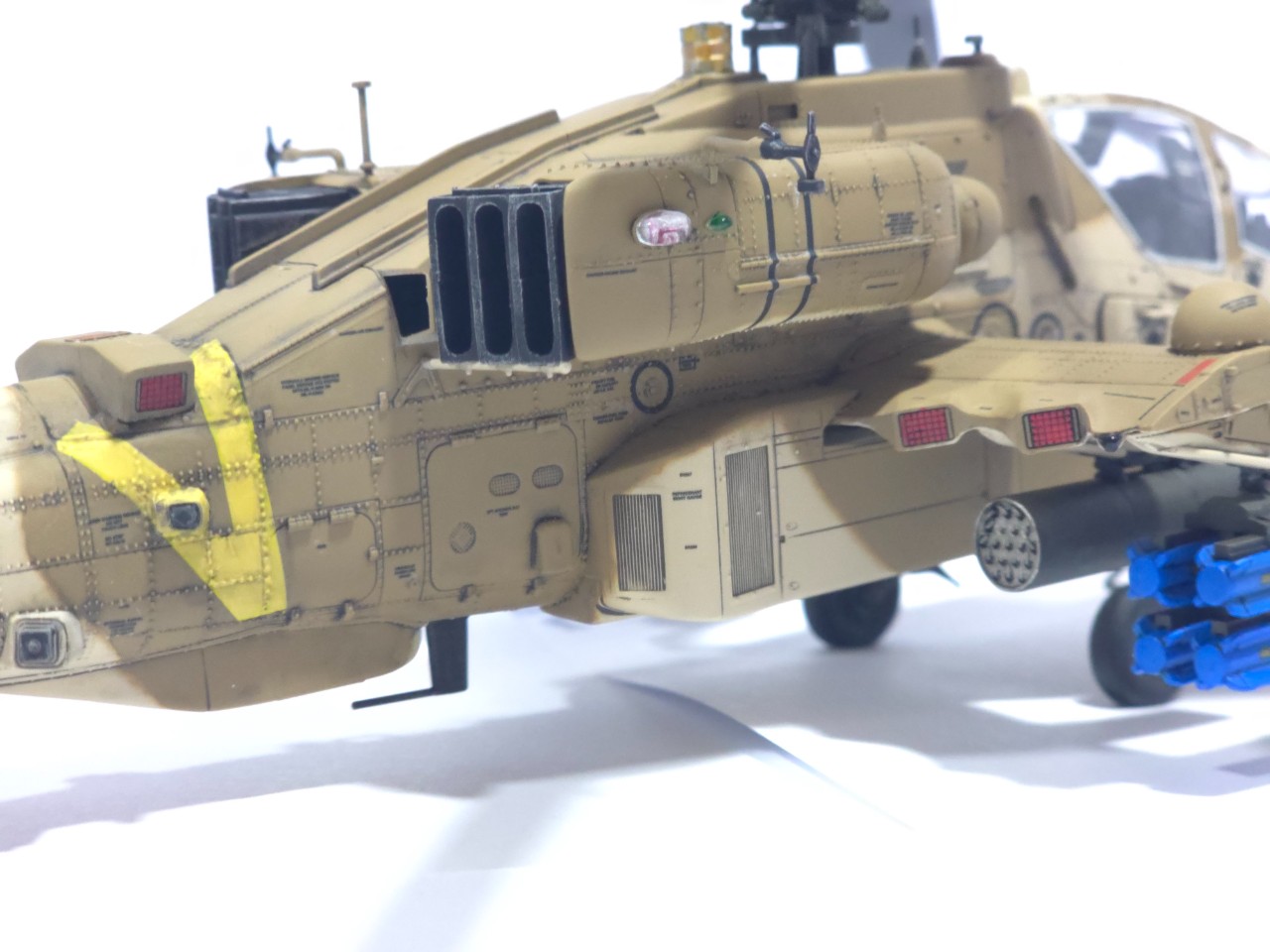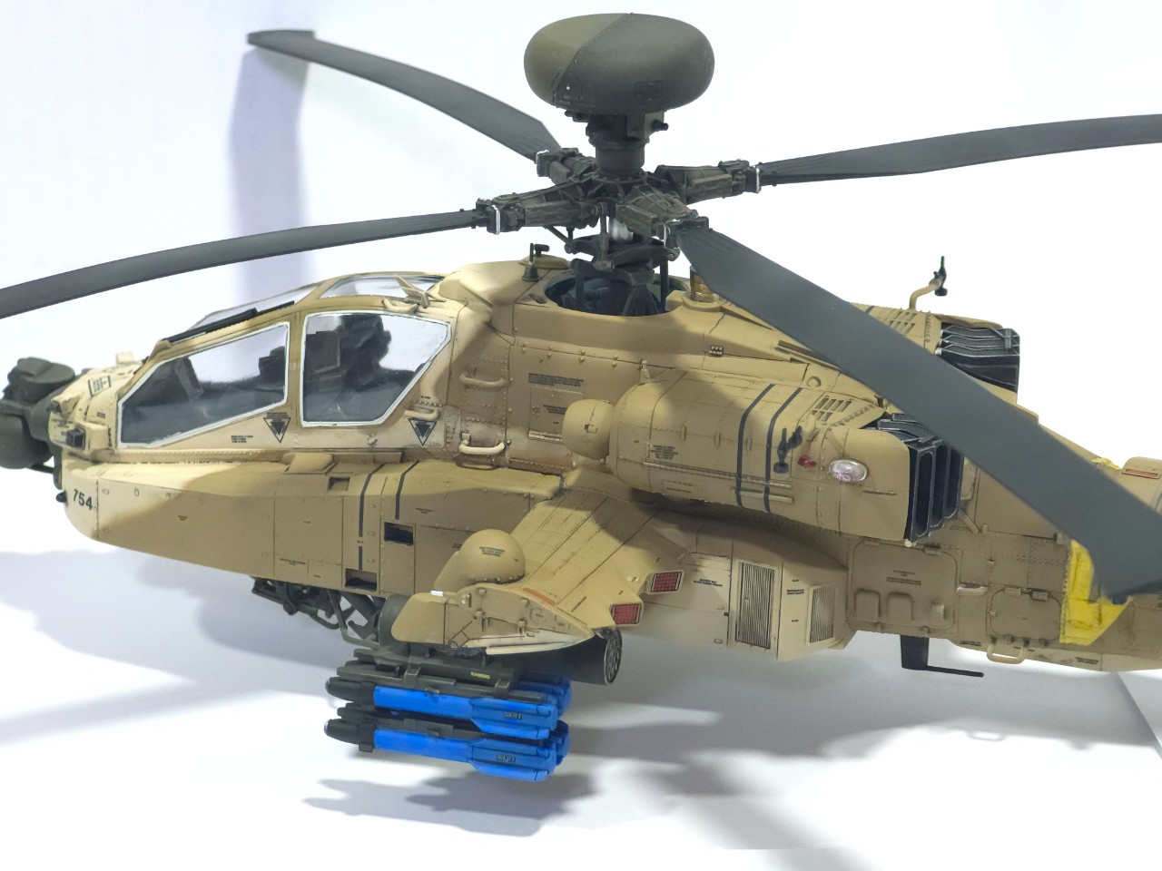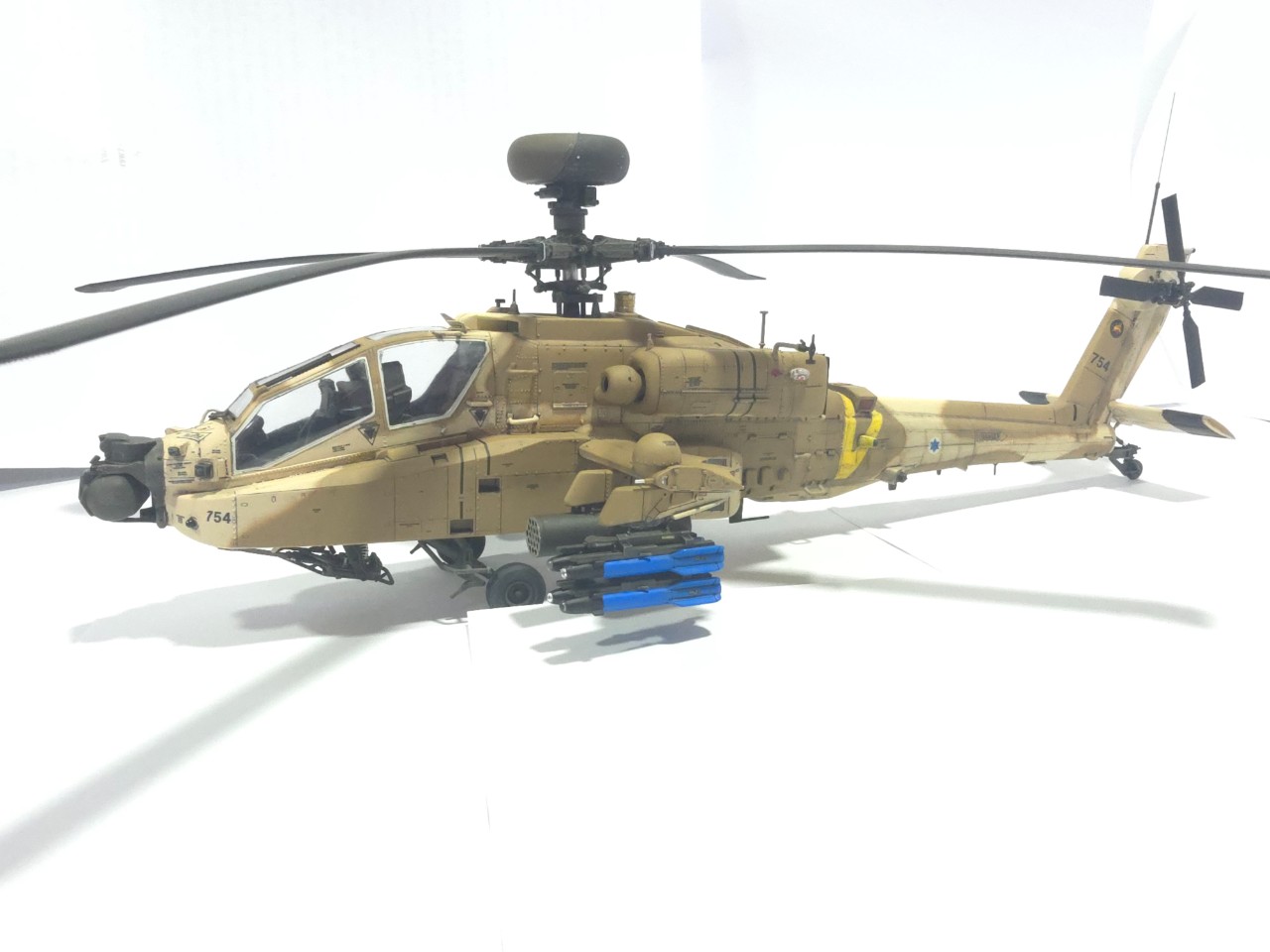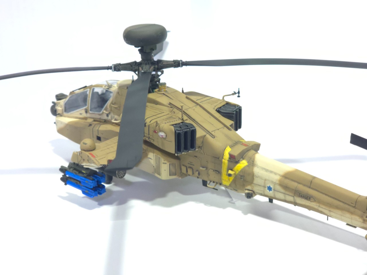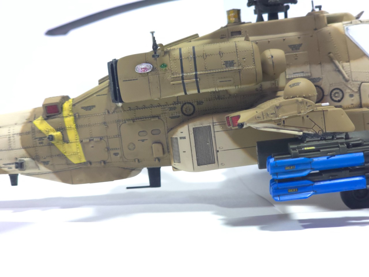 구매한지 6년 다된 킷이라 데칼이 부서지고 엉망 입니다. 기존 아파치에 이스라엘군 자체 센서와 체프/플레어 디스펜스, 스터브윙이 레진으로 추가된 킷 입니다. 이스라엘 아파치 기본무장? 인 보조연료탱크를 구하지못해서 그냥 라켓라운처 장착 했습니다. 이스라엘군은 헬파이어라고 하는 LATHT를 스터브윙 바깥쪽에 장착 하더군요. 그대로 장착 했습니다.
