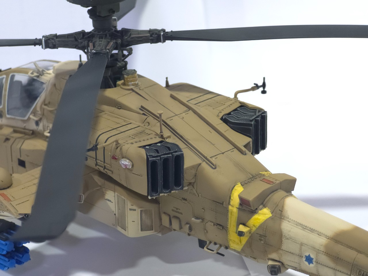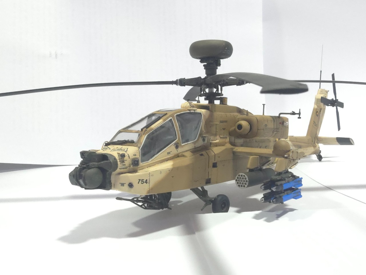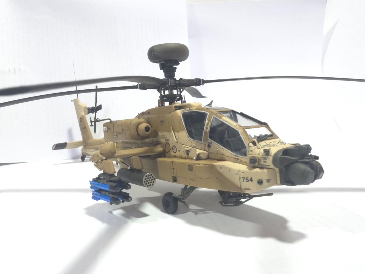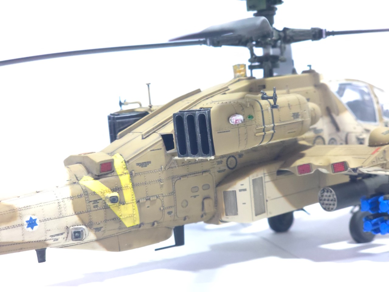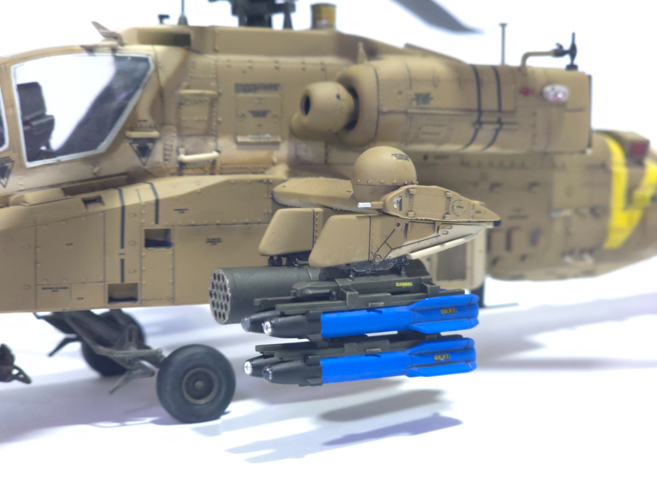 구매한지 6년 다된 킷이라 데칼이 부서지고 엉망 입니다. 기존 아파치에 이스라엘군 자체 센서와 체프/플레어 디스펜스, 스터브윙이 레진으로 추가된 킷 입니다. 이스라엘 아파치 기본무장? 인 보조연료탱크를 구하지못해서 그냥 라켓라운처 장착 했습니다. 이스라엘군은 헬파이어라고 하는 LATHT를 스터브윙 바깥쪽에 장착 하더군요. 그대로 장착 했습니다.